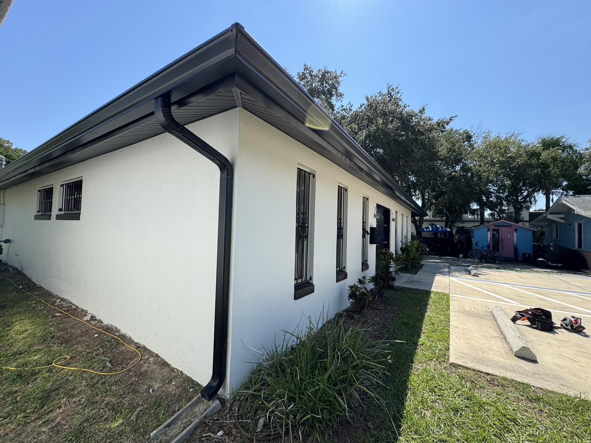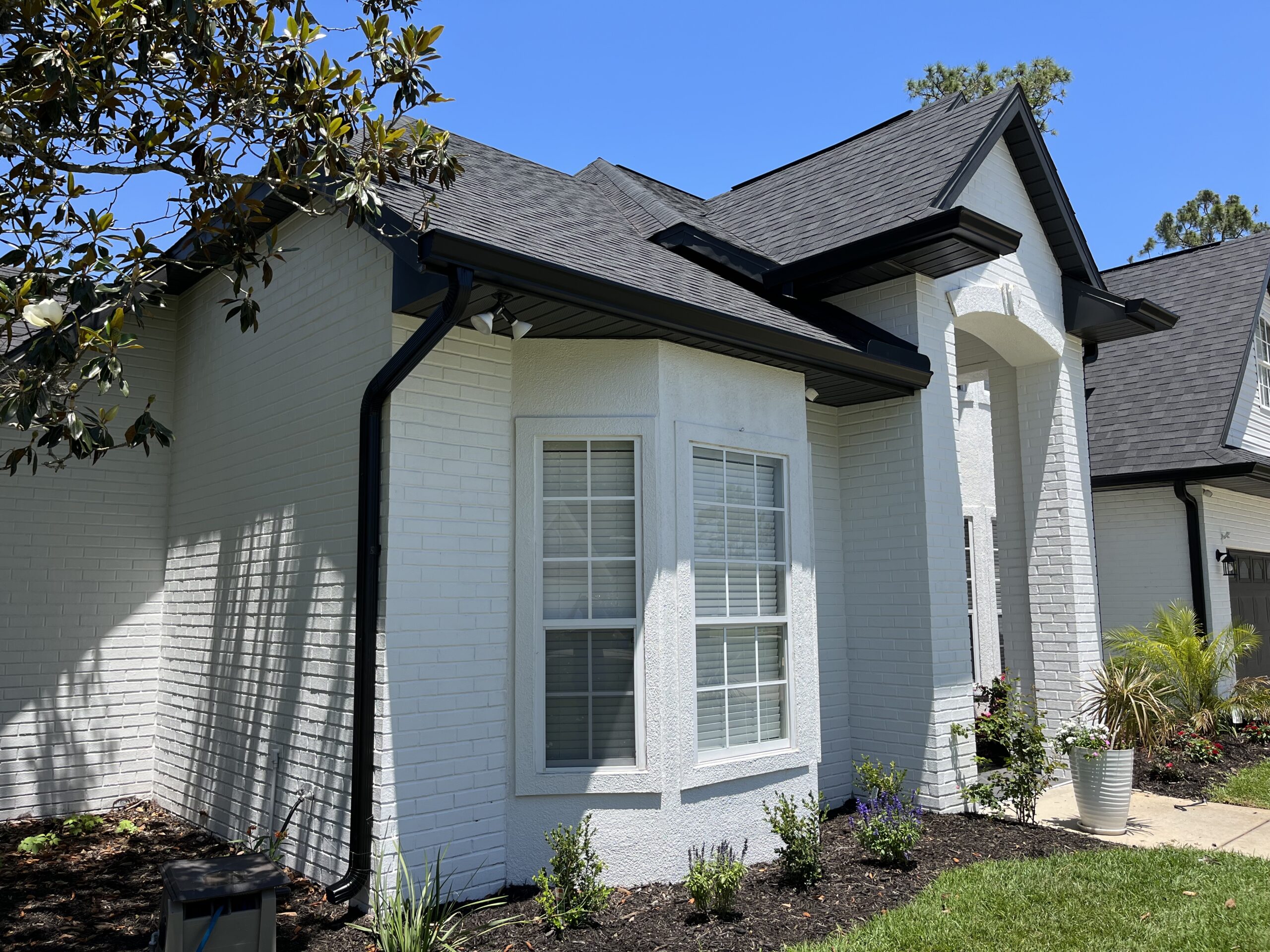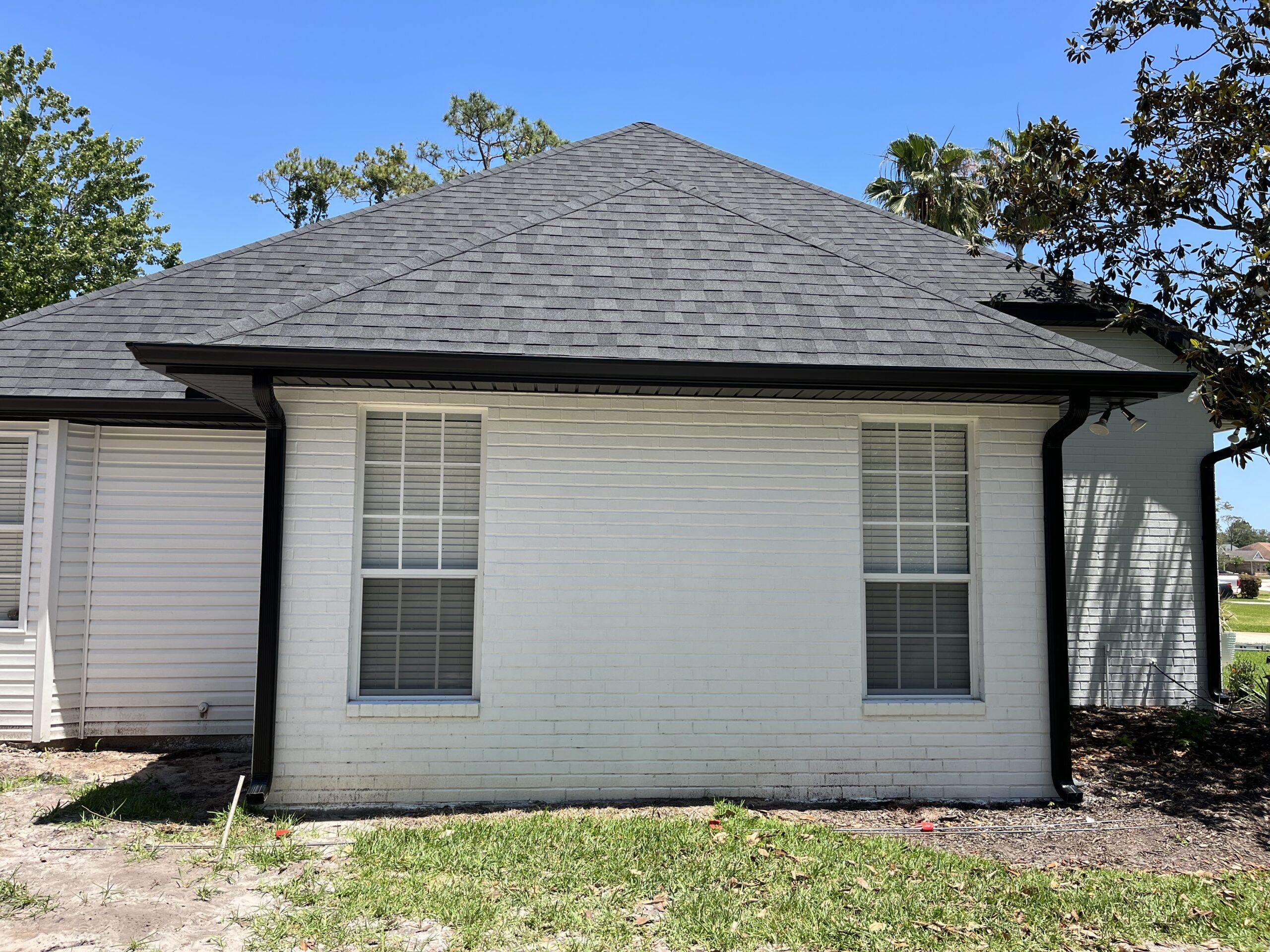 Black Gutters W/ Bulldog Gutter Guards