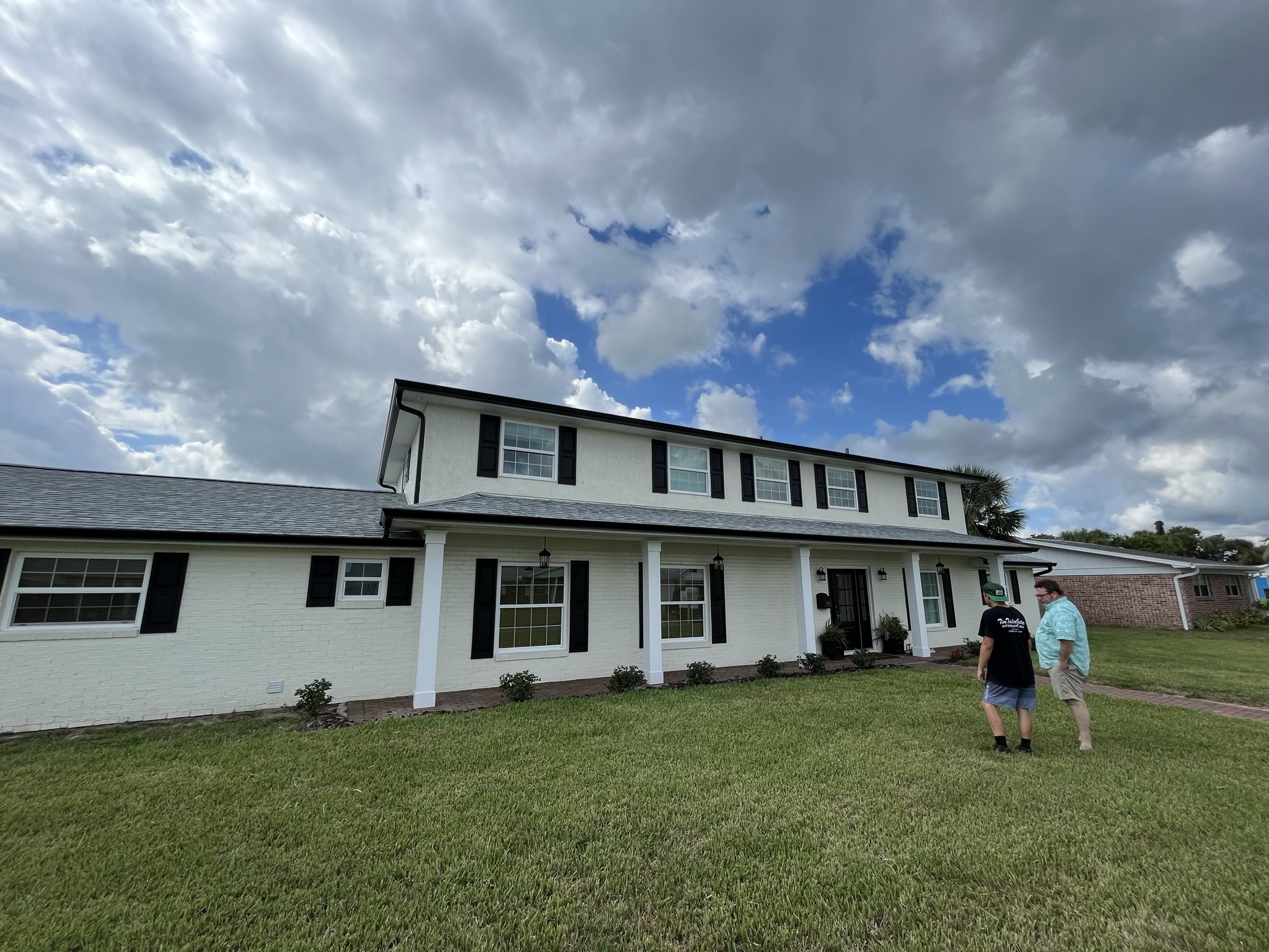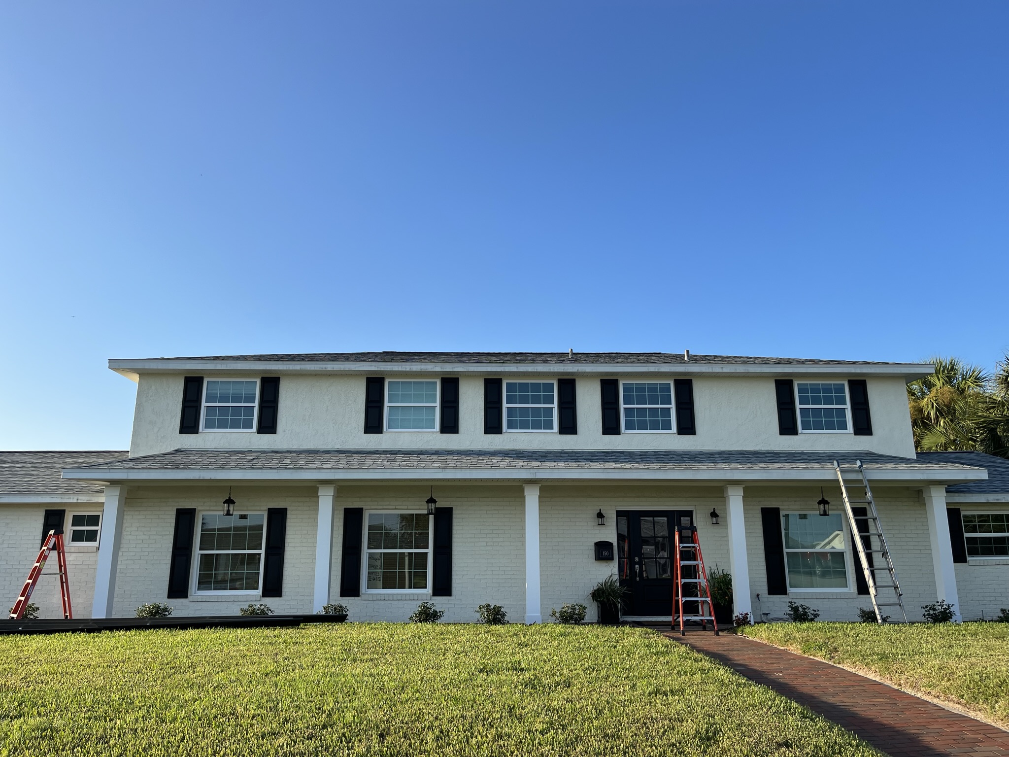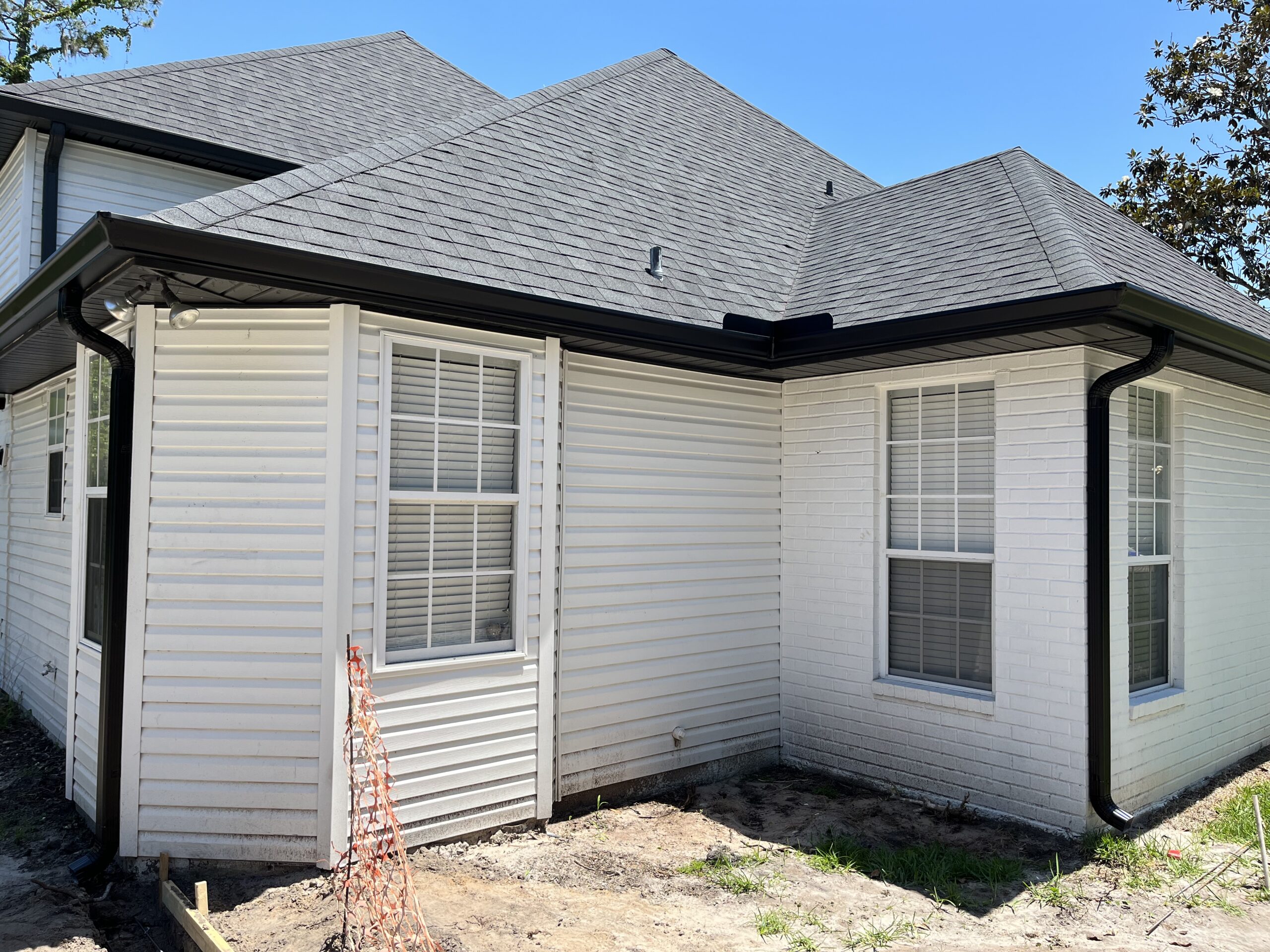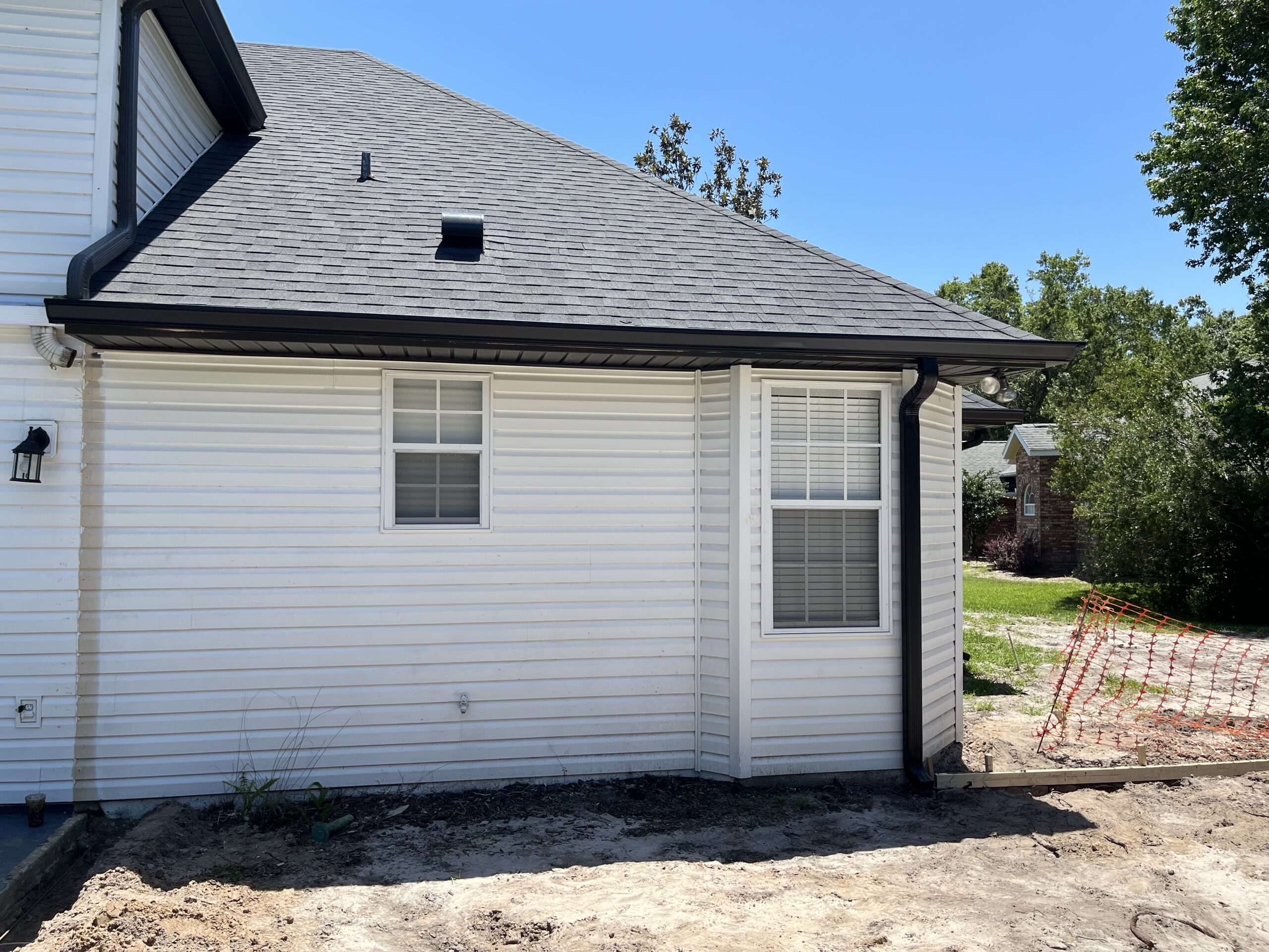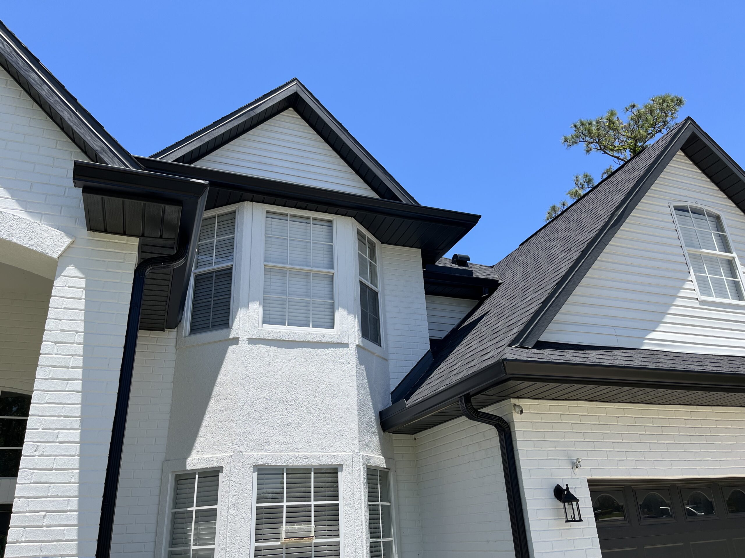 Two-Story White Mastic Universal O-Vent w/ Senox Black Gutters