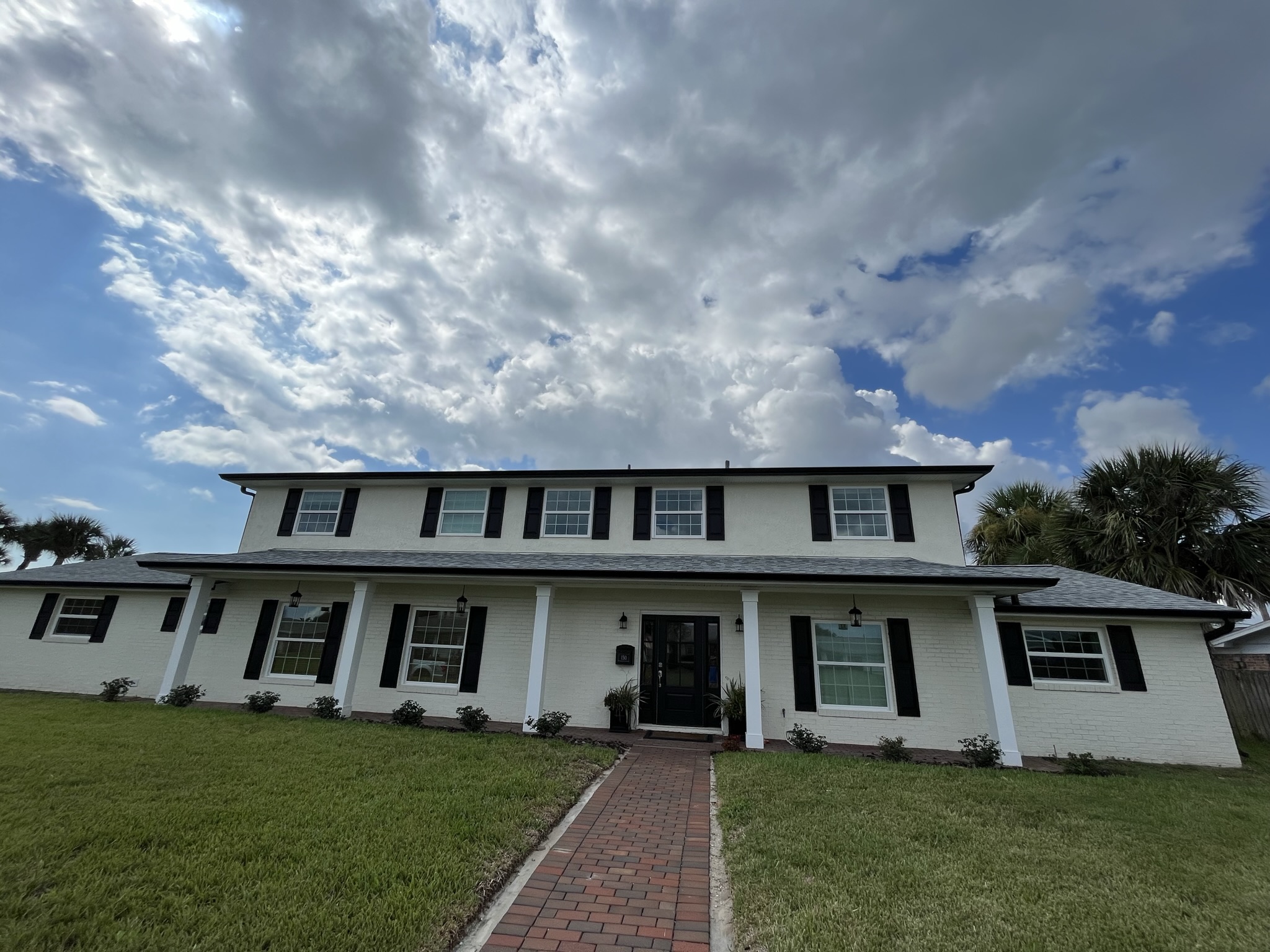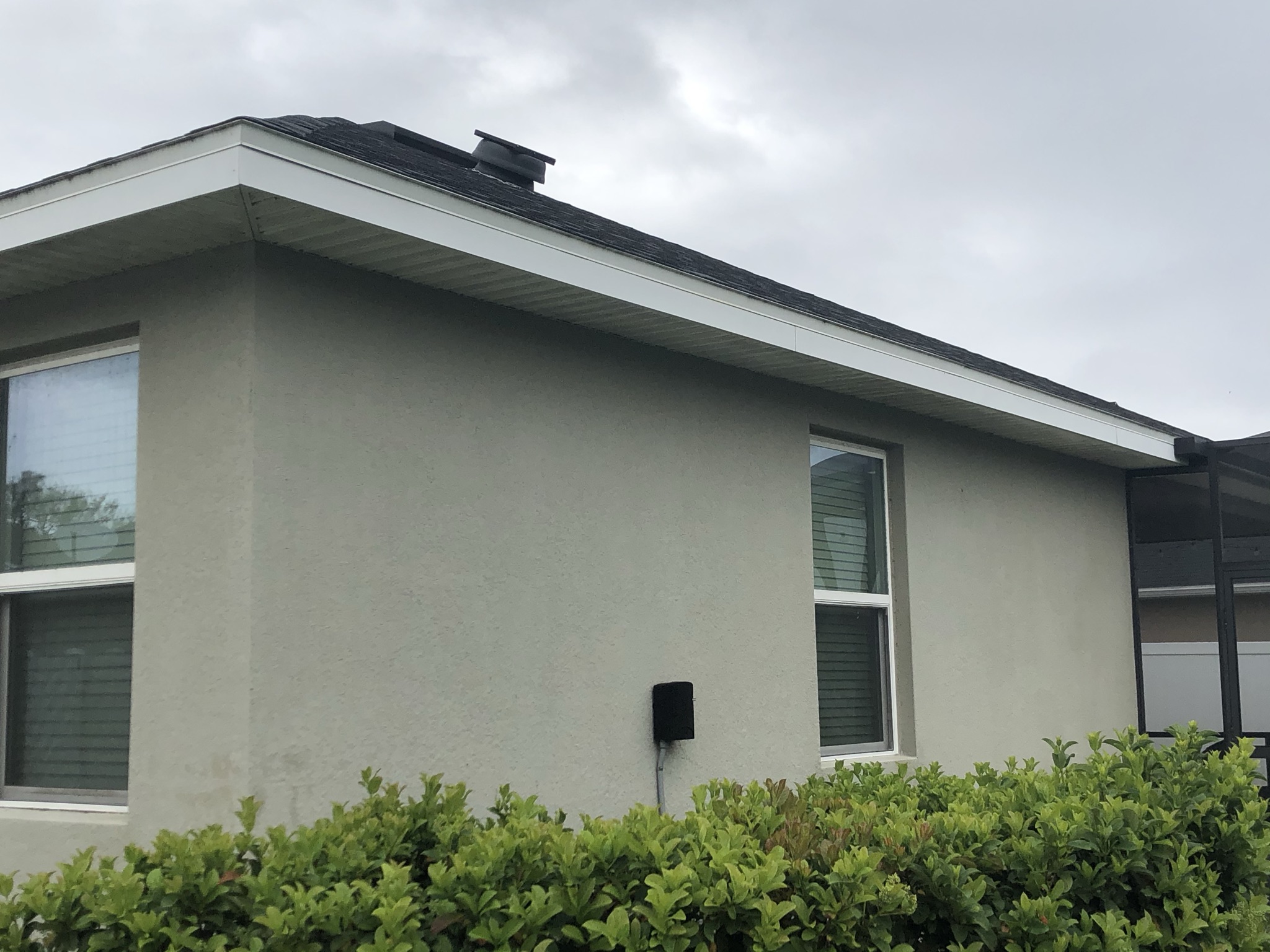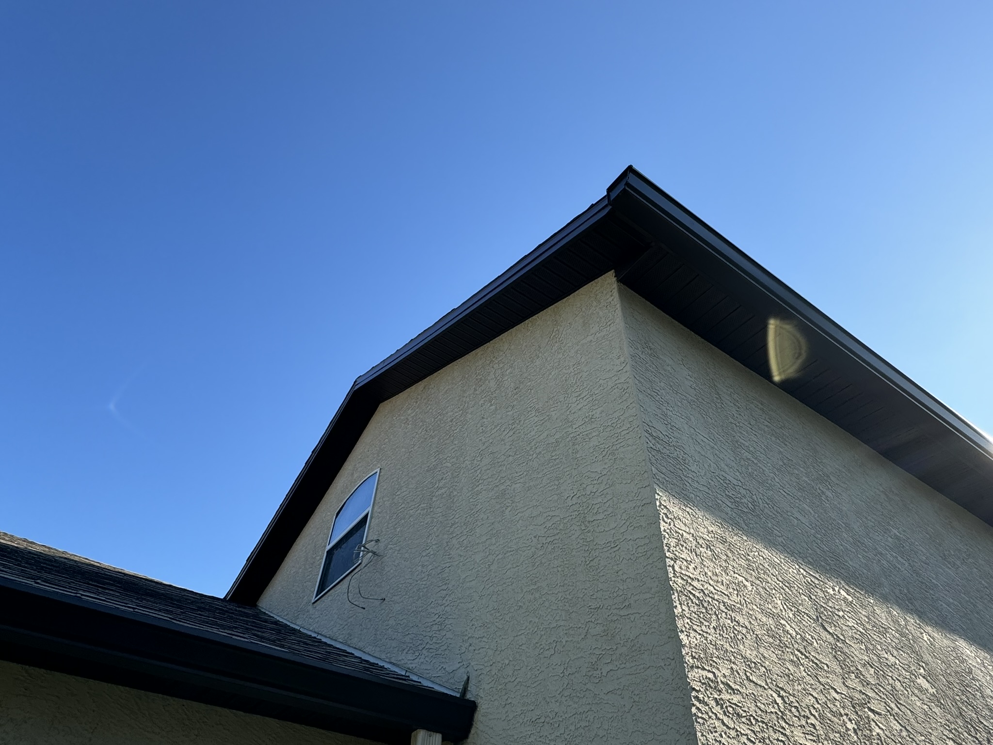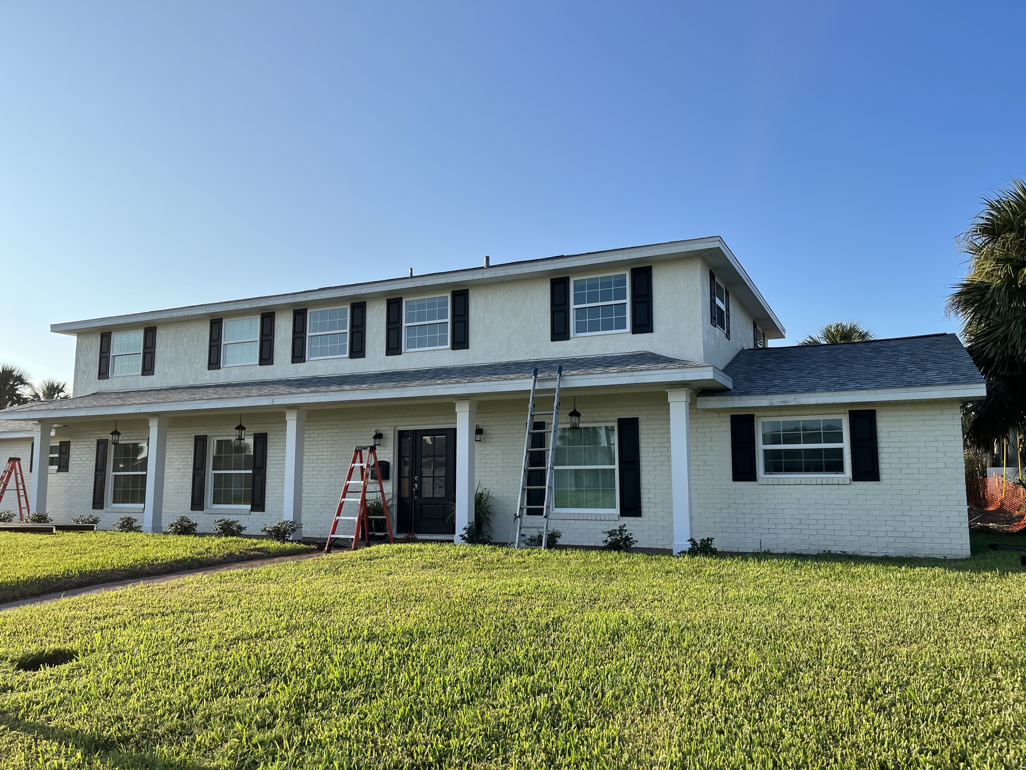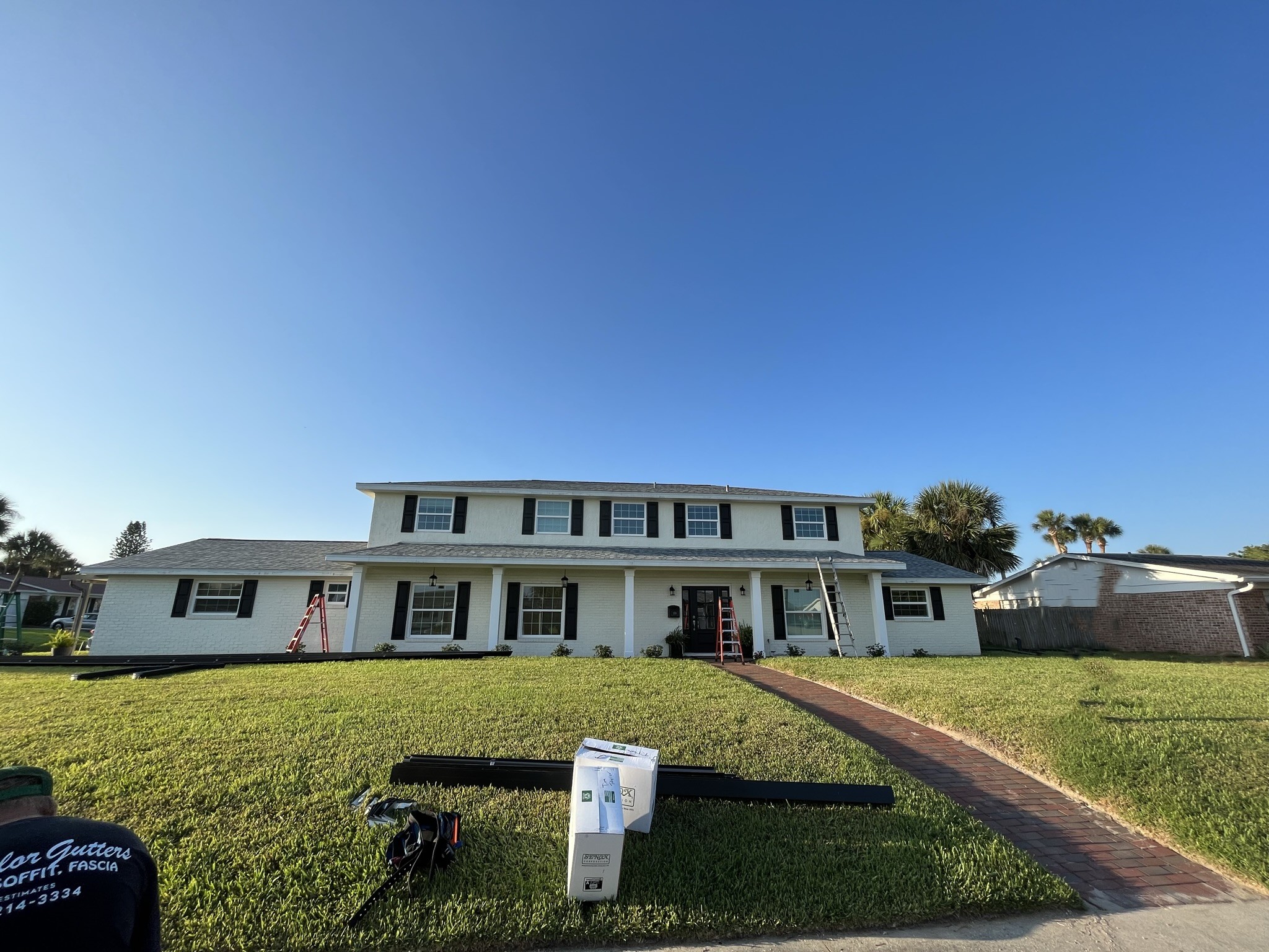Two-Story White Mastic Universal O-Vent w/ Senox Black Gutters