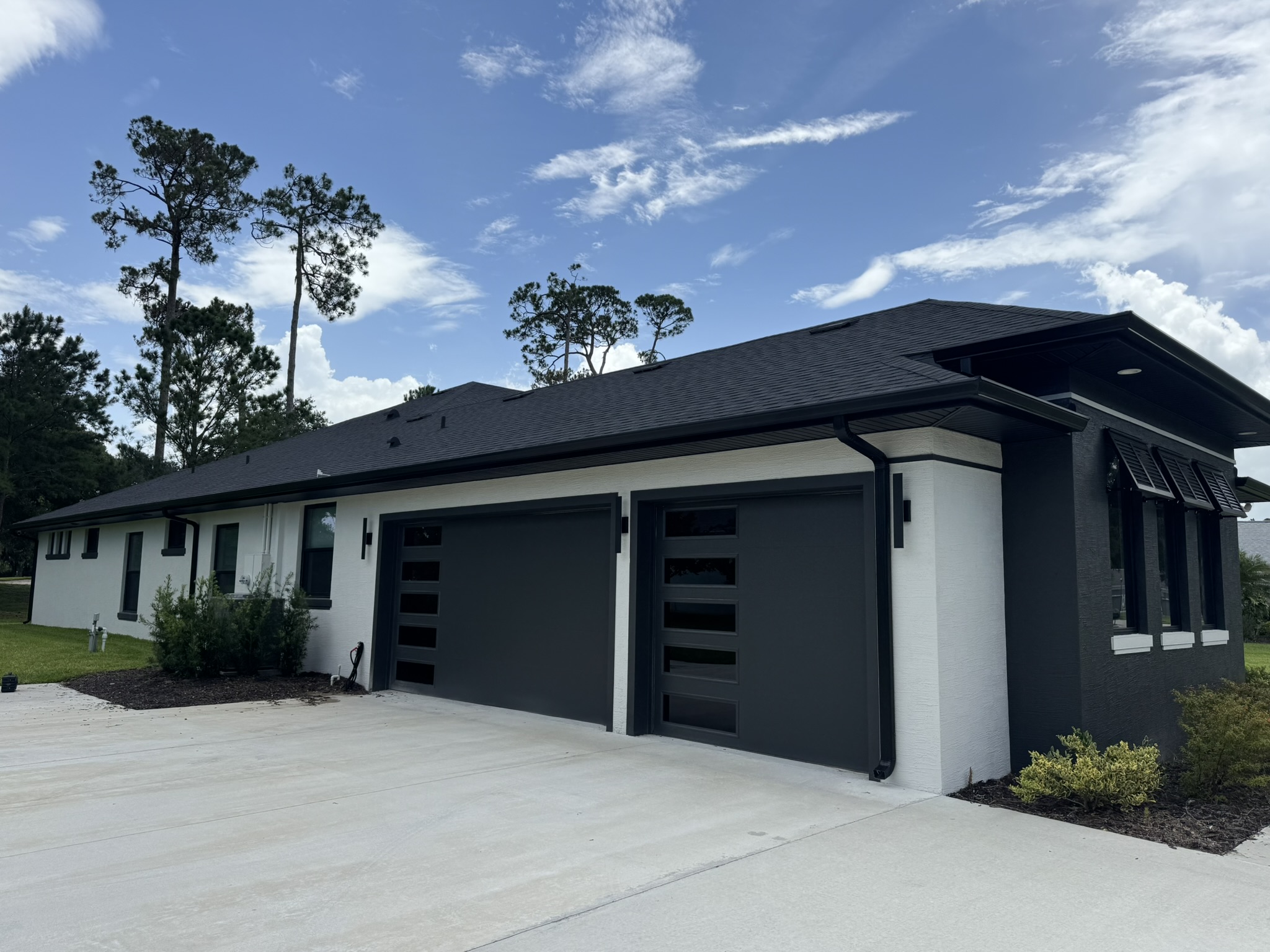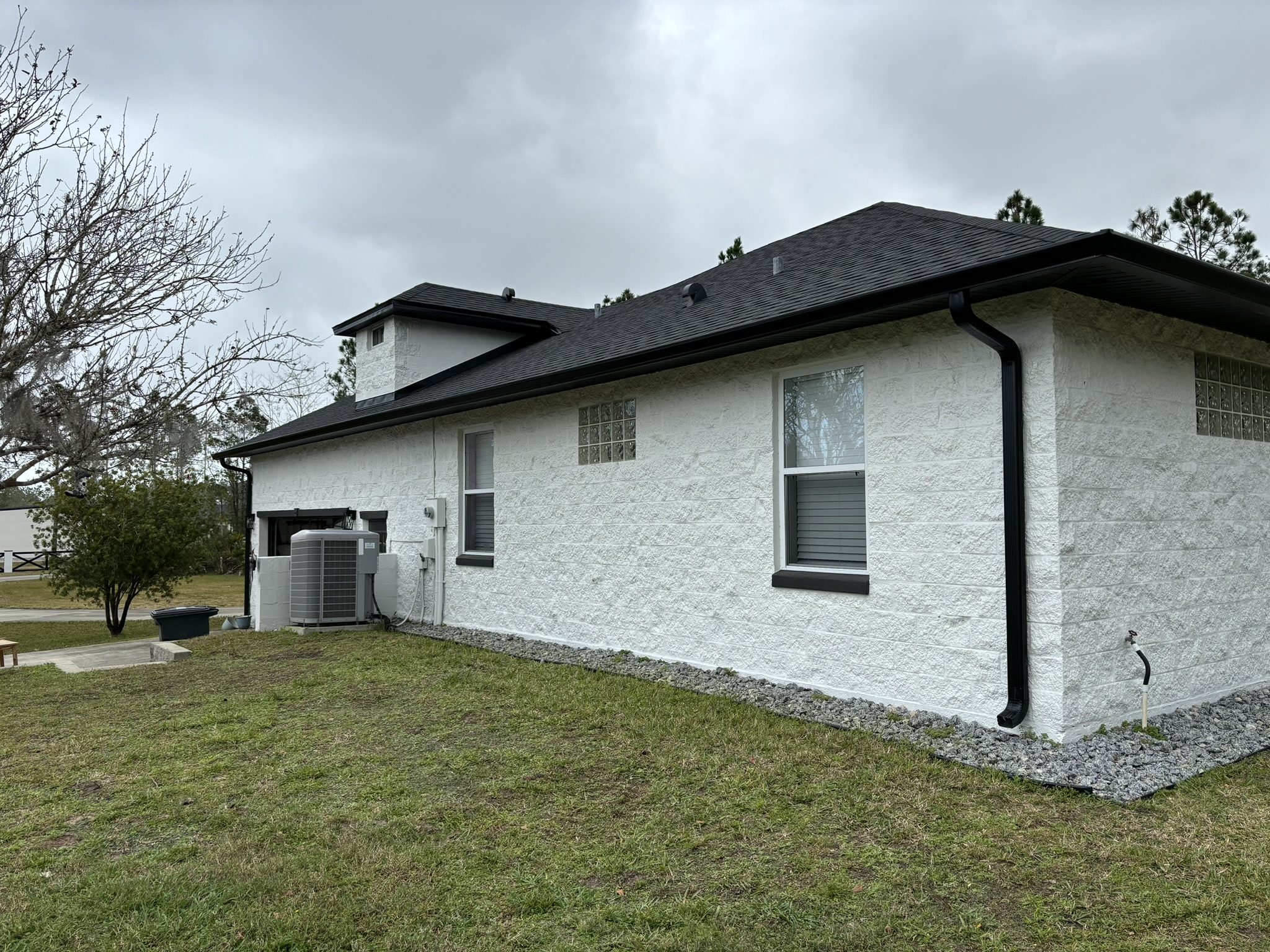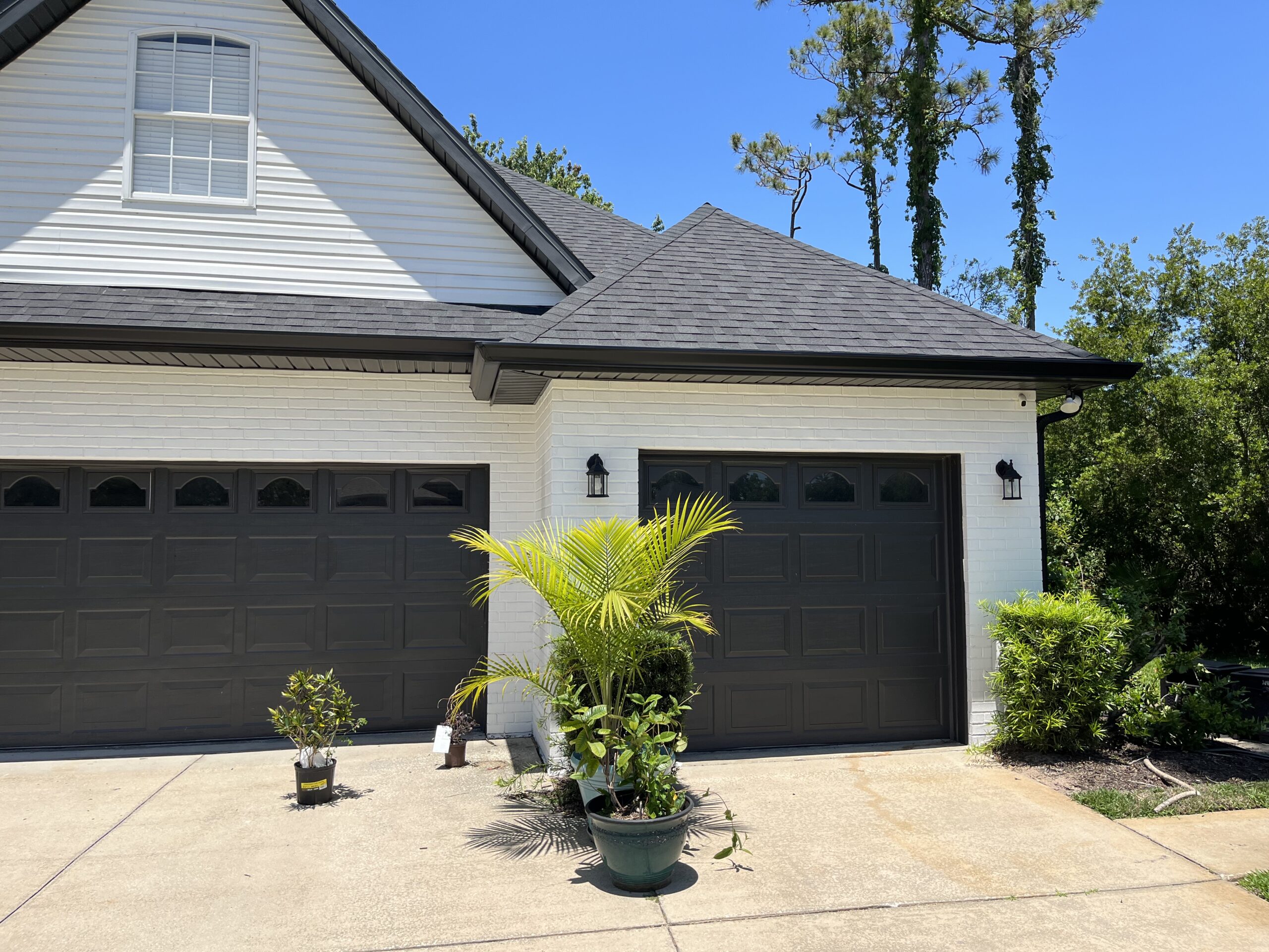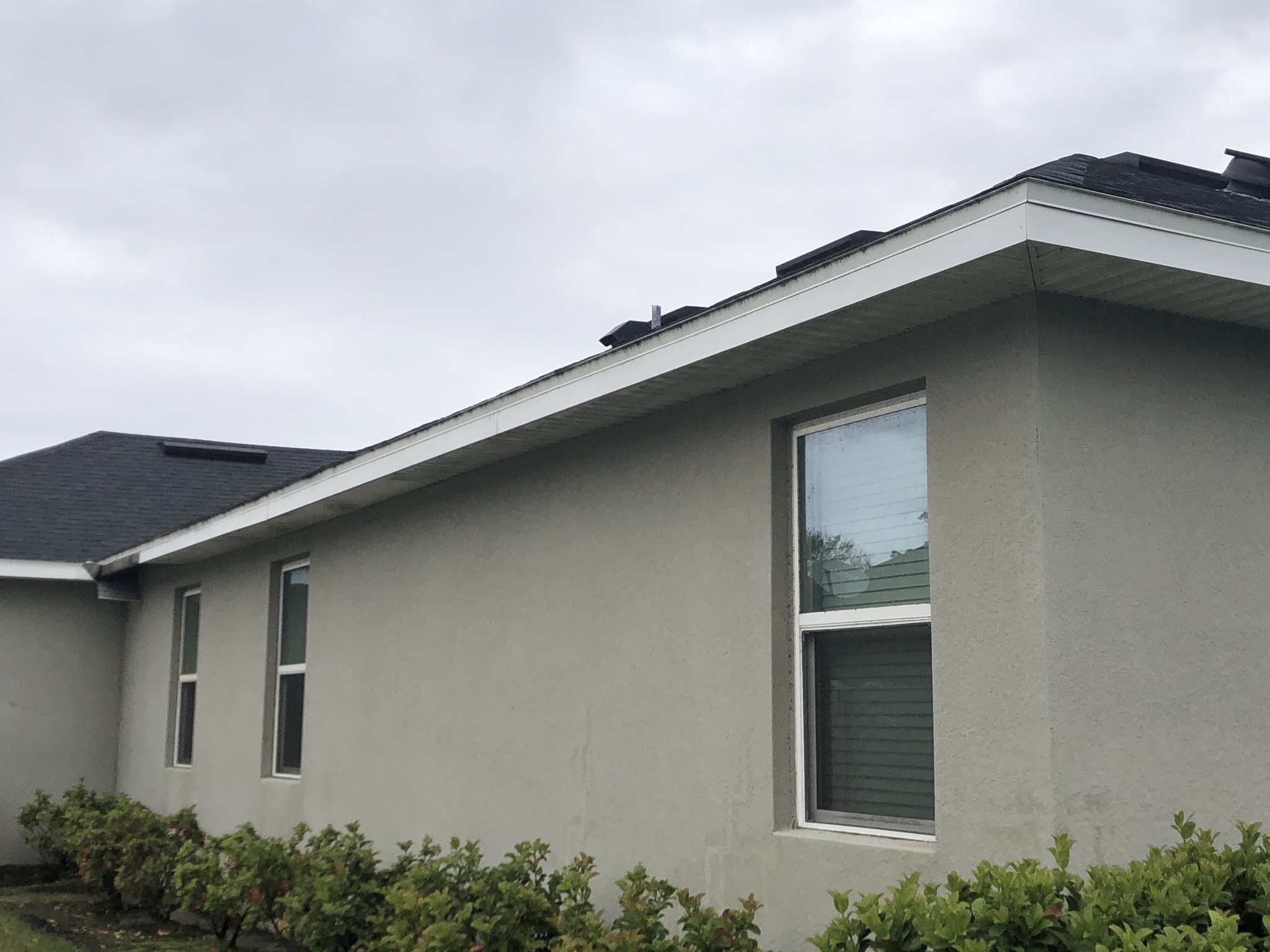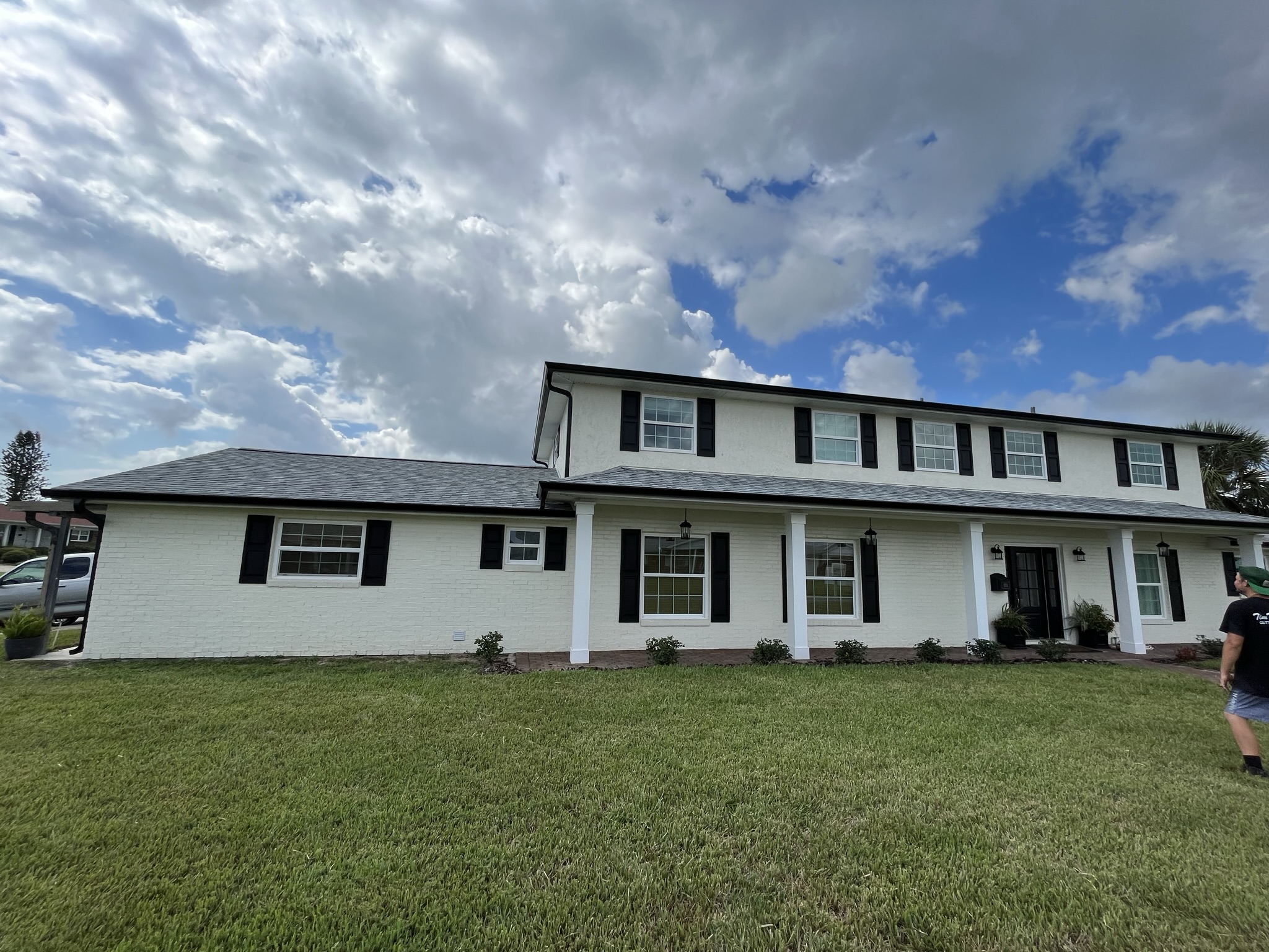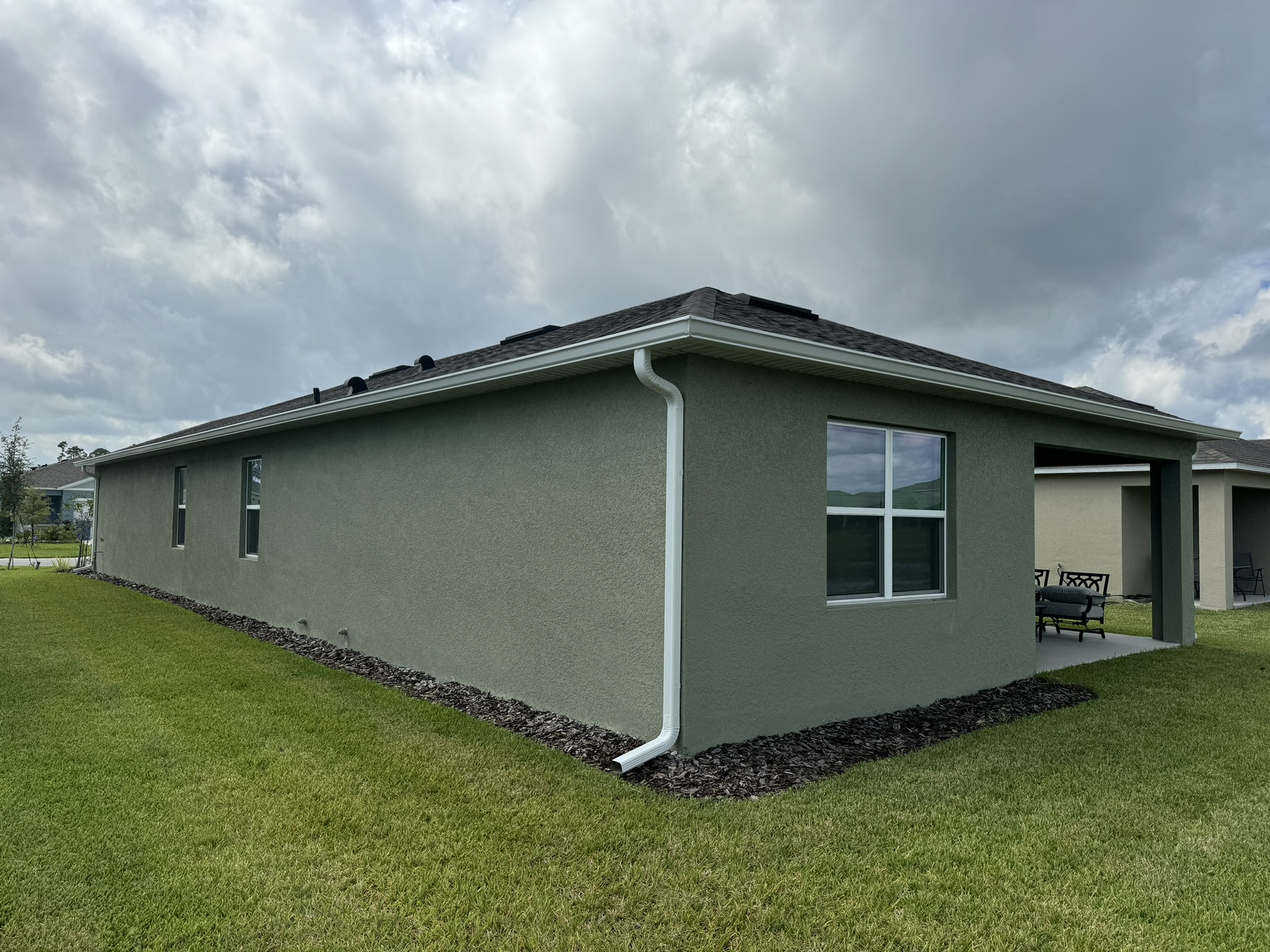 Two-Story White Mastic Universal O-Vent w/ Senox Black Gutters