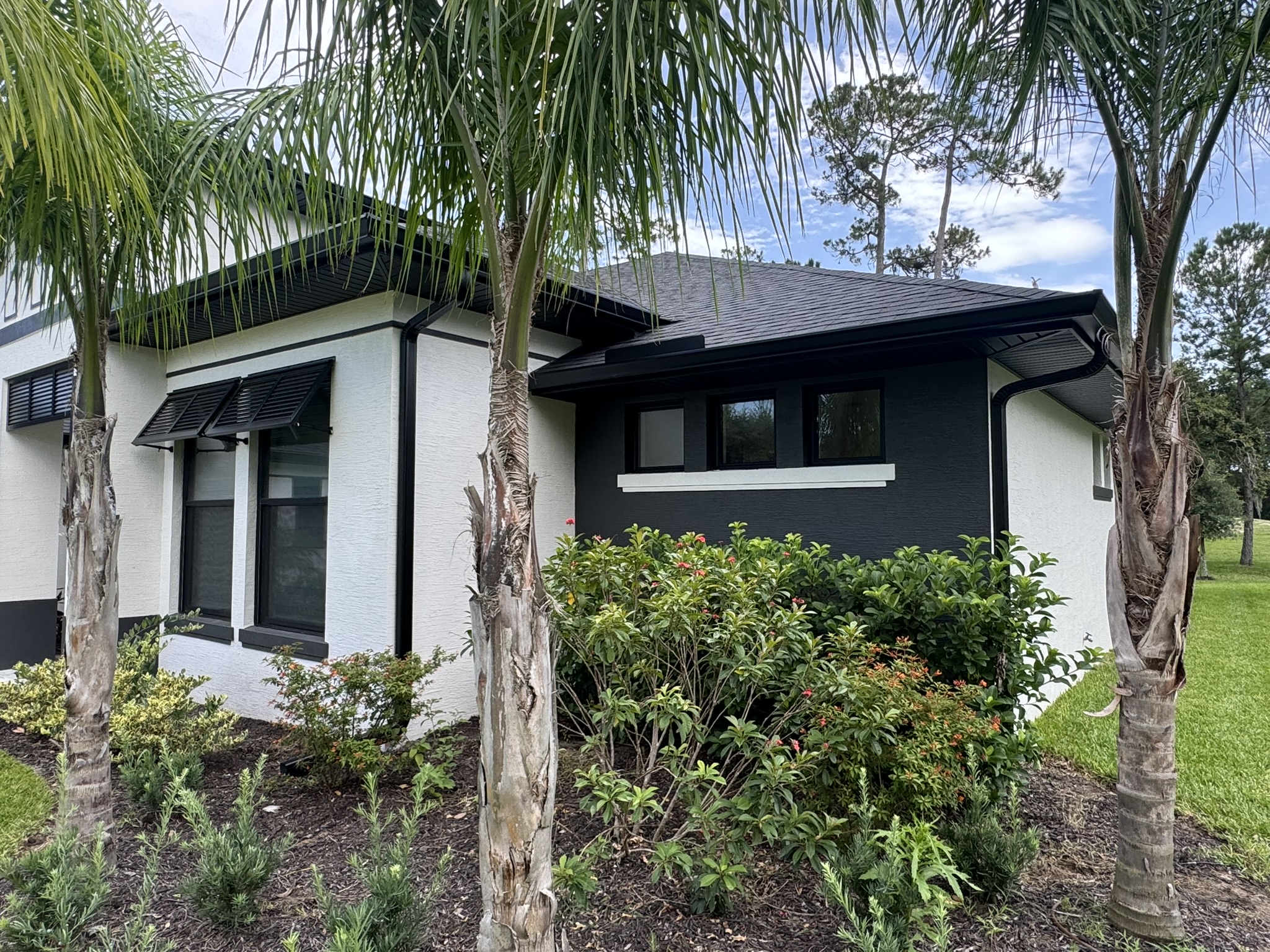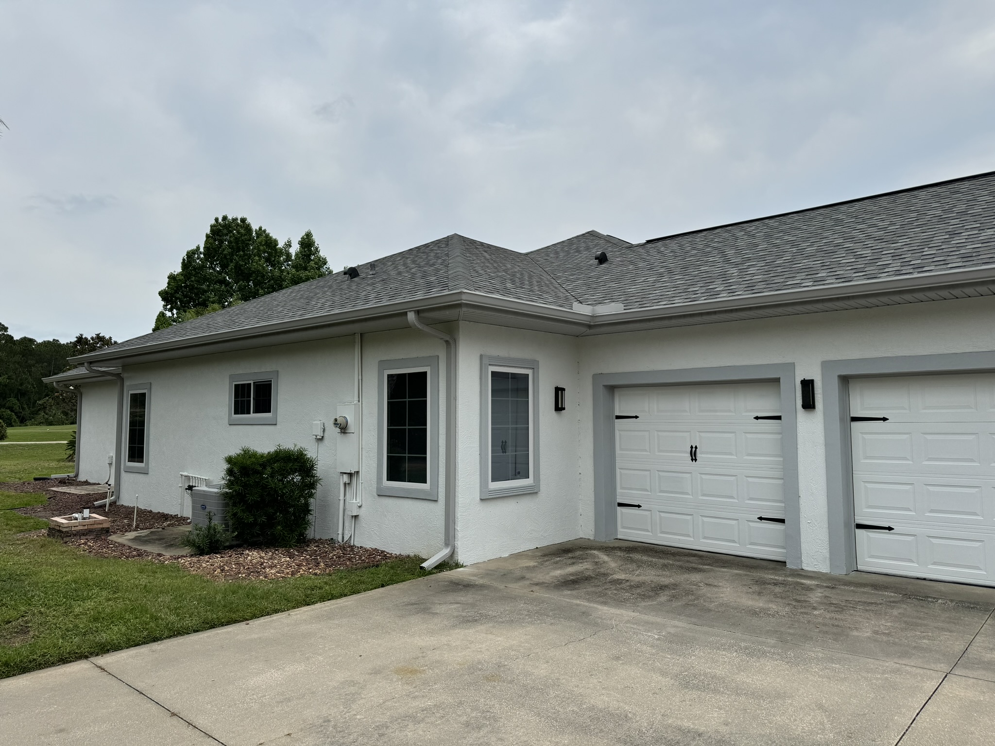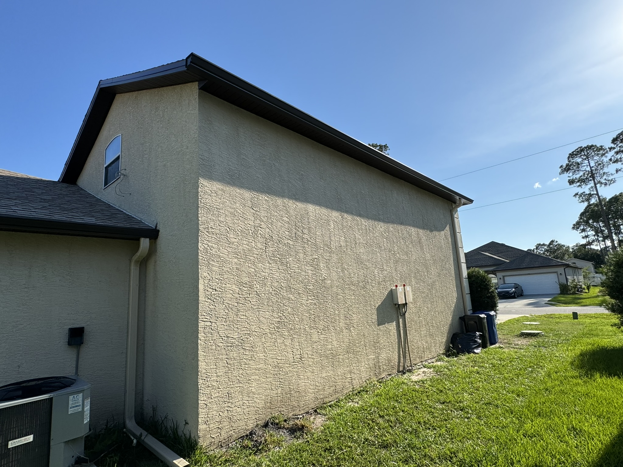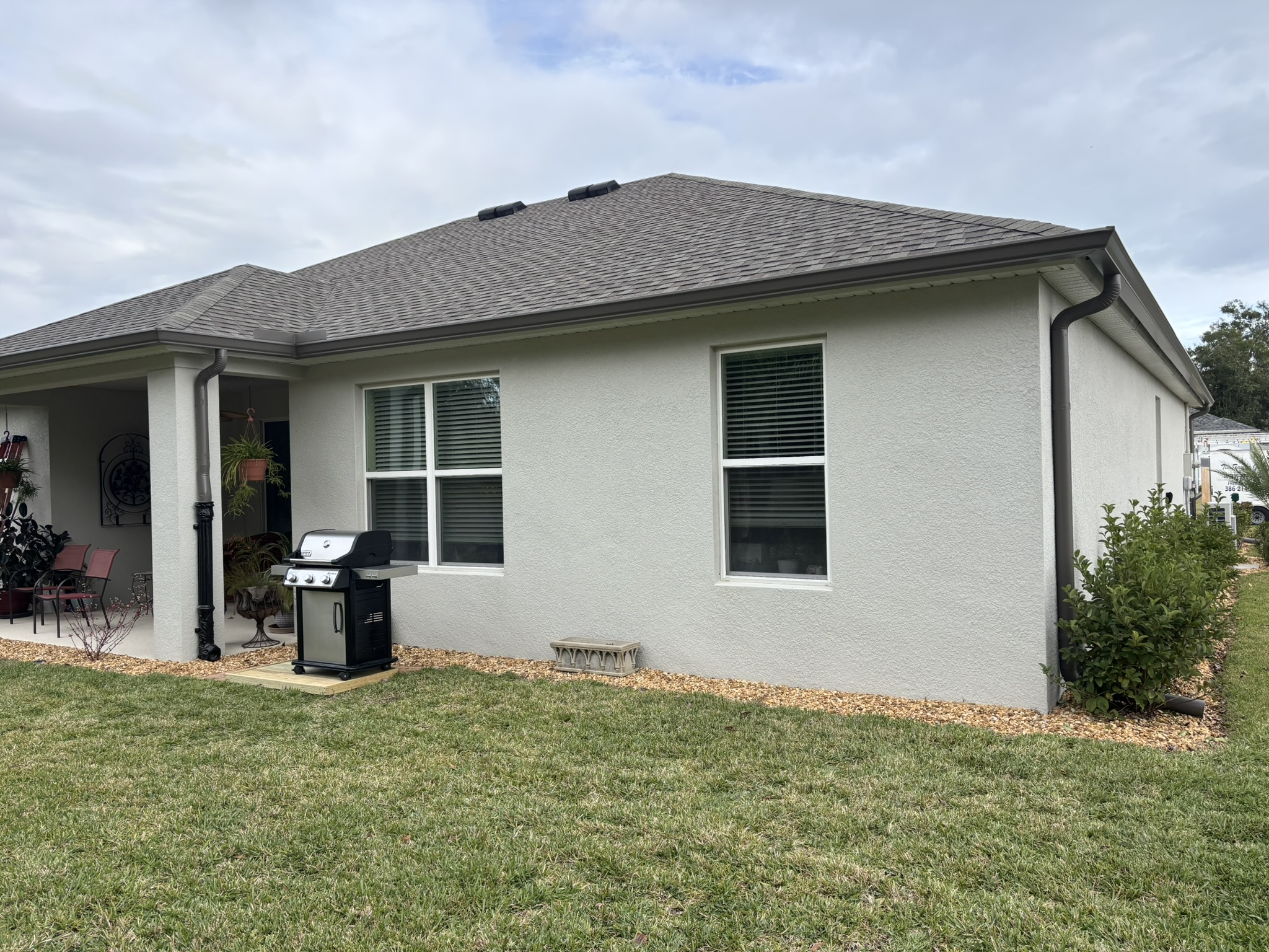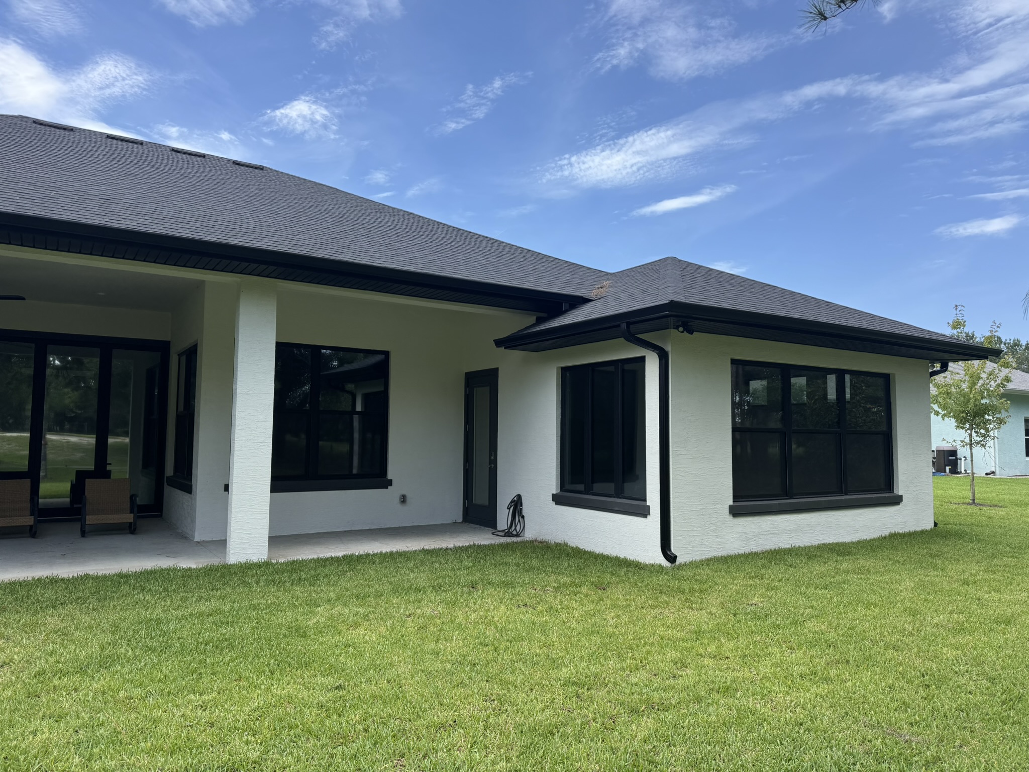 Two-Story White Mastic Universal O-Vent w/ Senox Black Gutters
