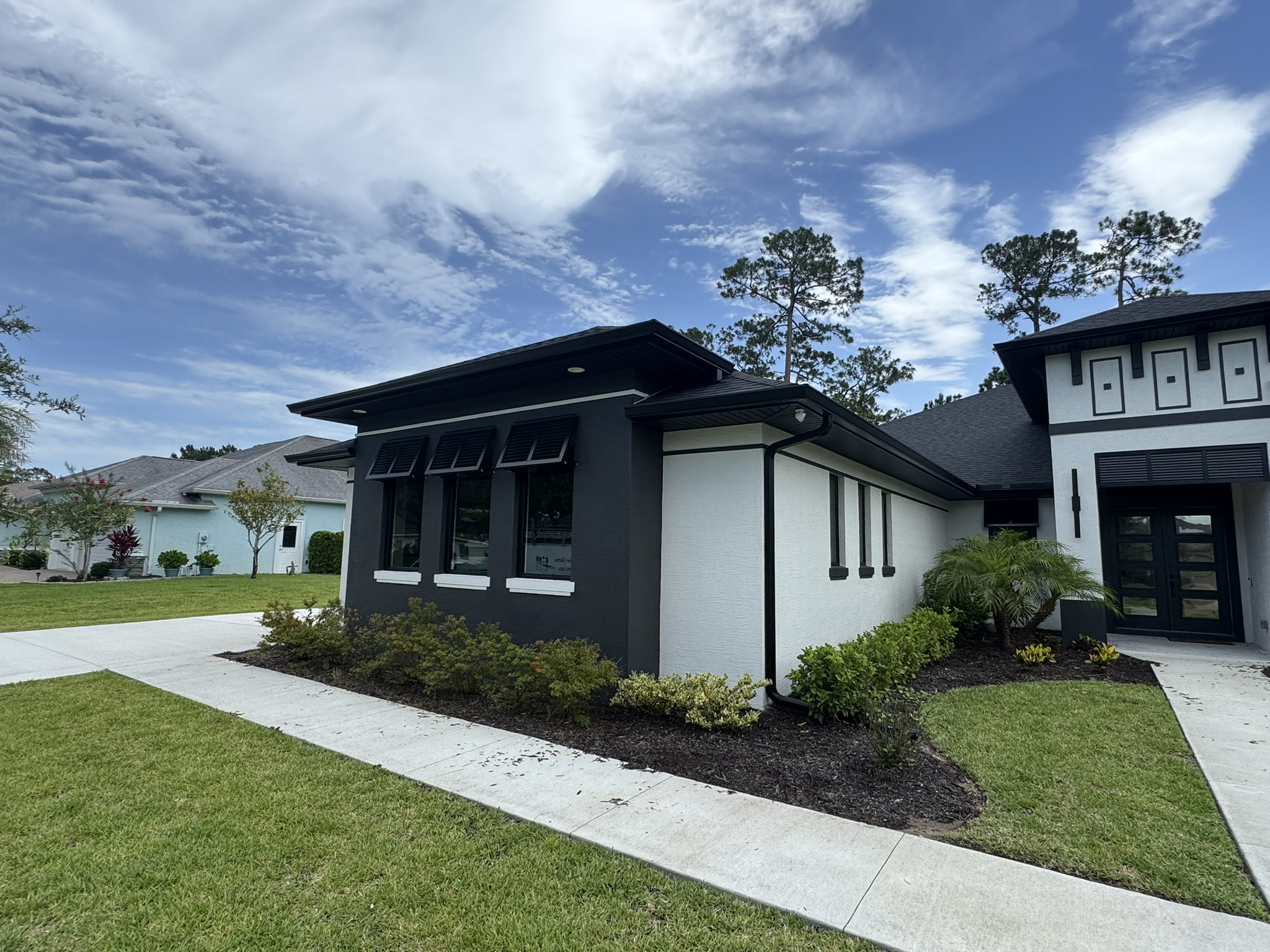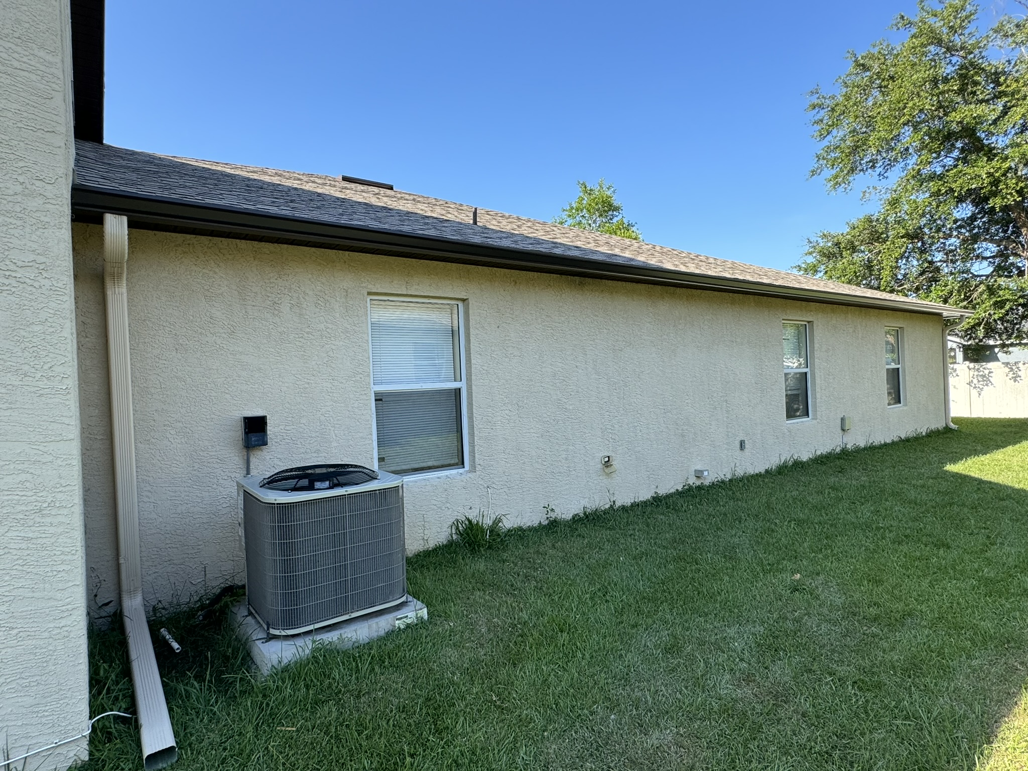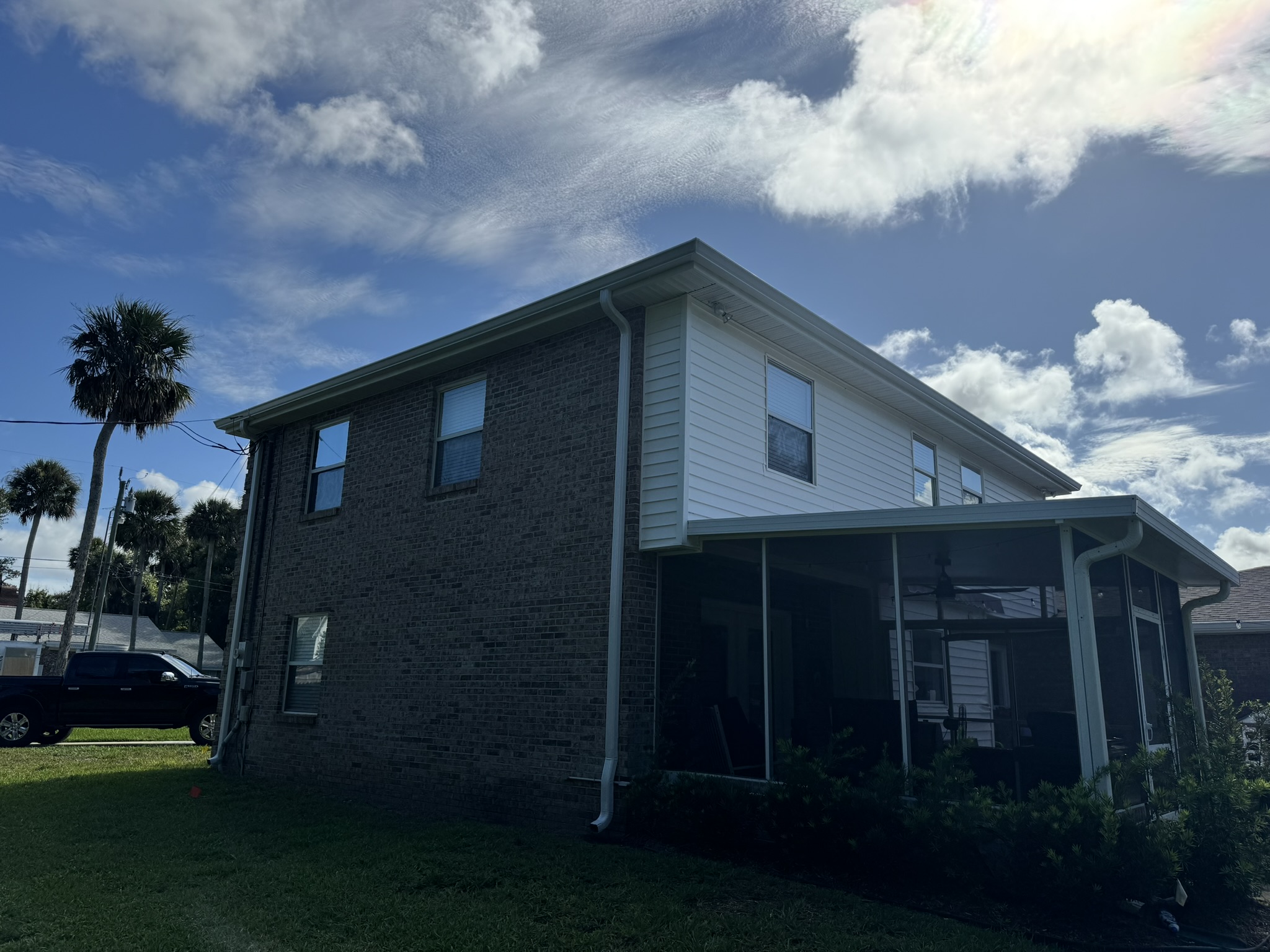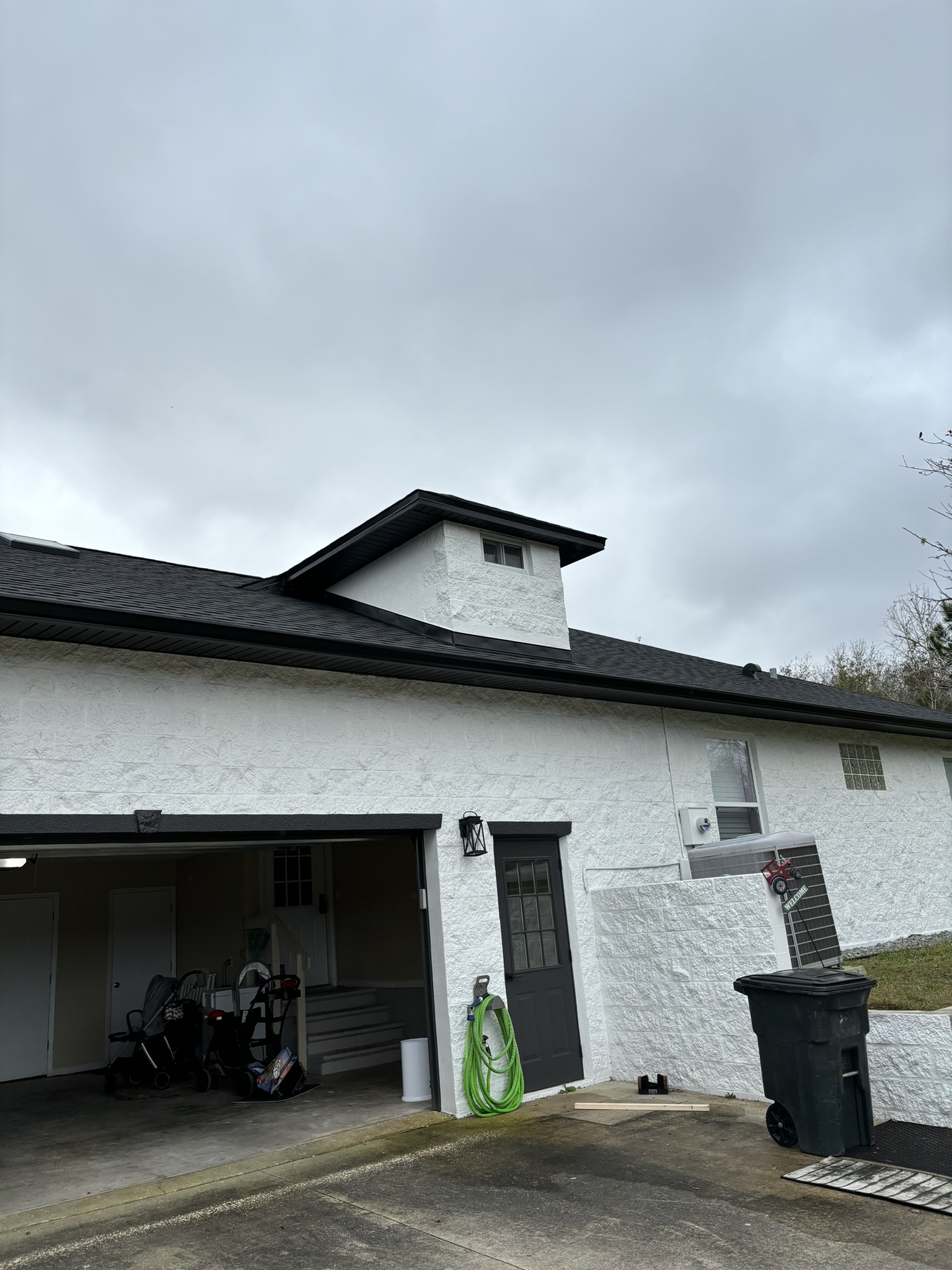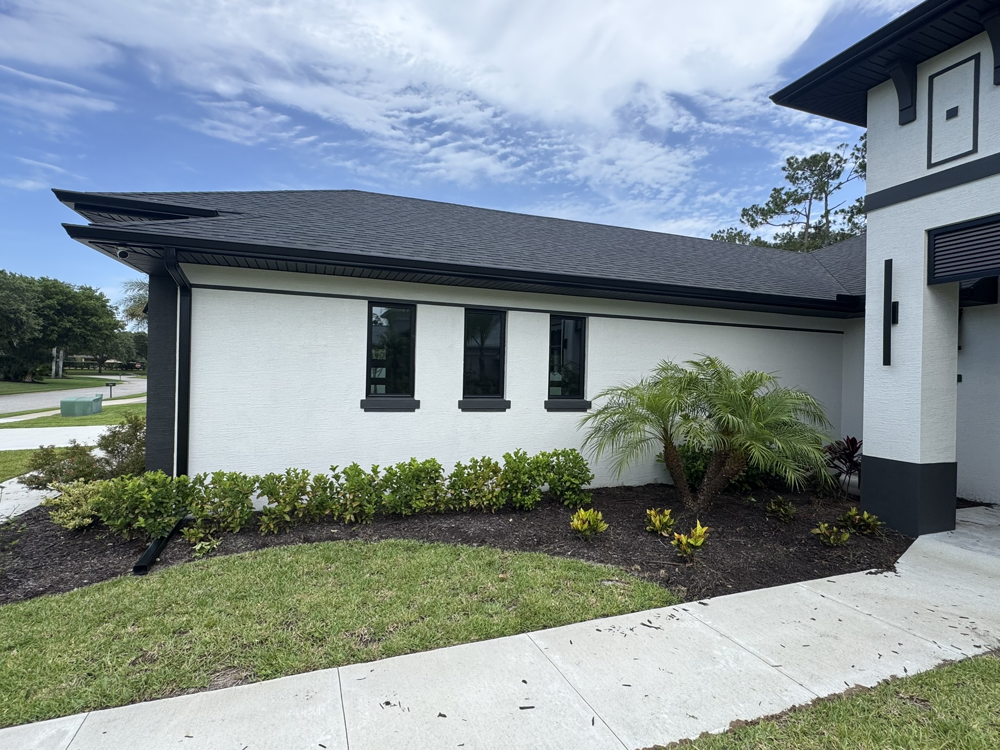 Two-Story White Mastic Universal O-Vent w/ Senox Black Gutters