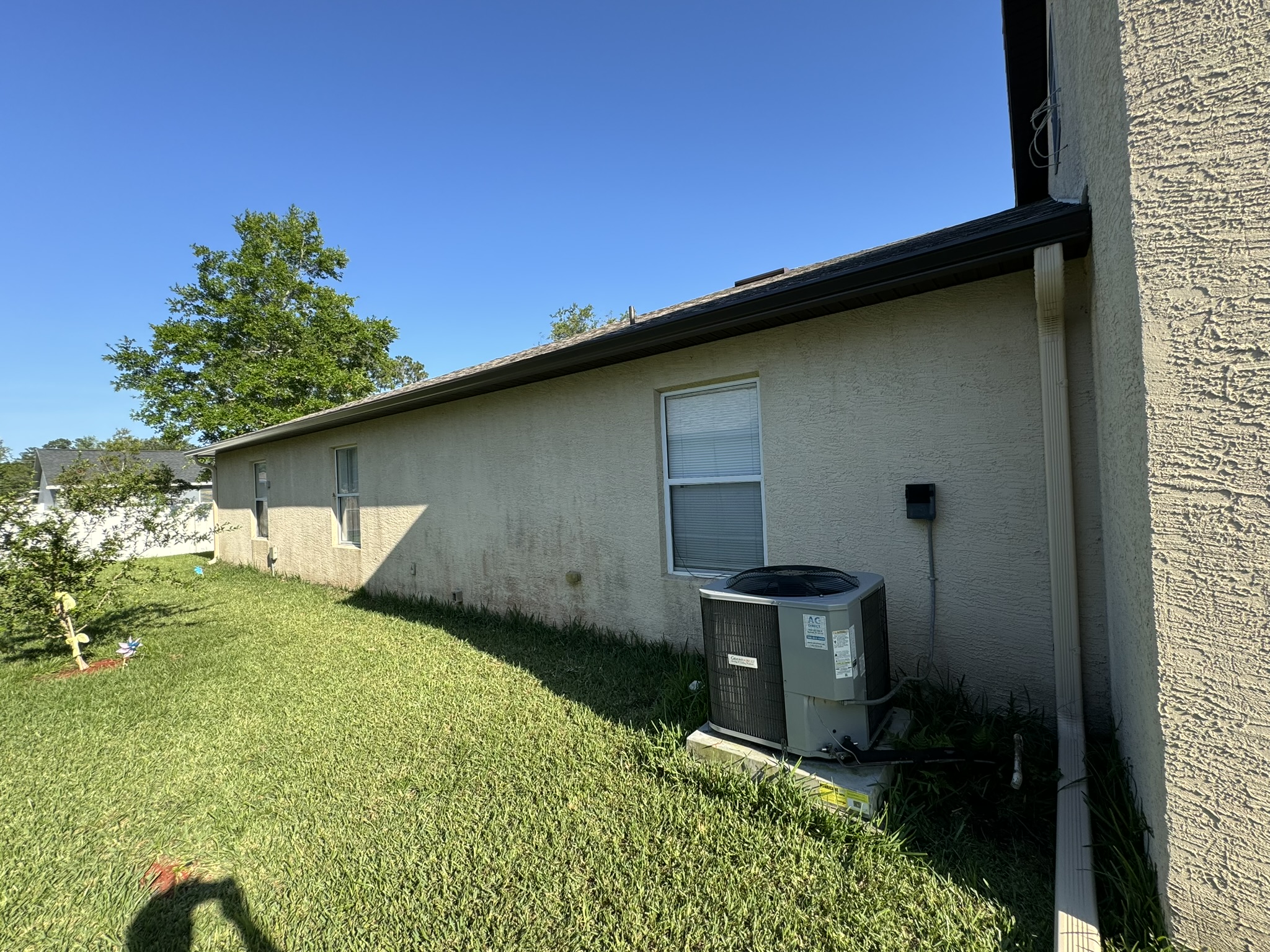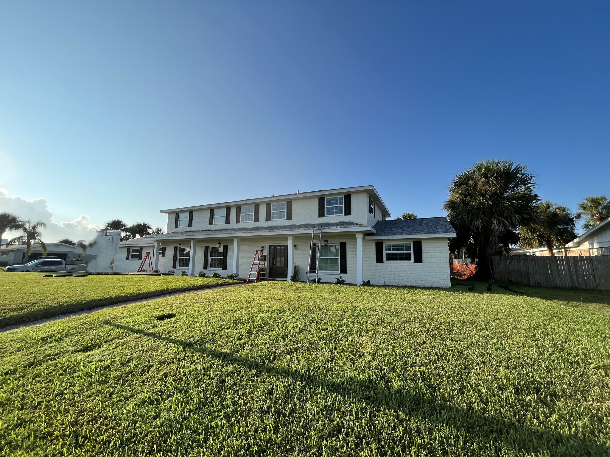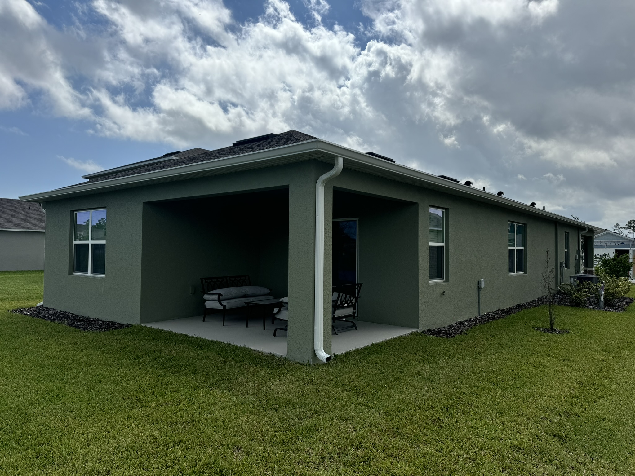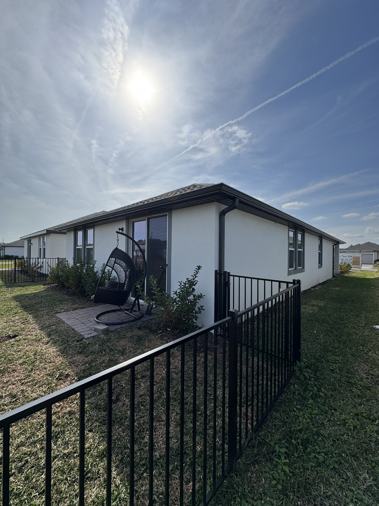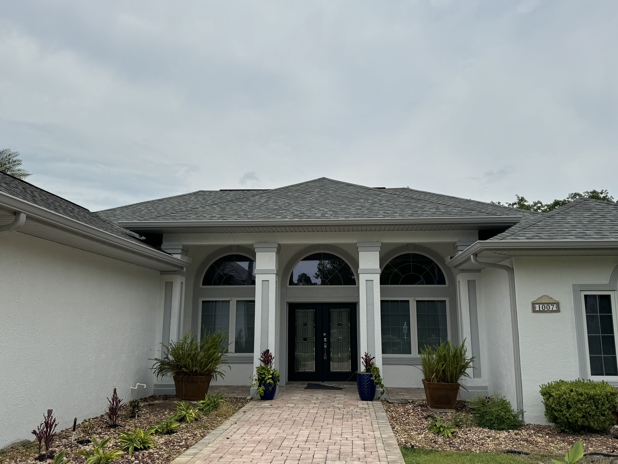 Two-Story White Mastic Universal O-Vent w/ Senox Black Gutters