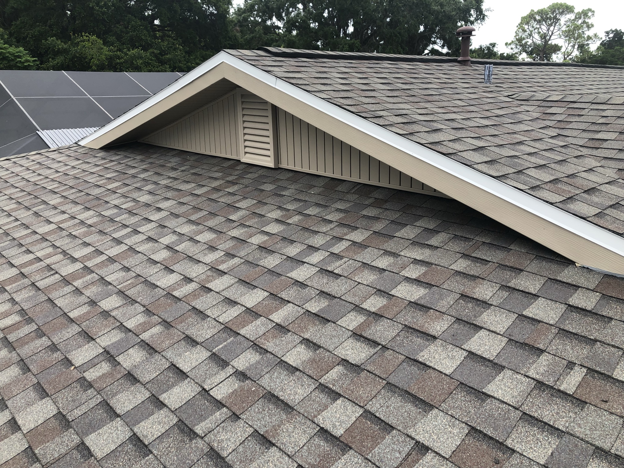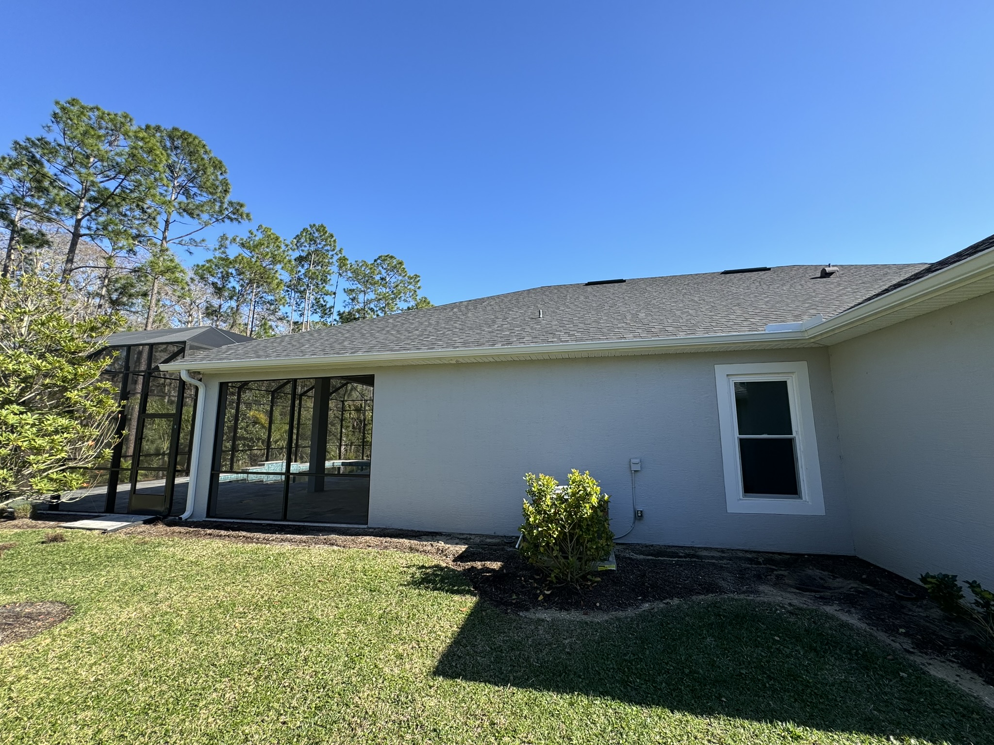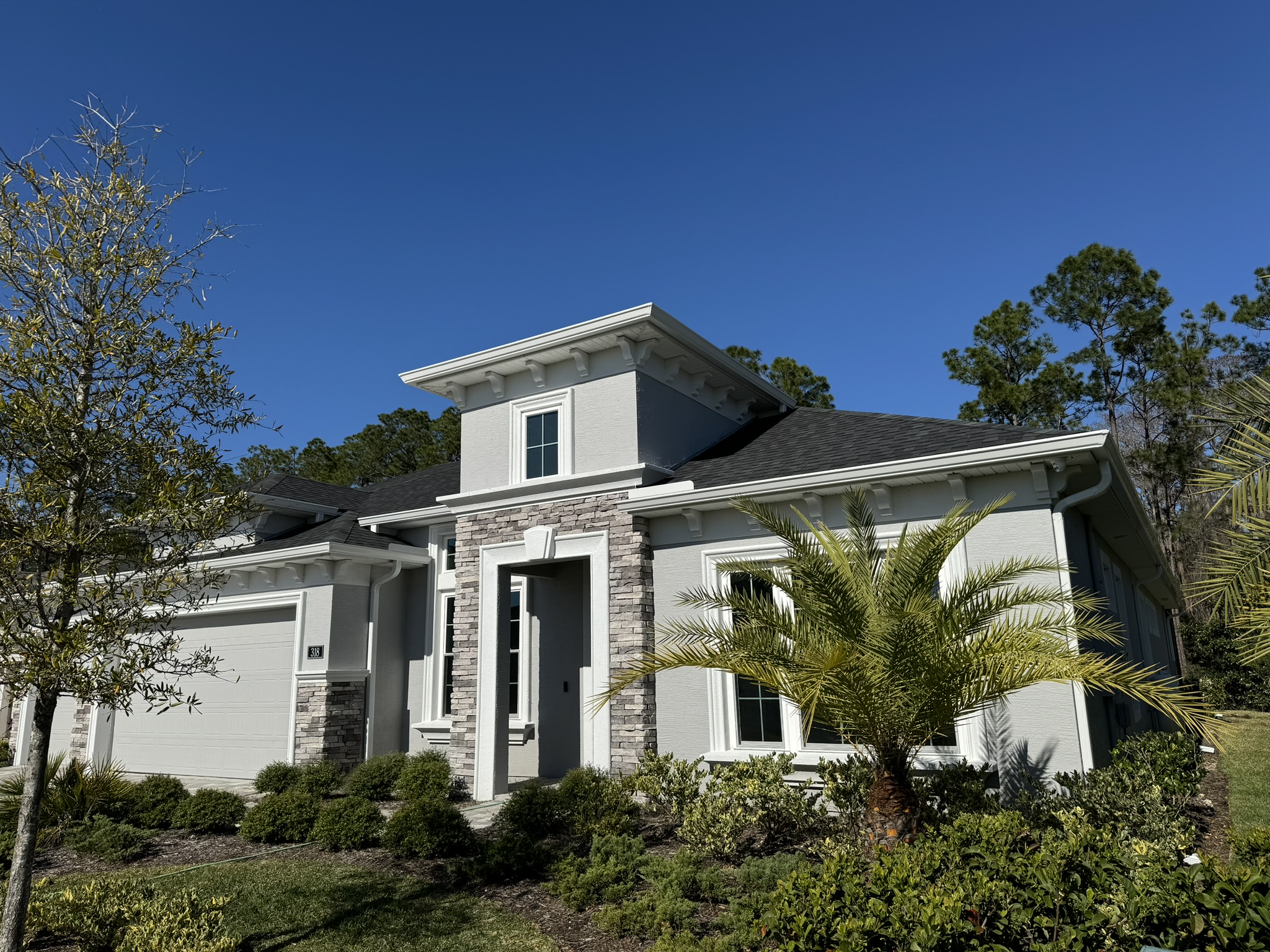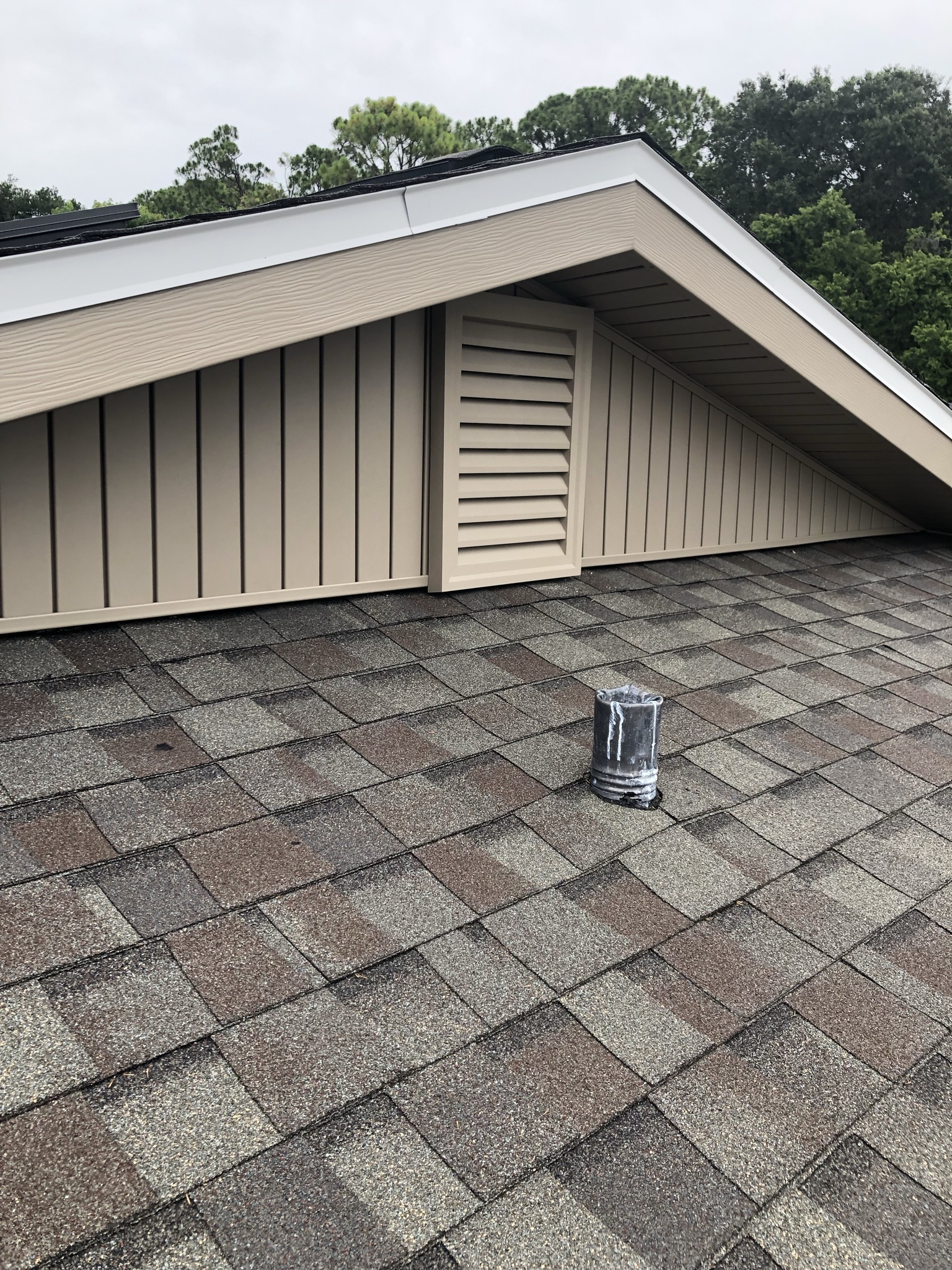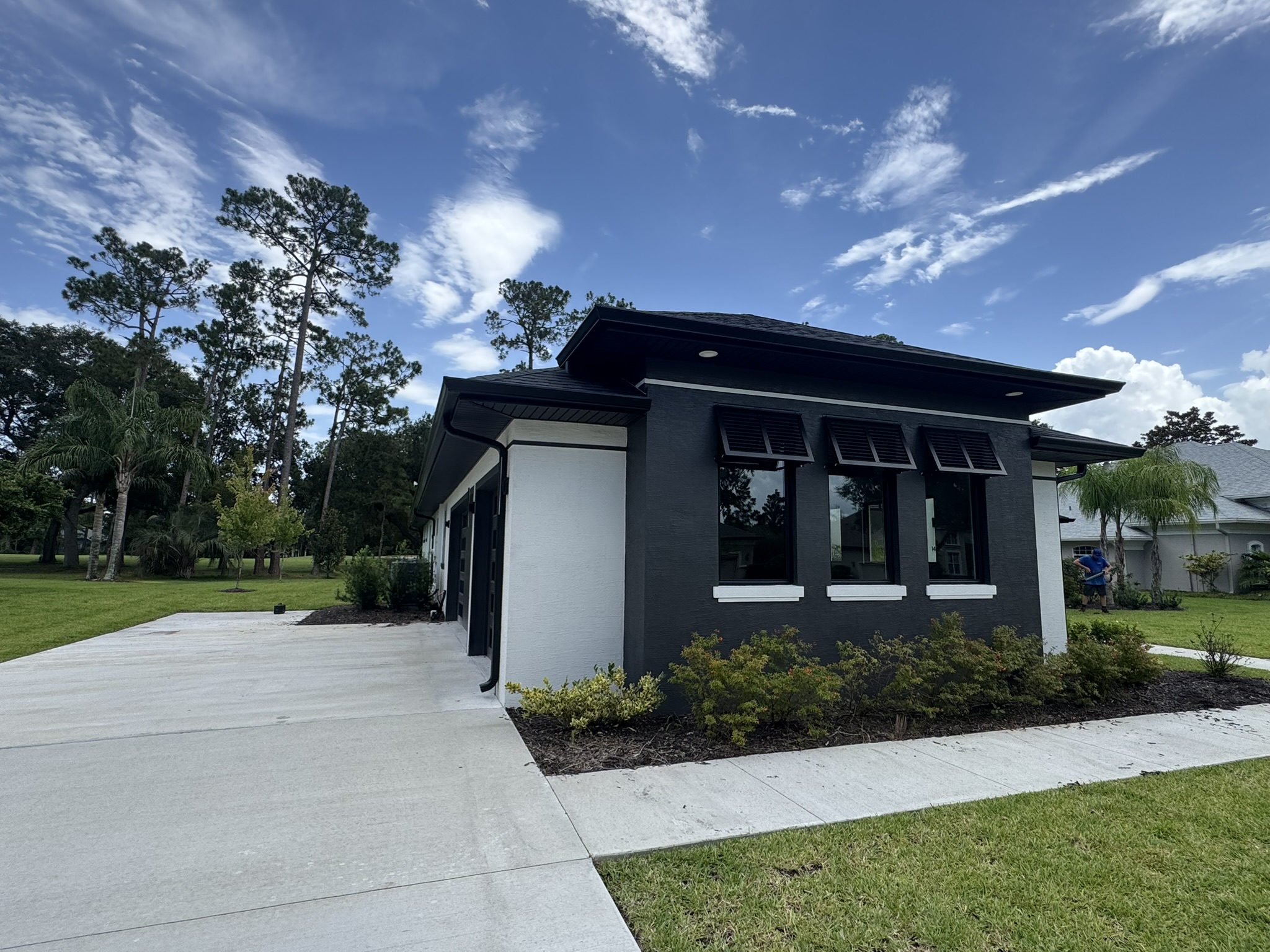 Two-Story White Mastic Universal O-Vent w/ Senox Black Gutters