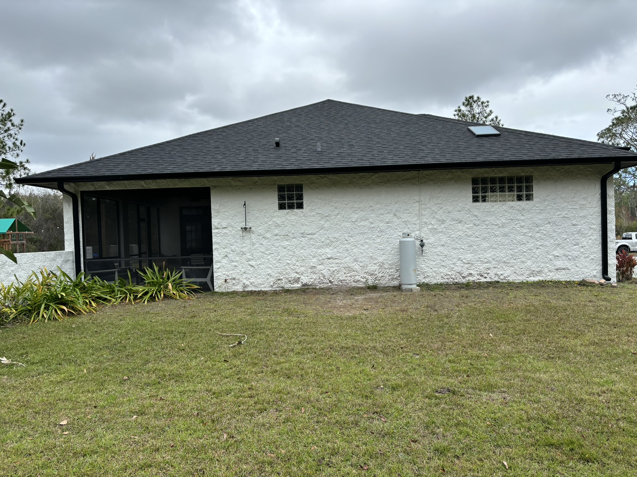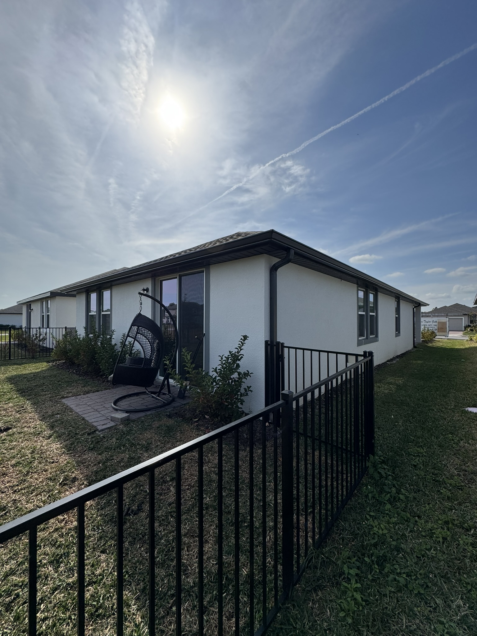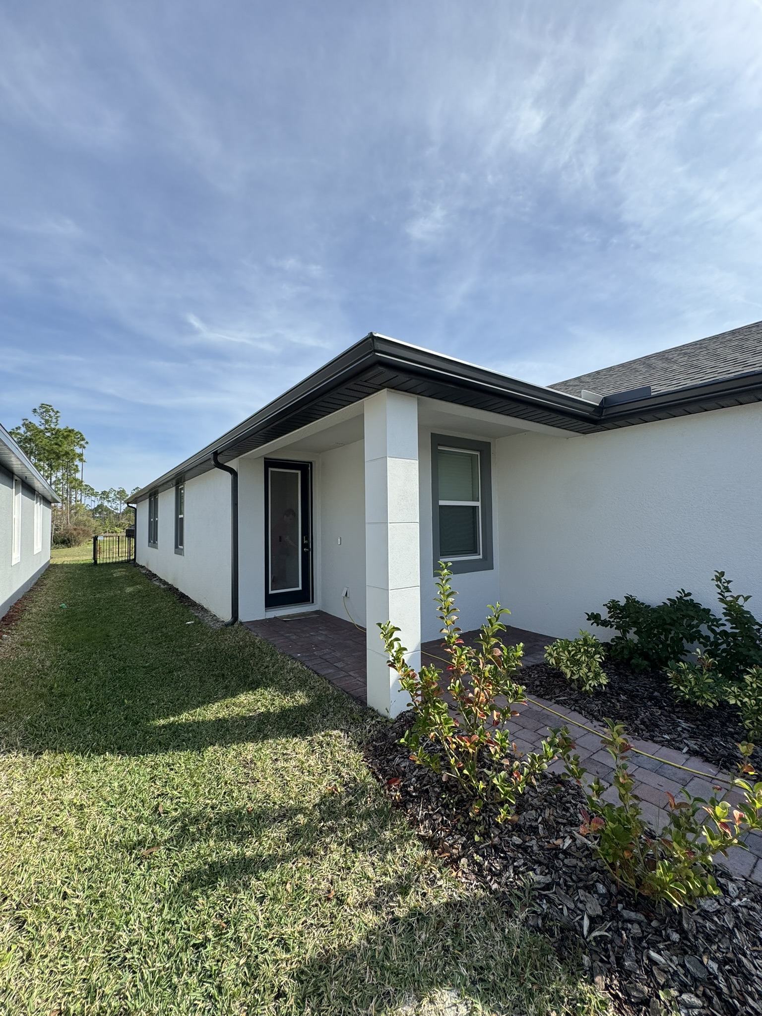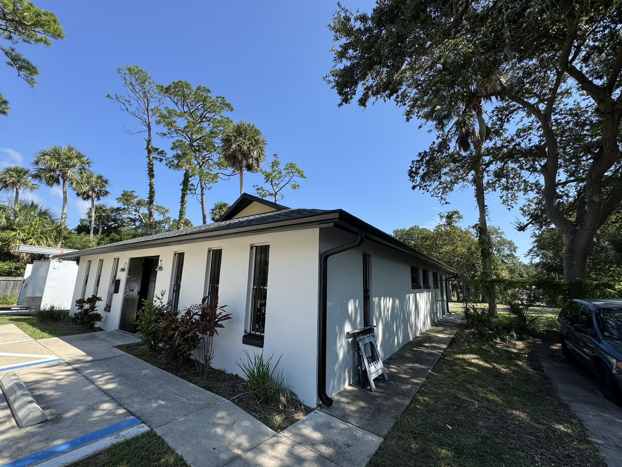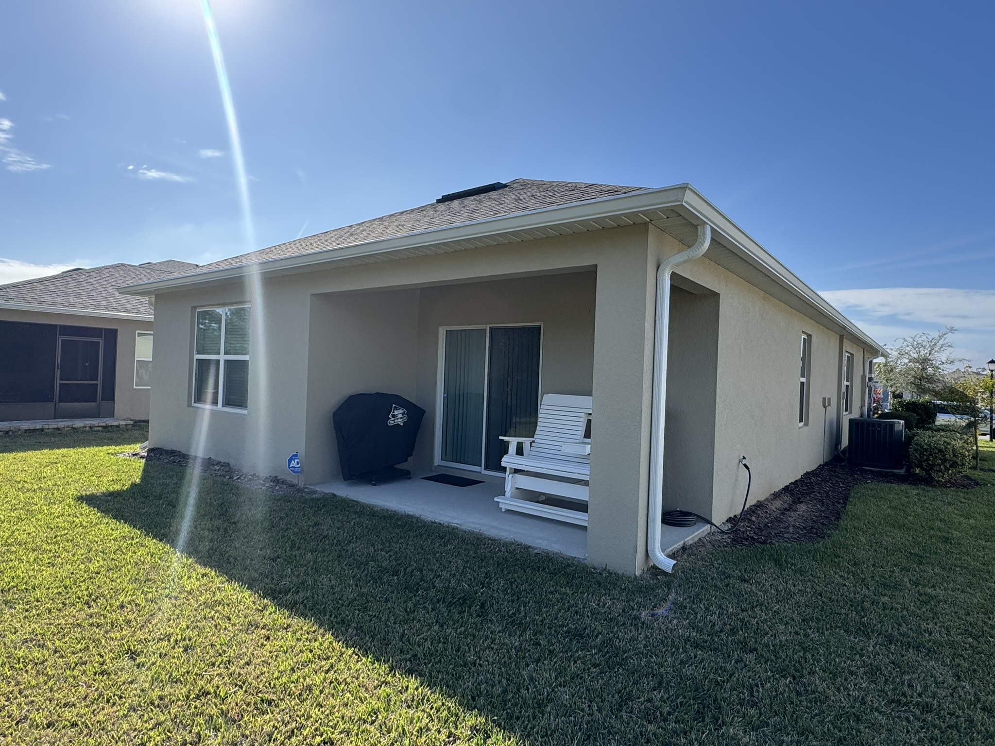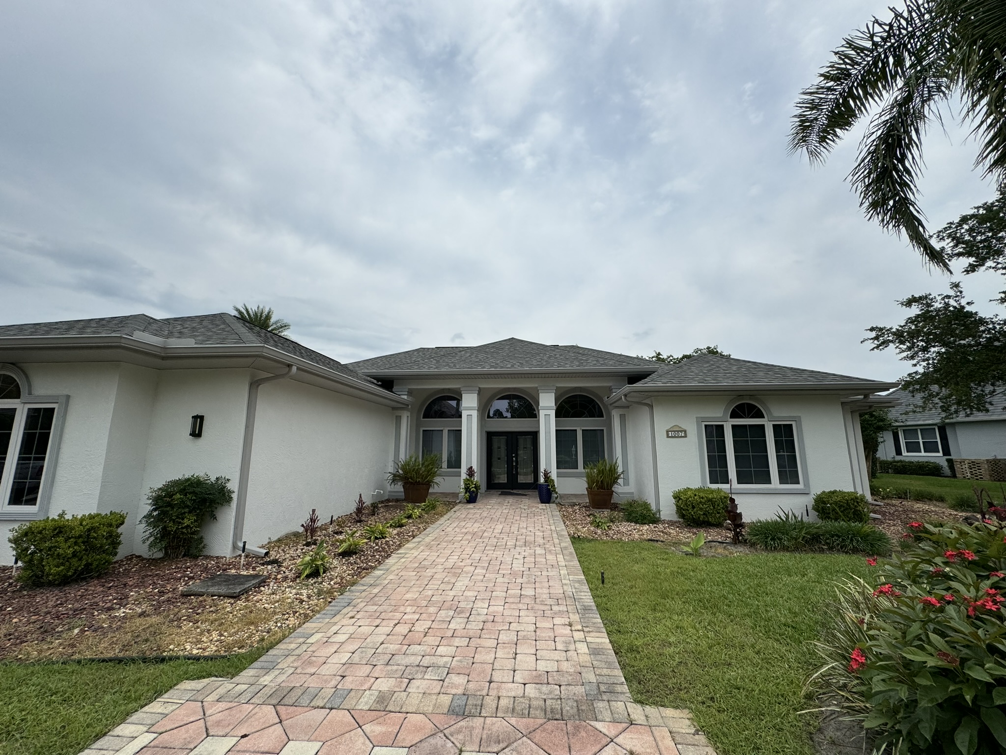 Two-Story White Mastic Universal O-Vent w/ Senox Black Gutters