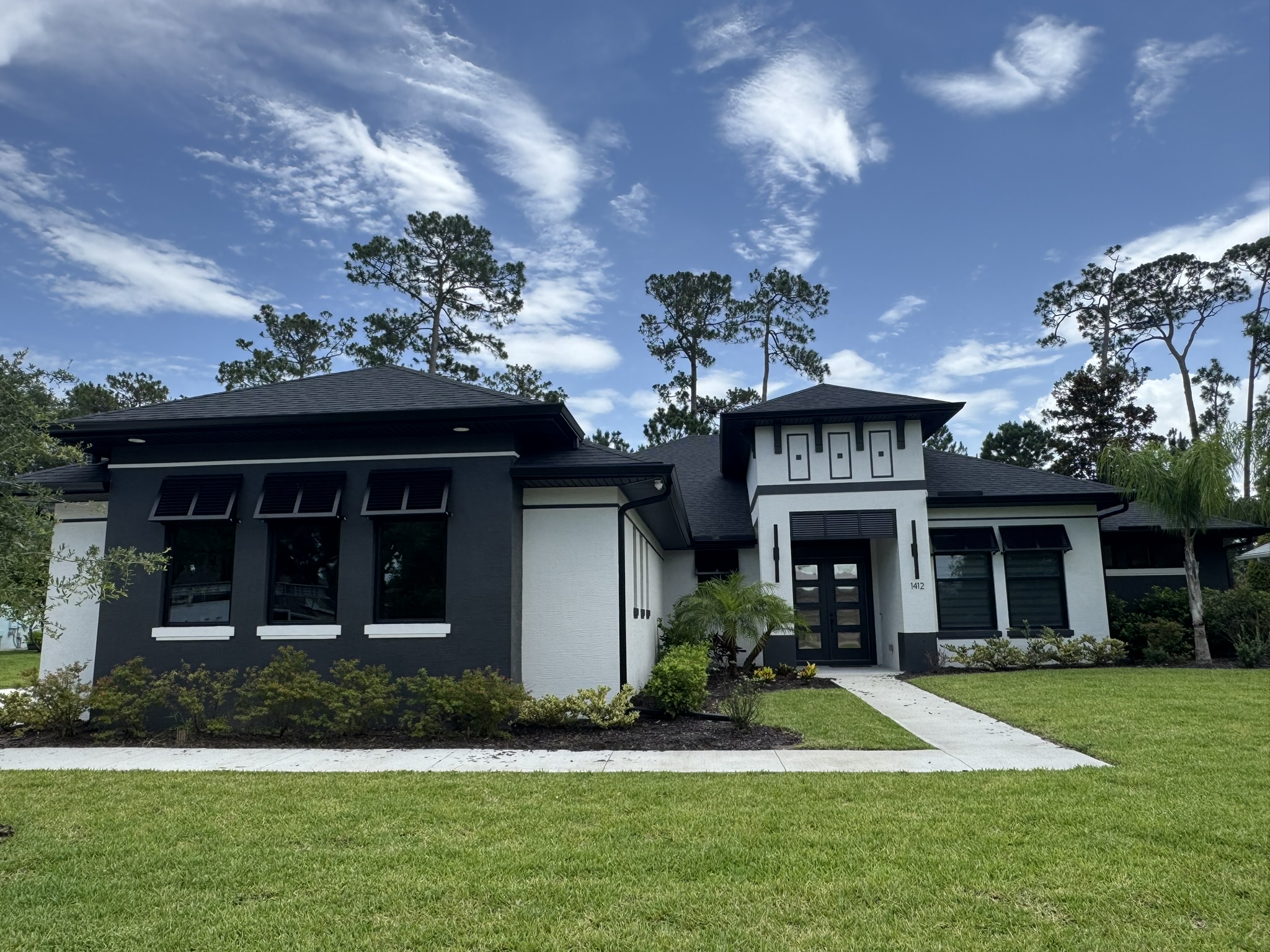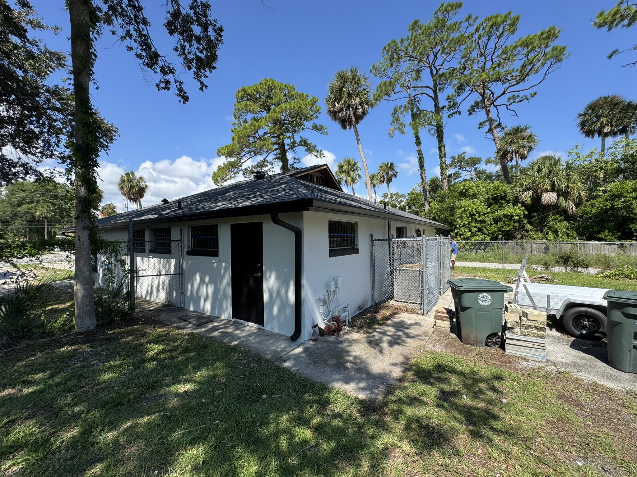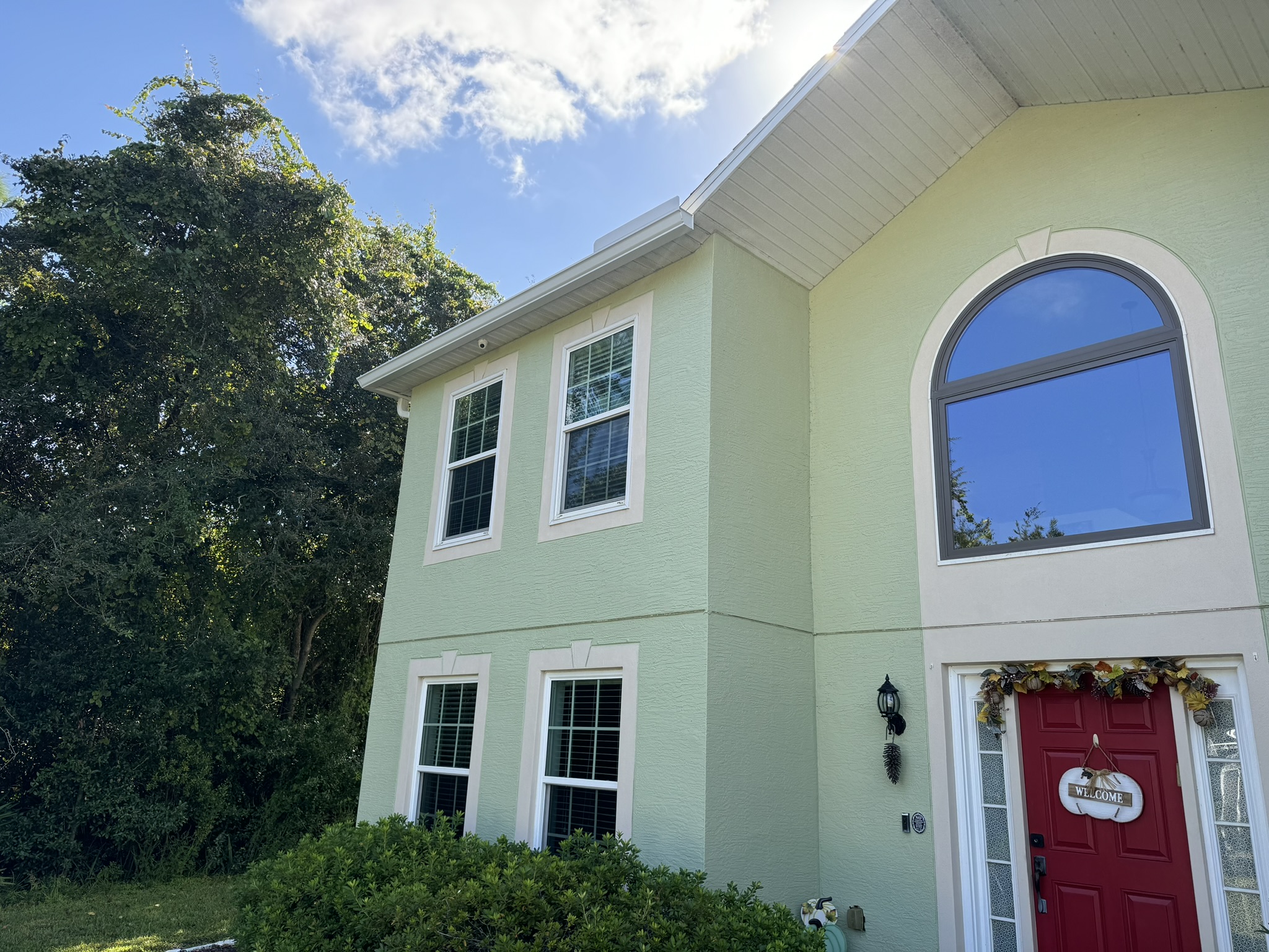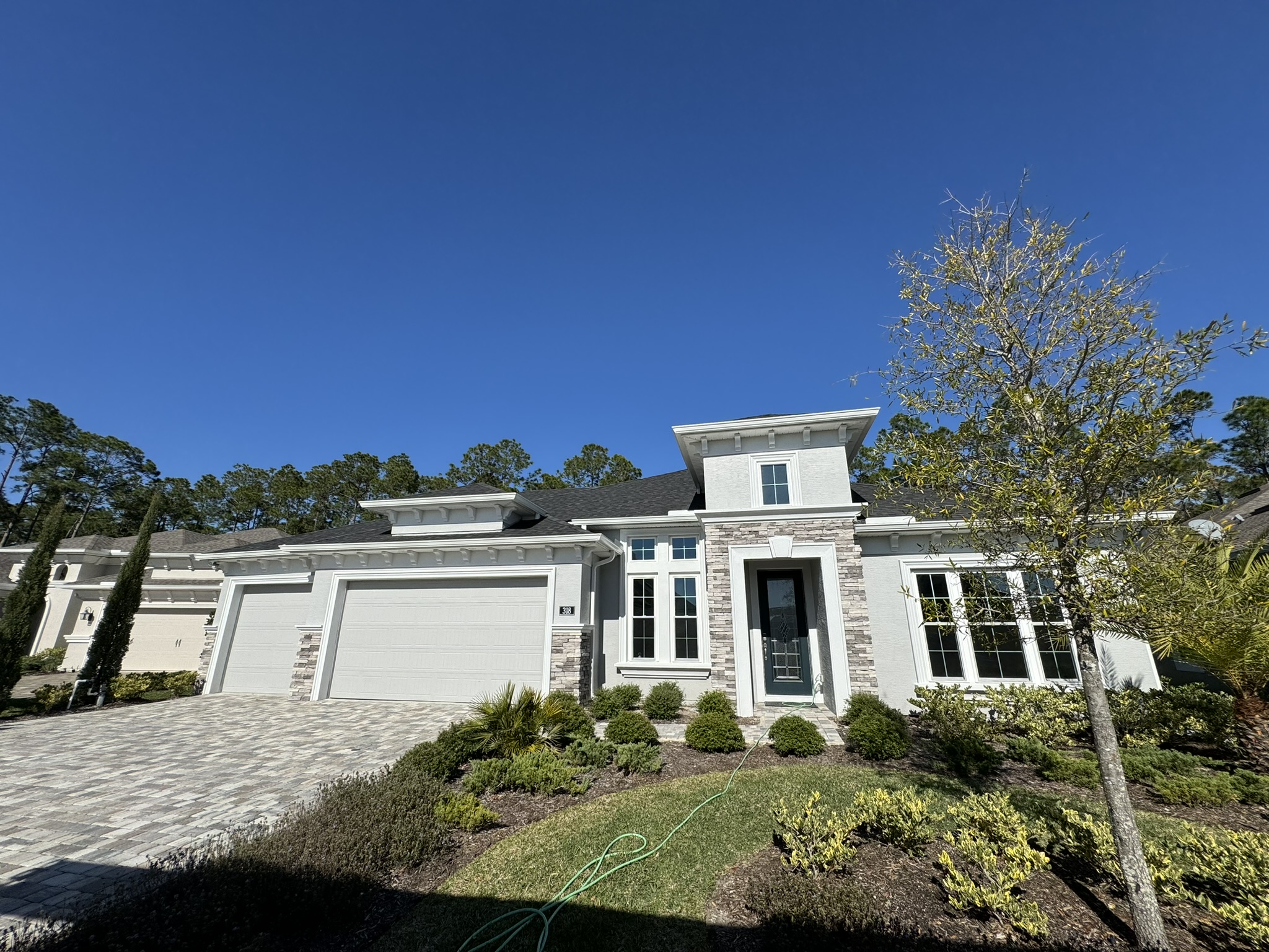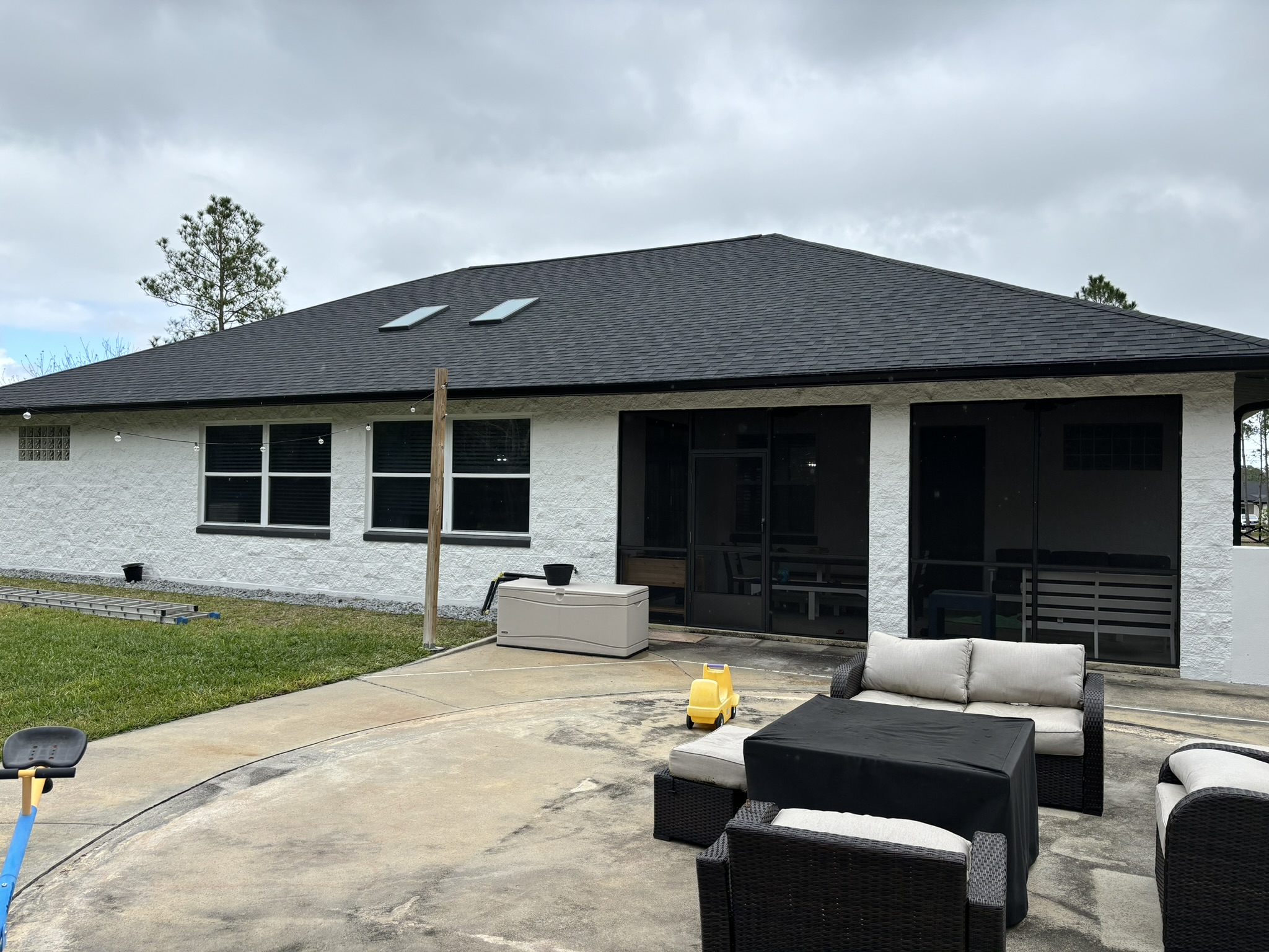 Two-Story White Mastic Universal O-Vent w/ Senox Black Gutters
