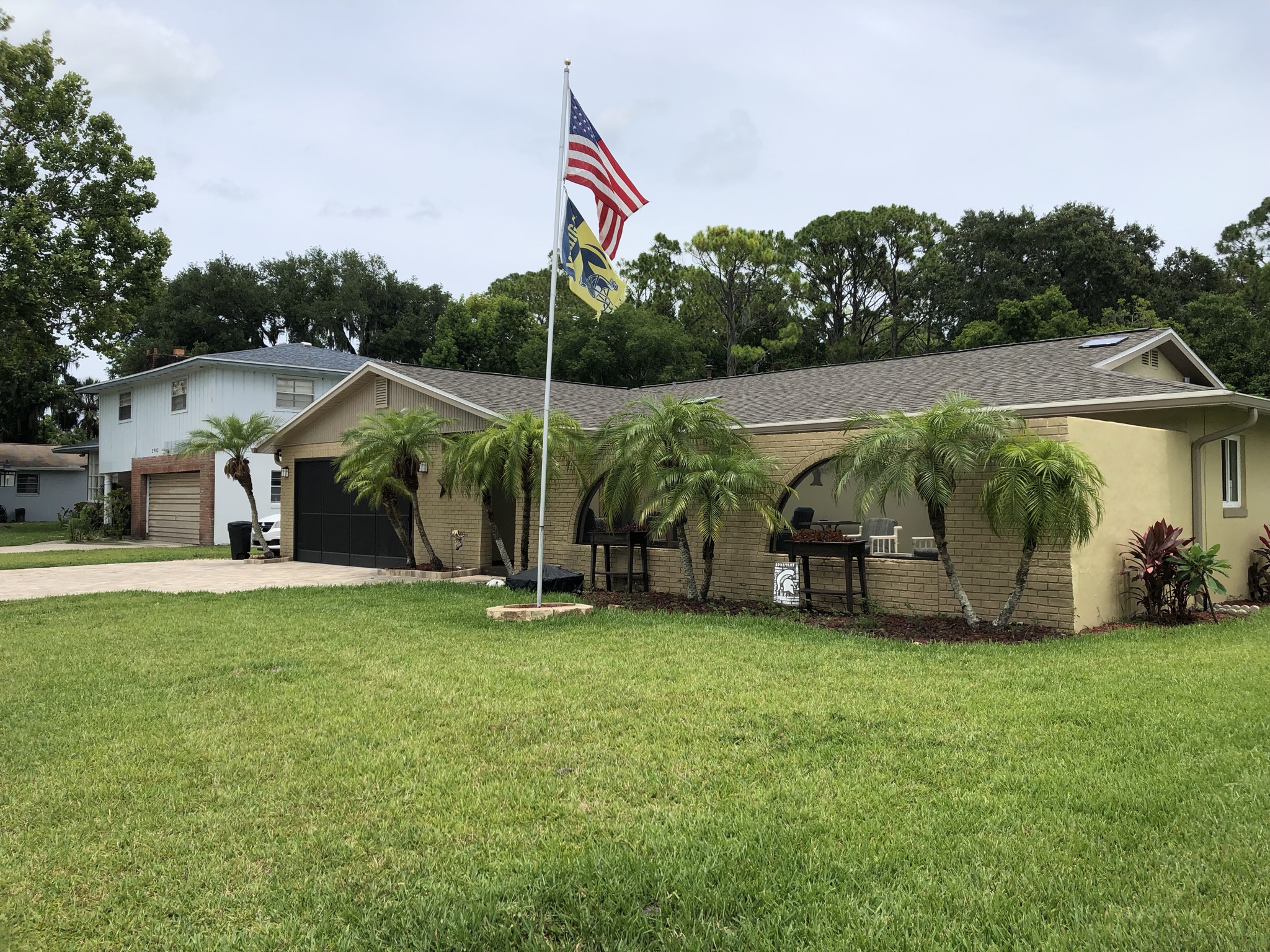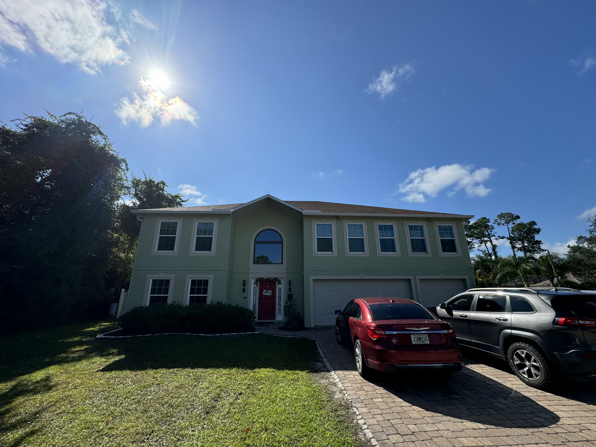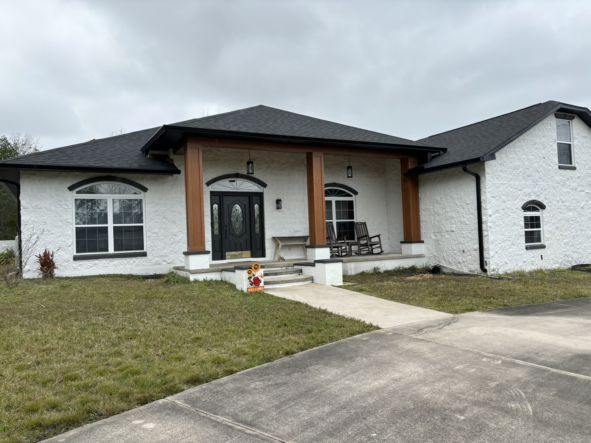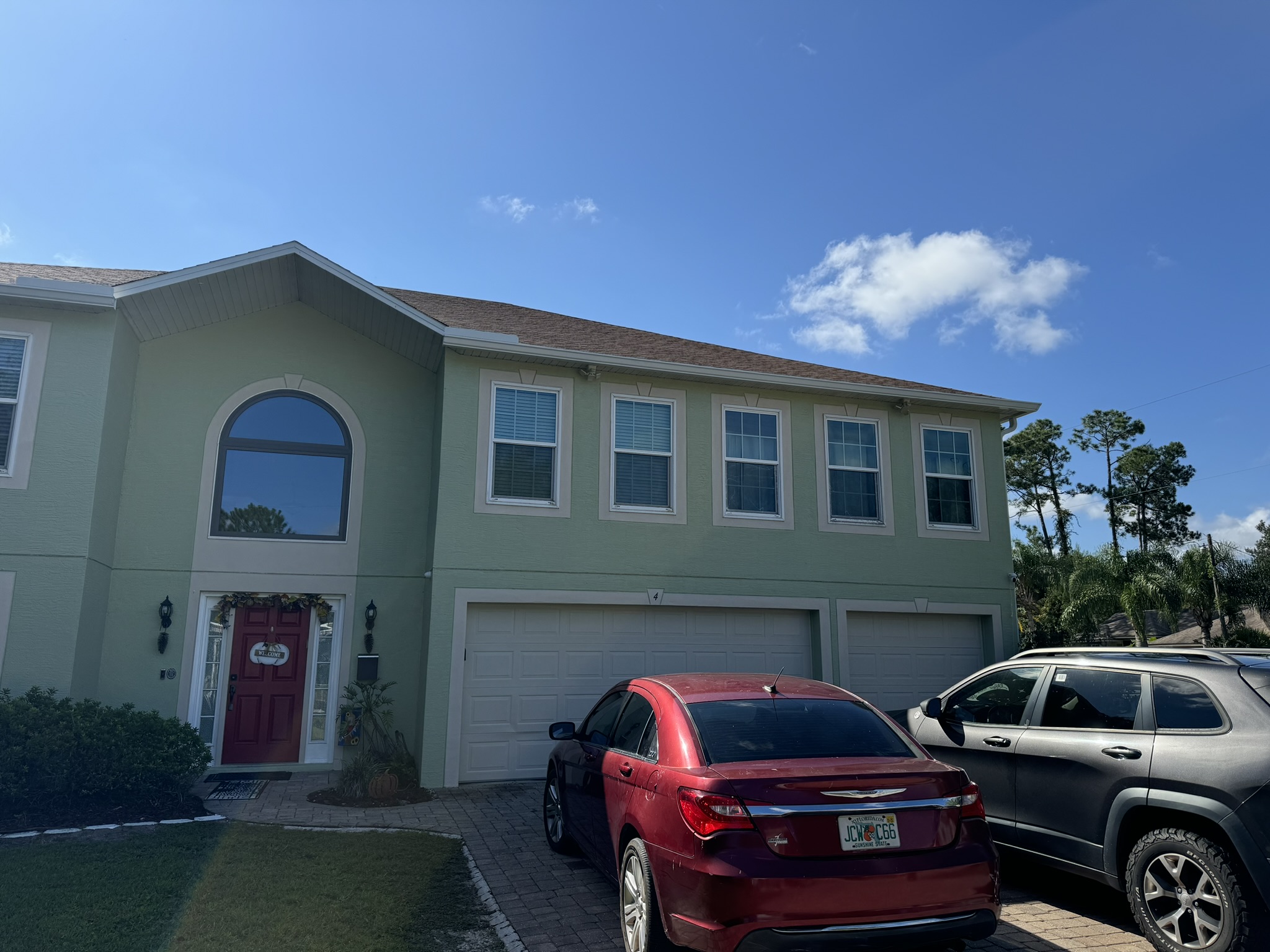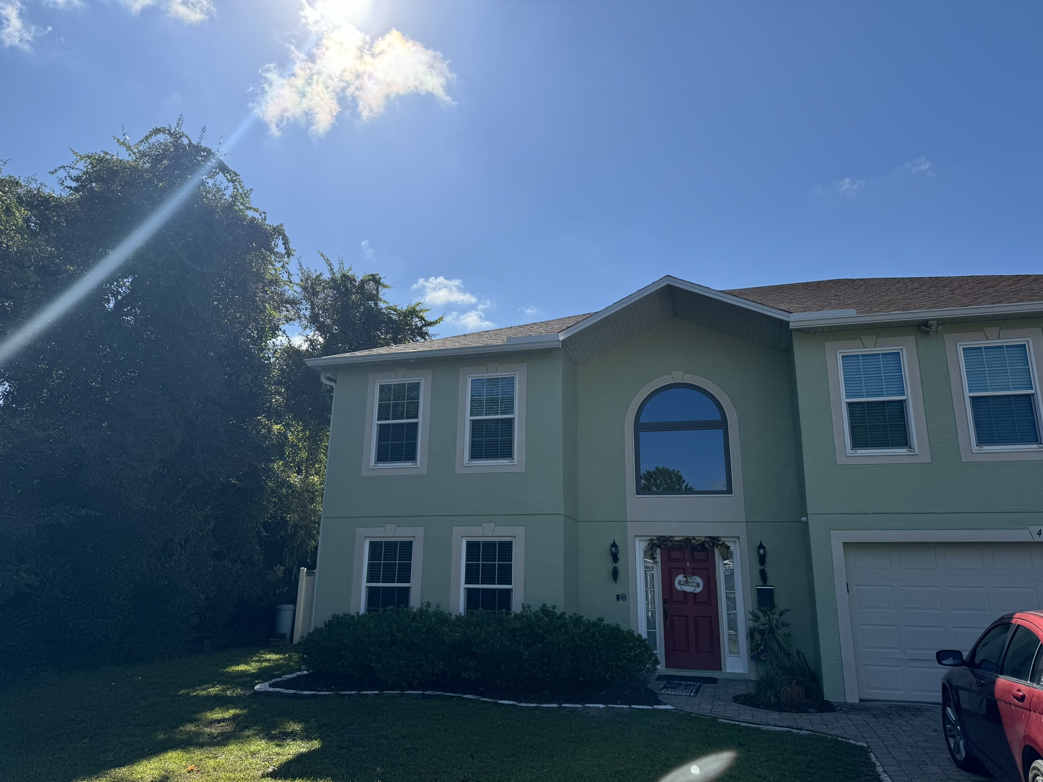 Two-Story White Mastic Universal O-Vent w/ Senox Black Gutters