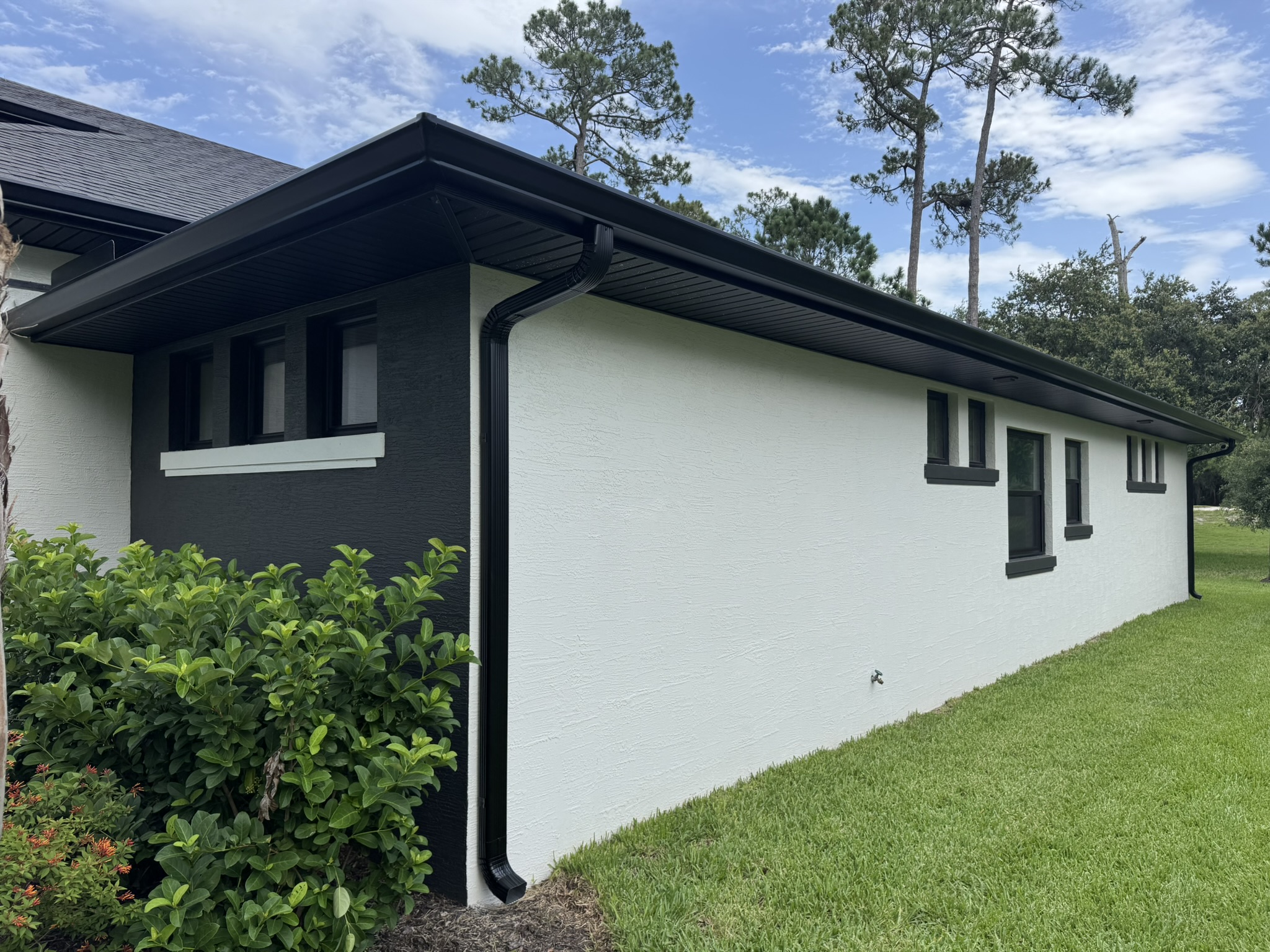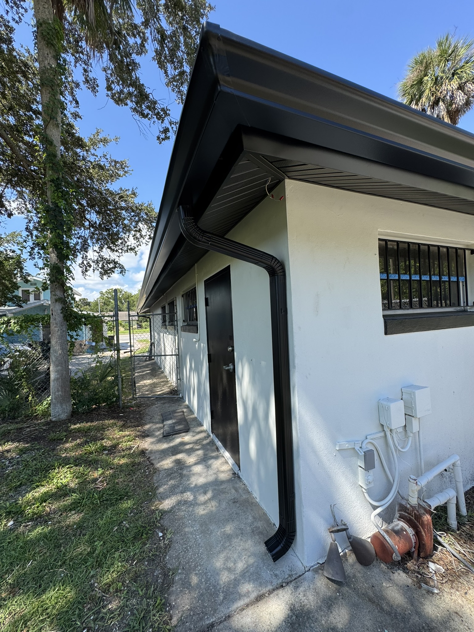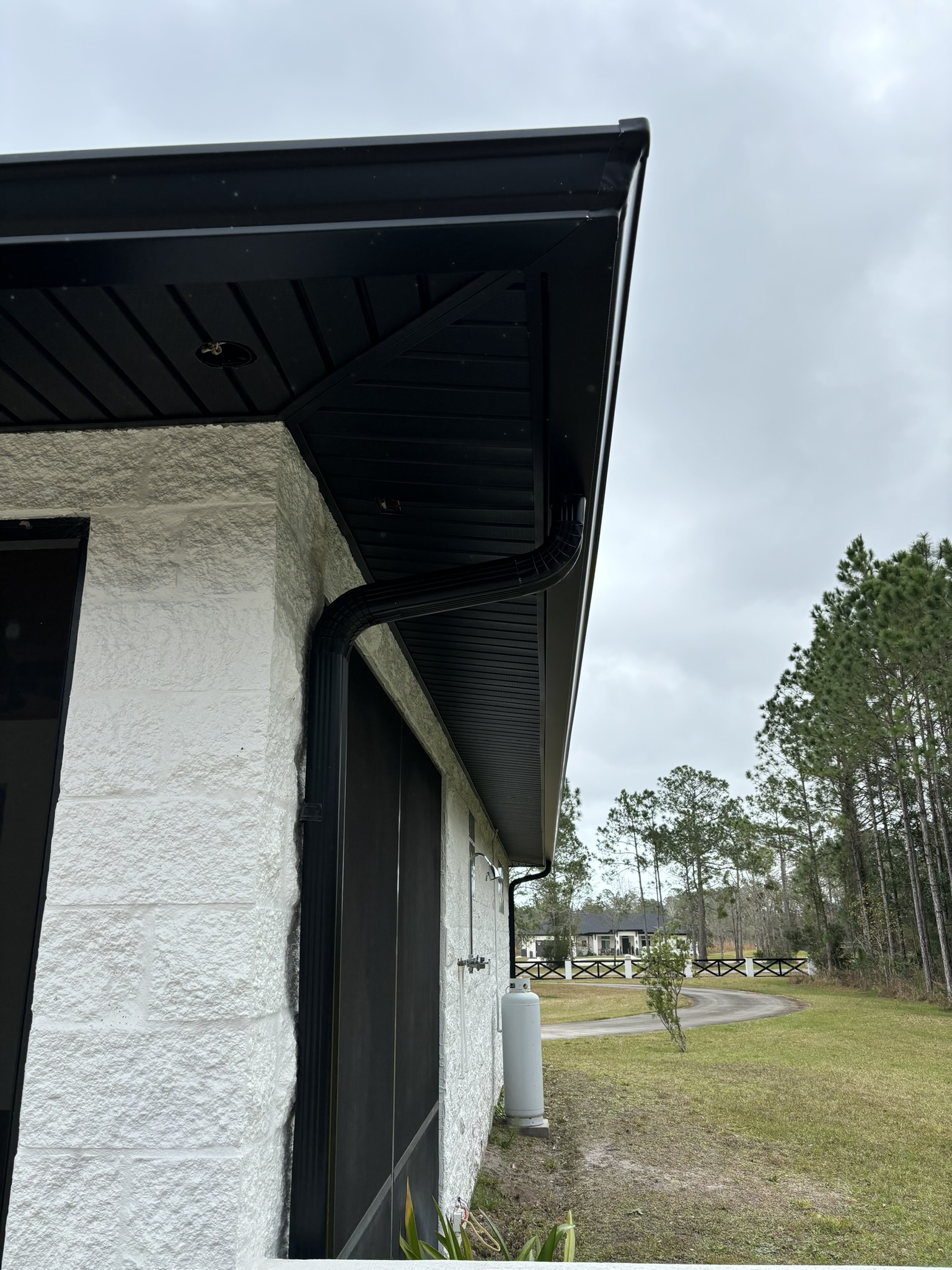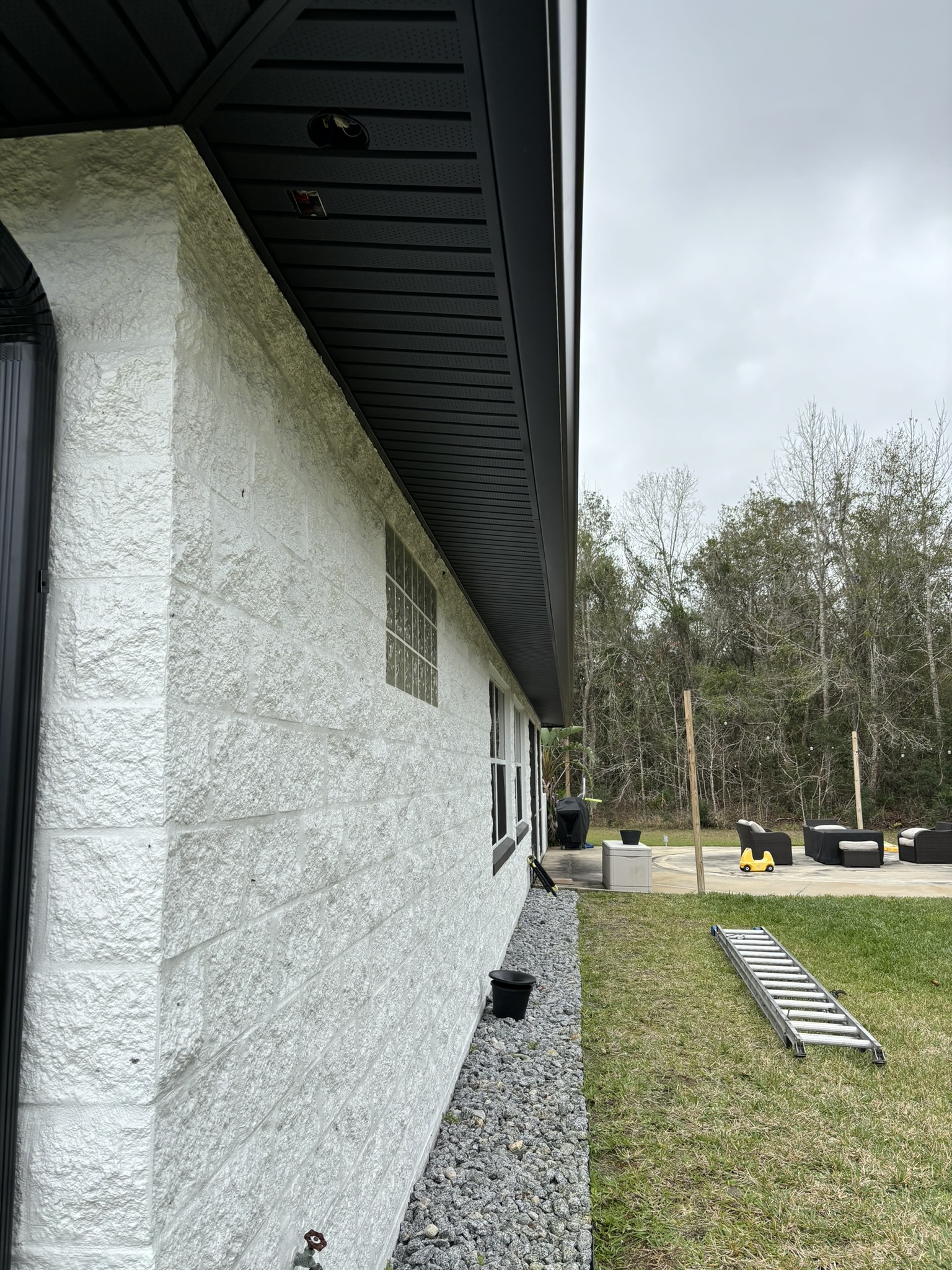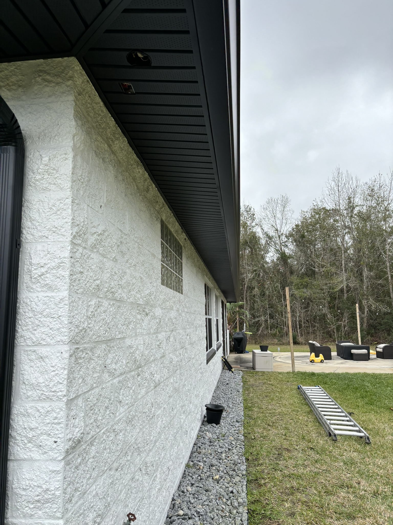 Black Pro-Tech Soffit W/ Senox Black Gutters