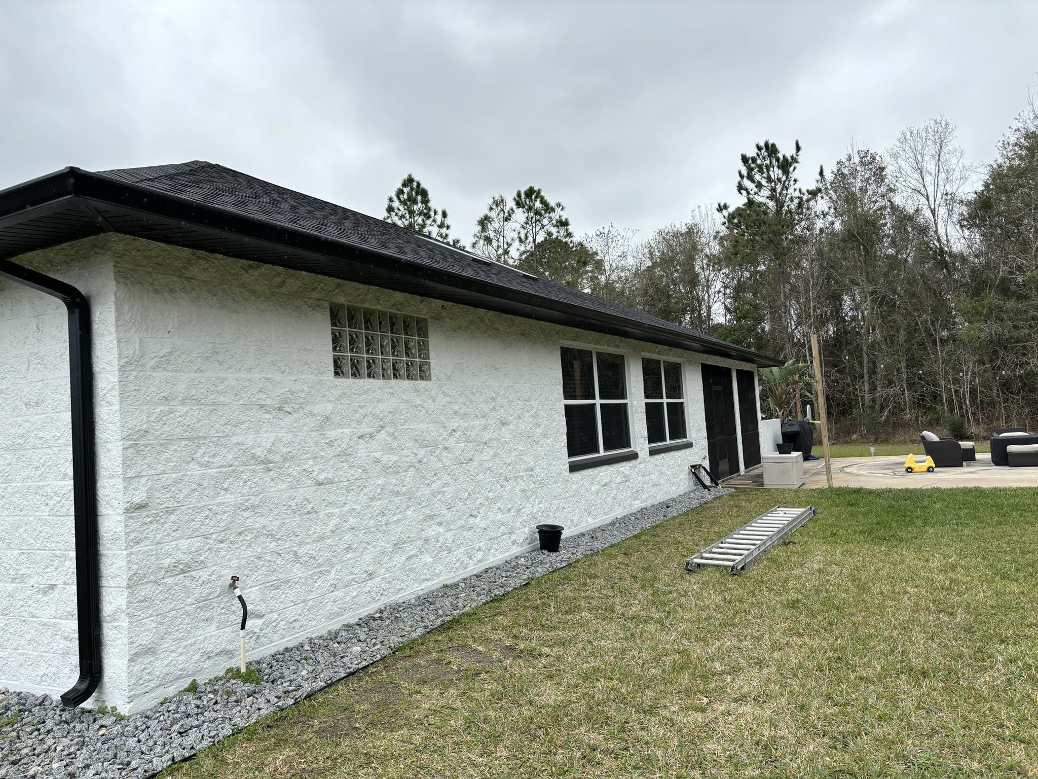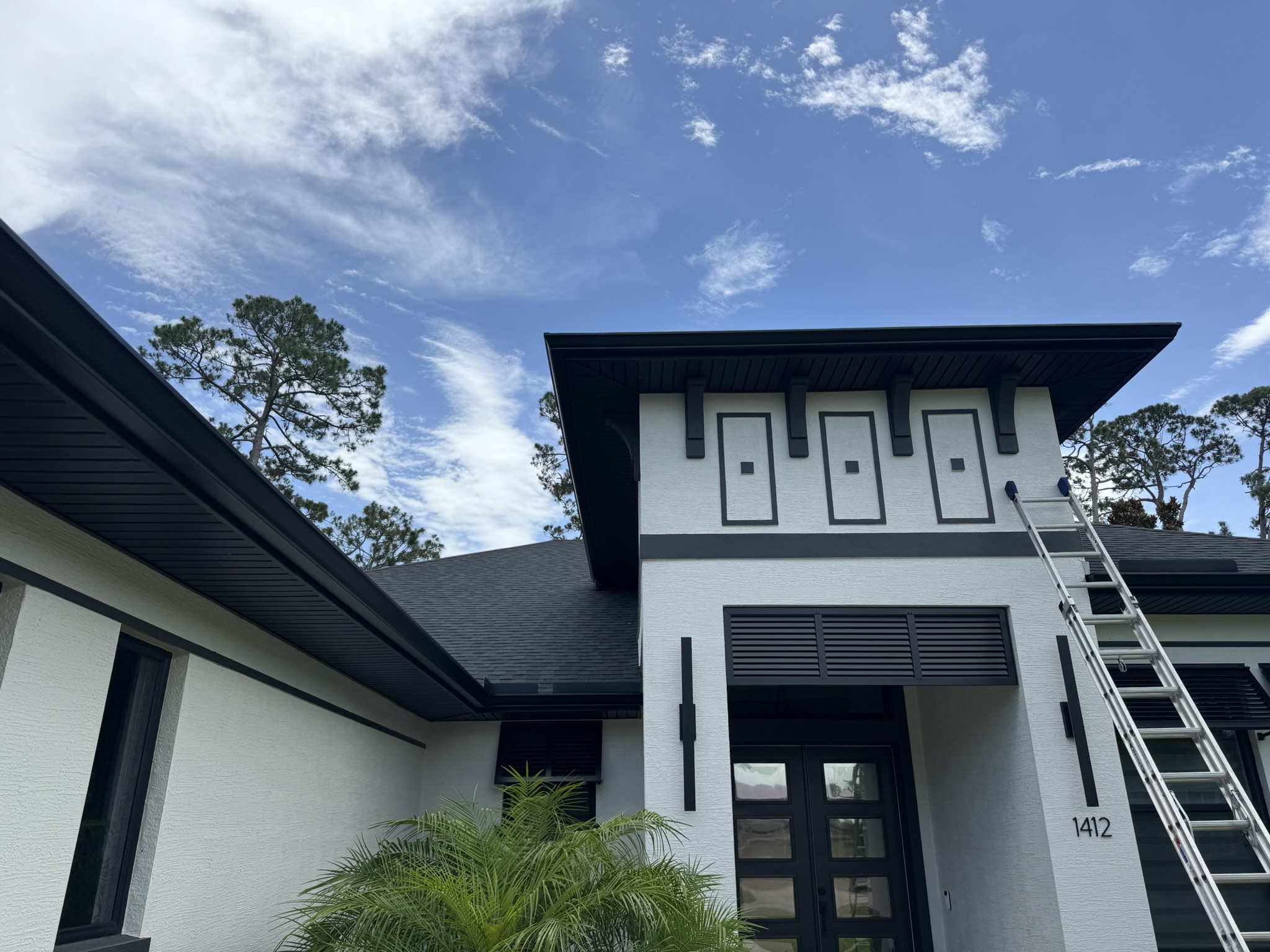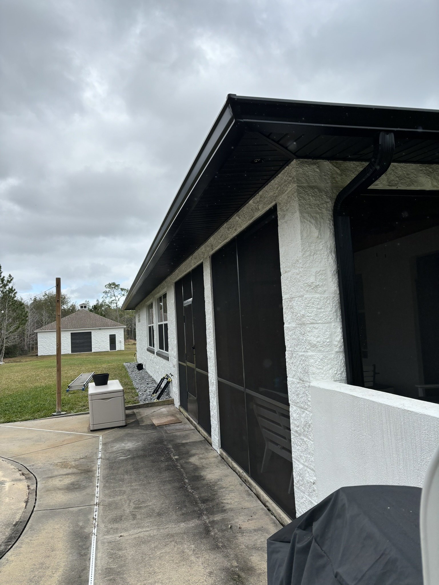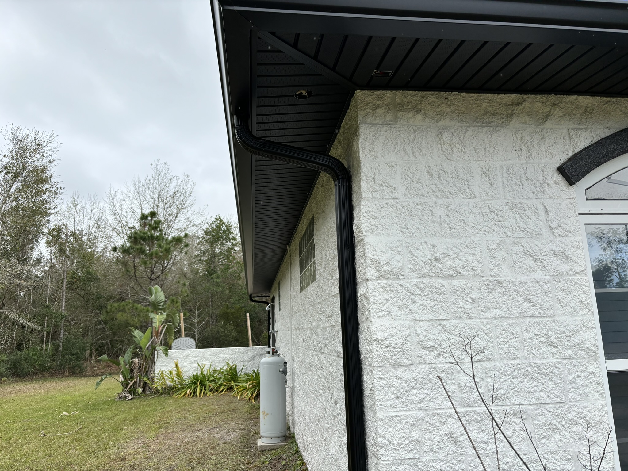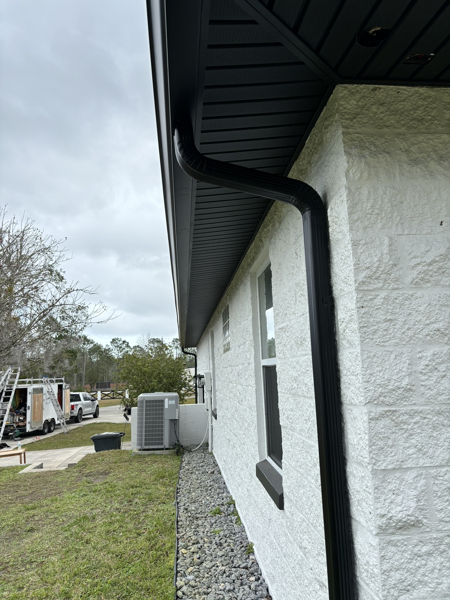 Black Pro-Tech Soffit W/ Senox Black Gutters
