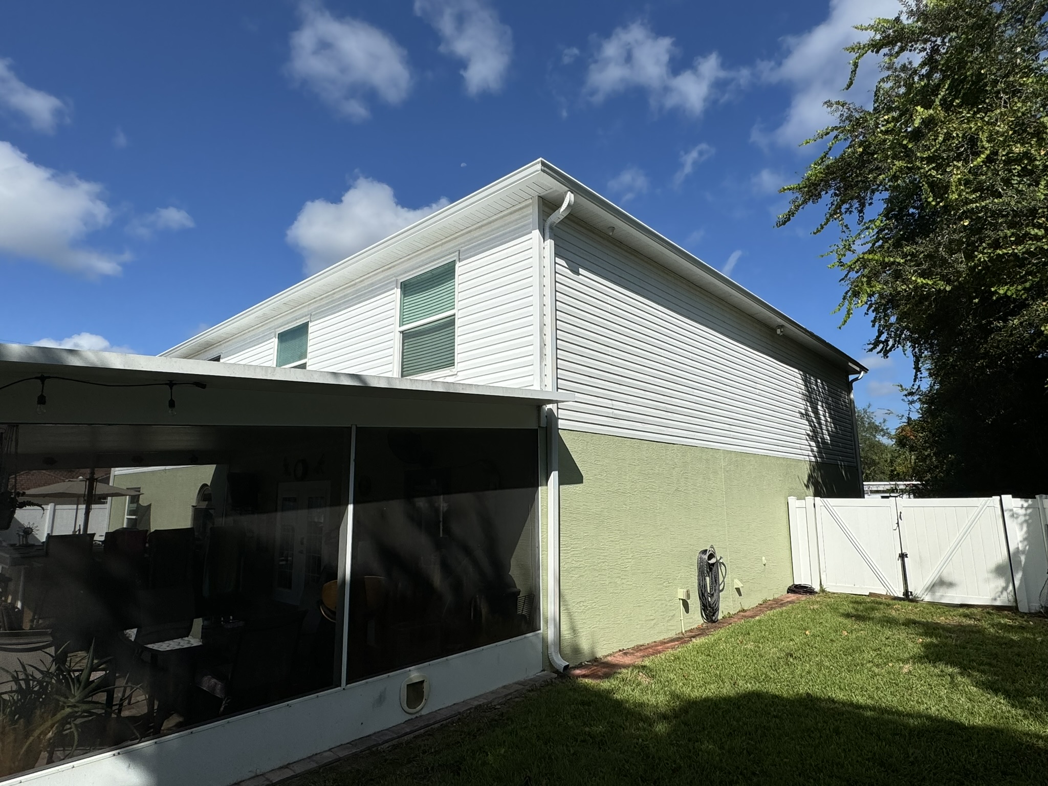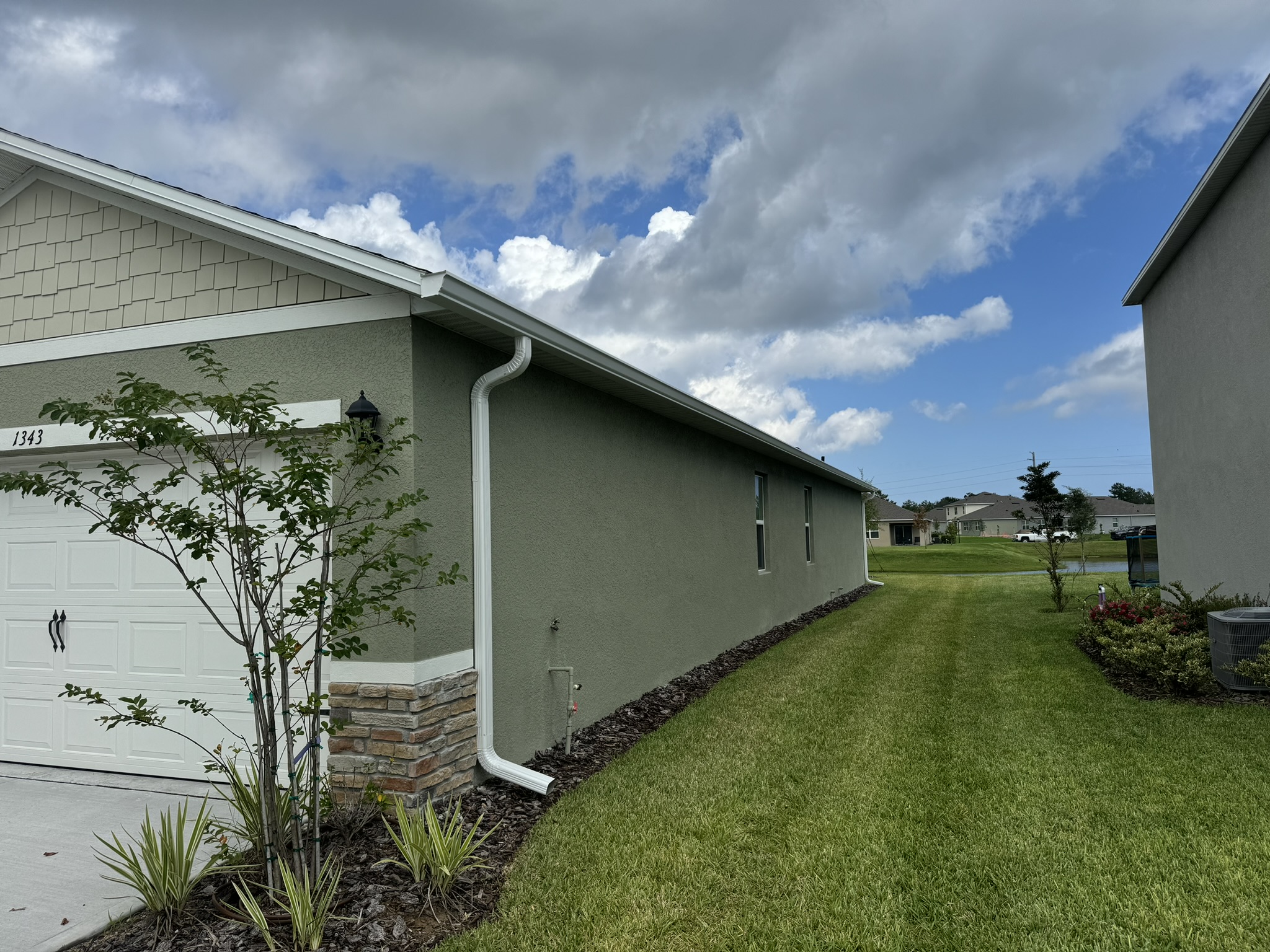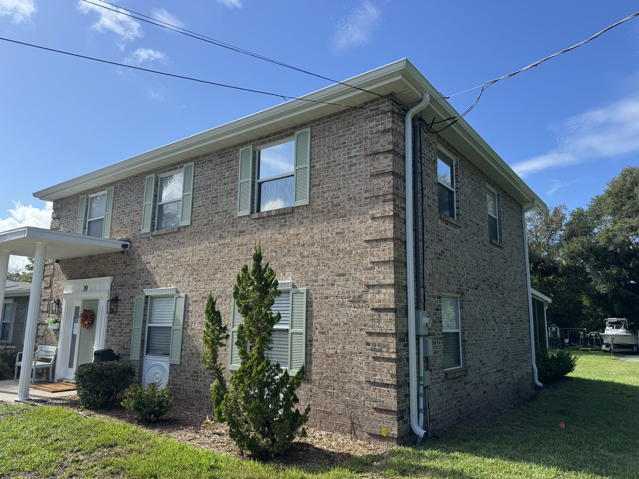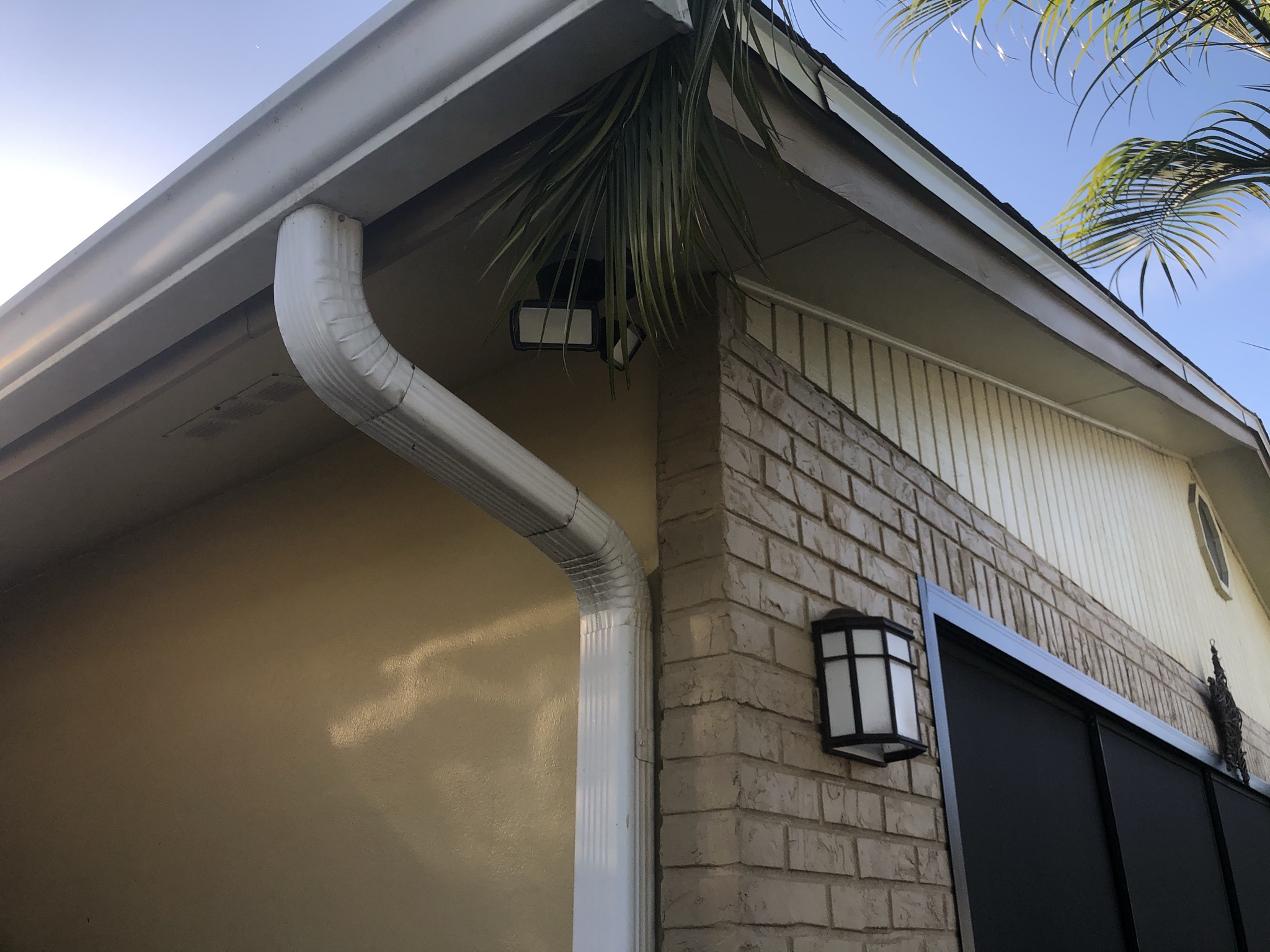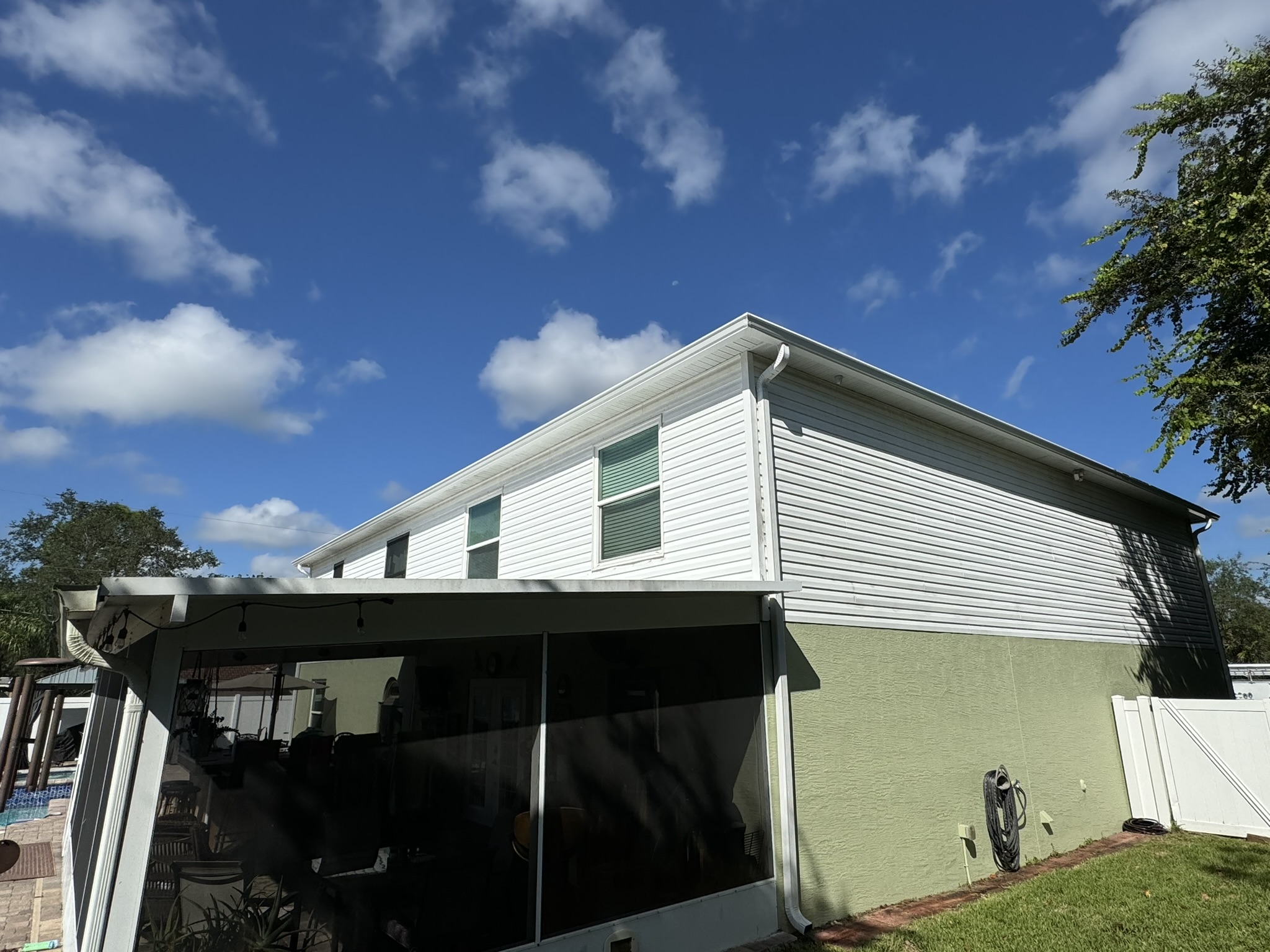 Two-Story Mastic White Gutters & Downspouts