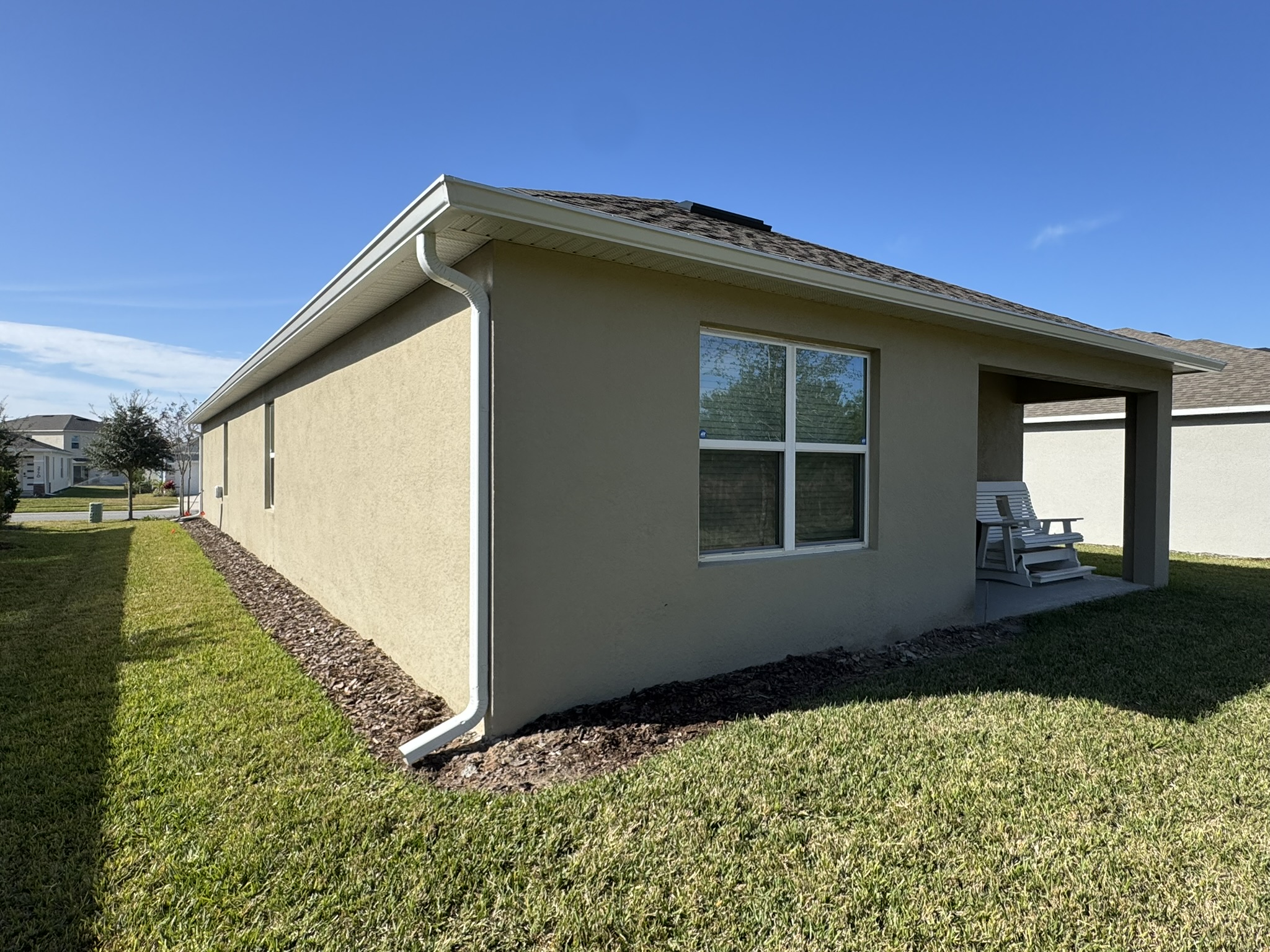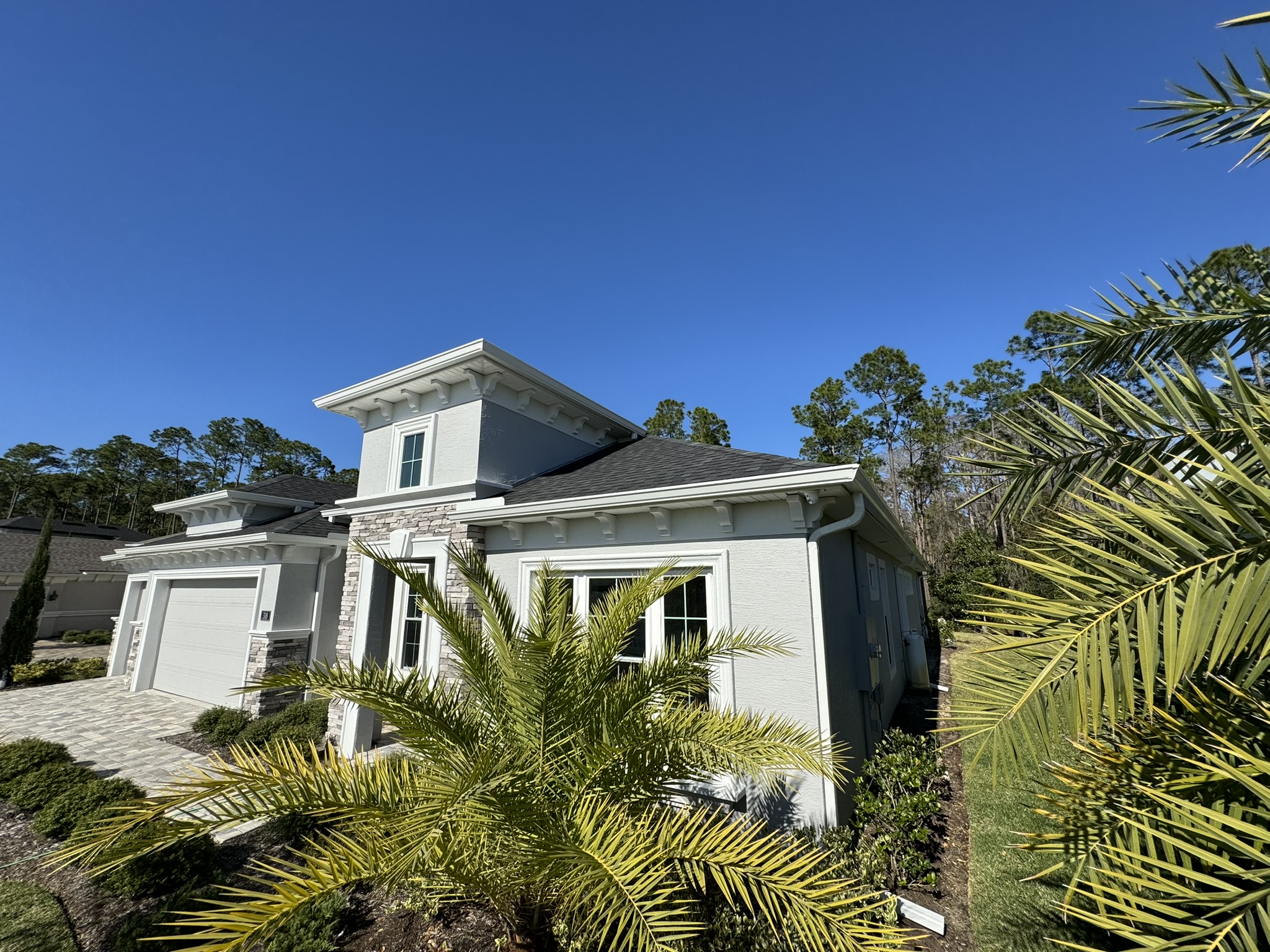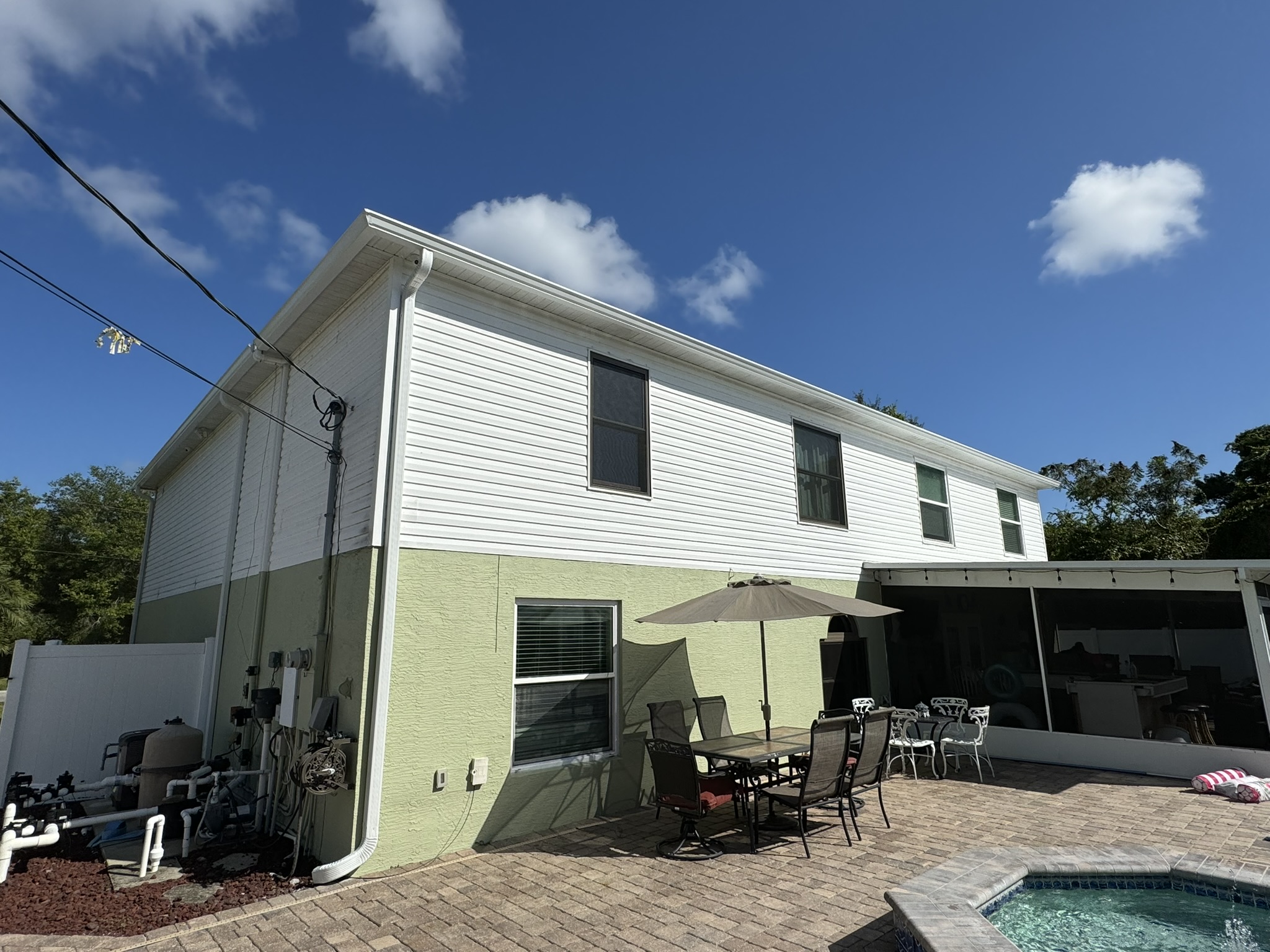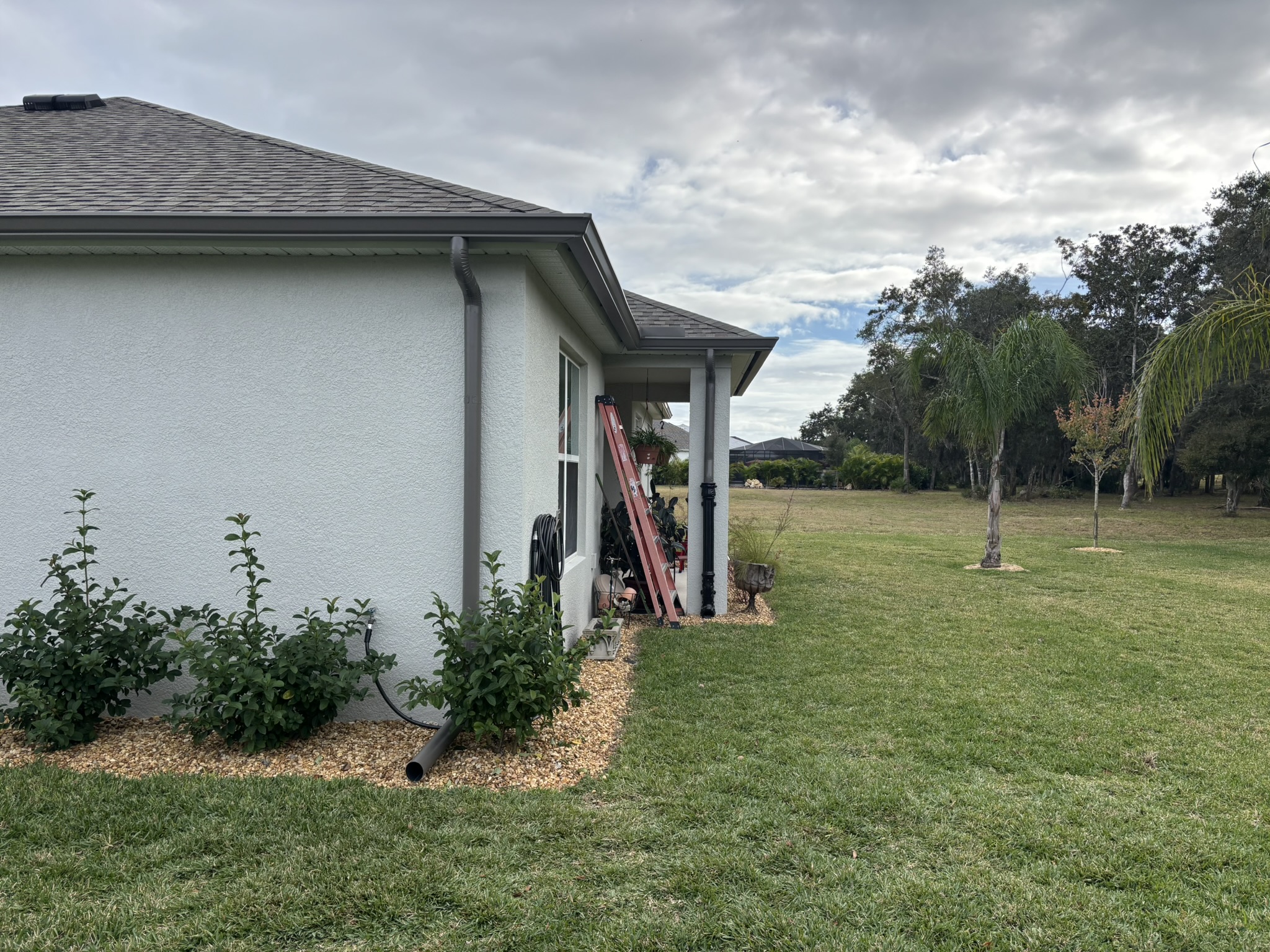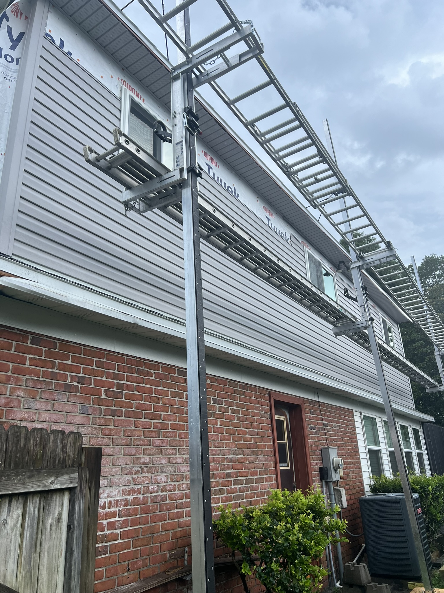 Two-Story Mastic White Gutters & Downspouts