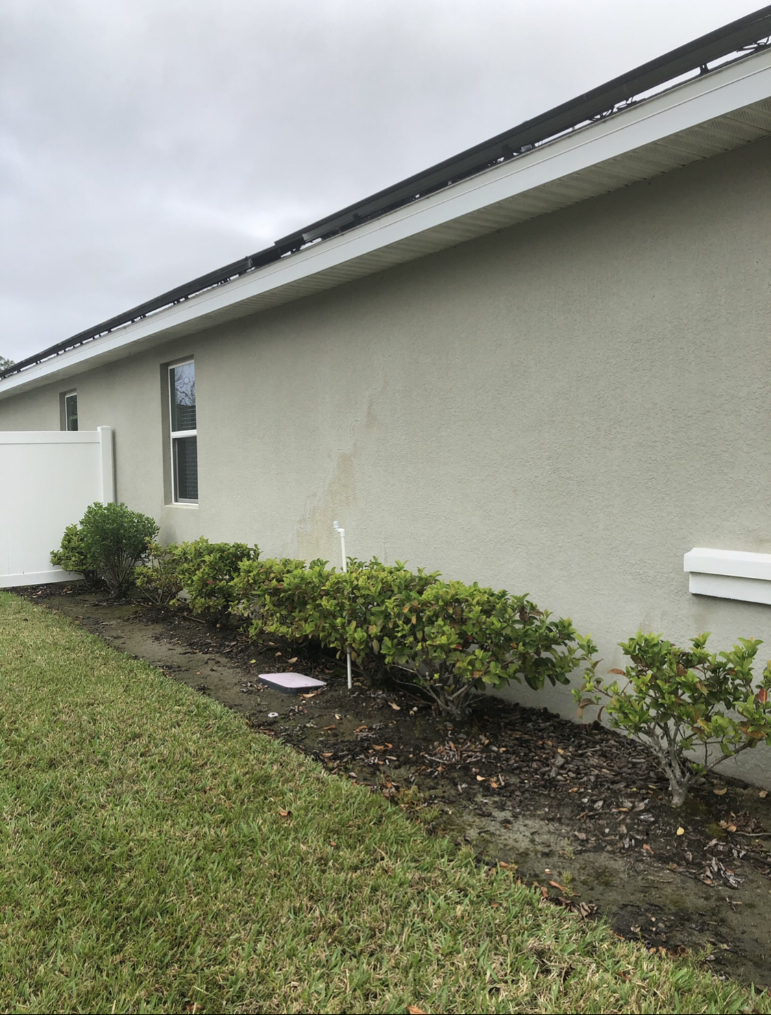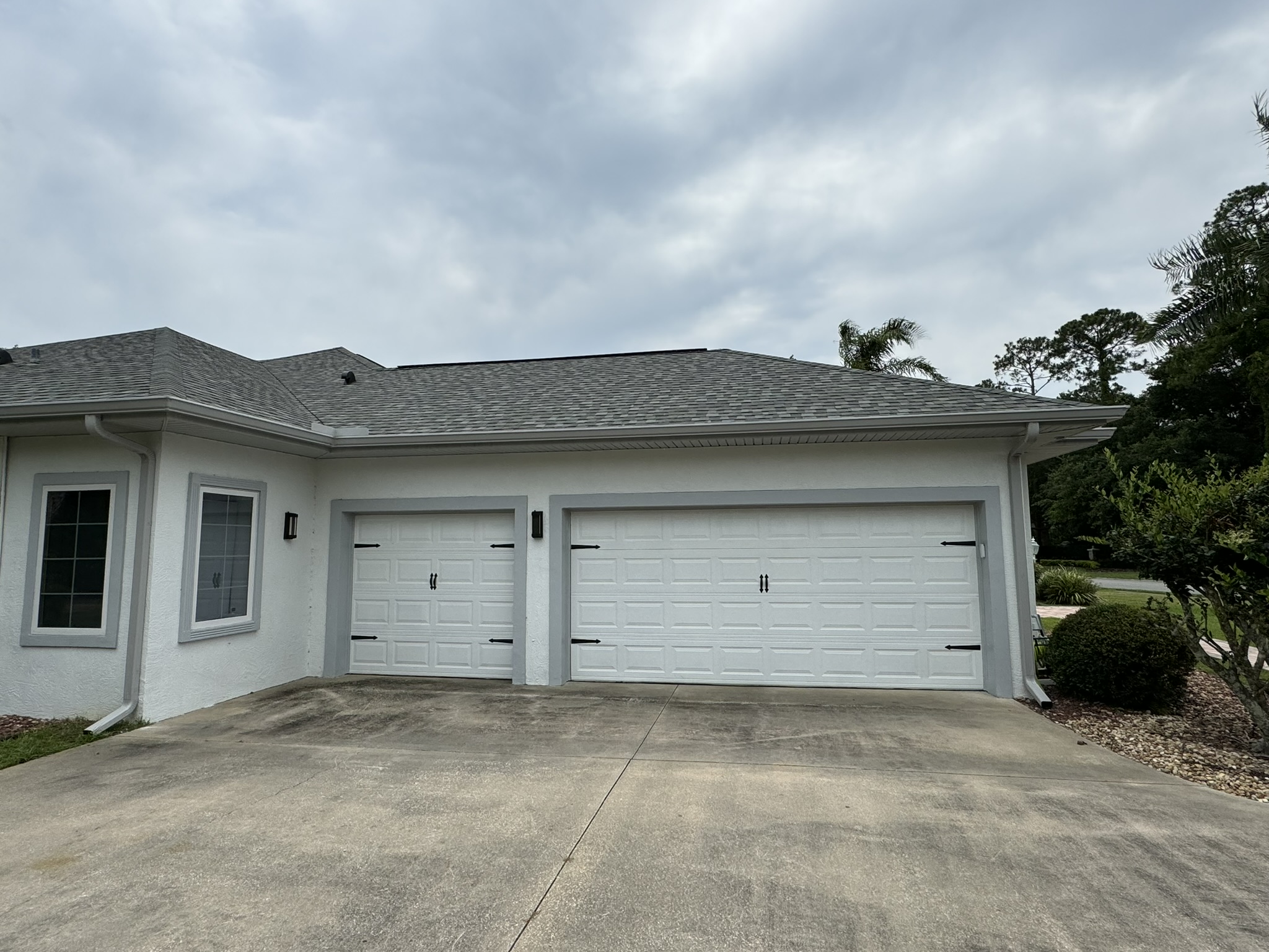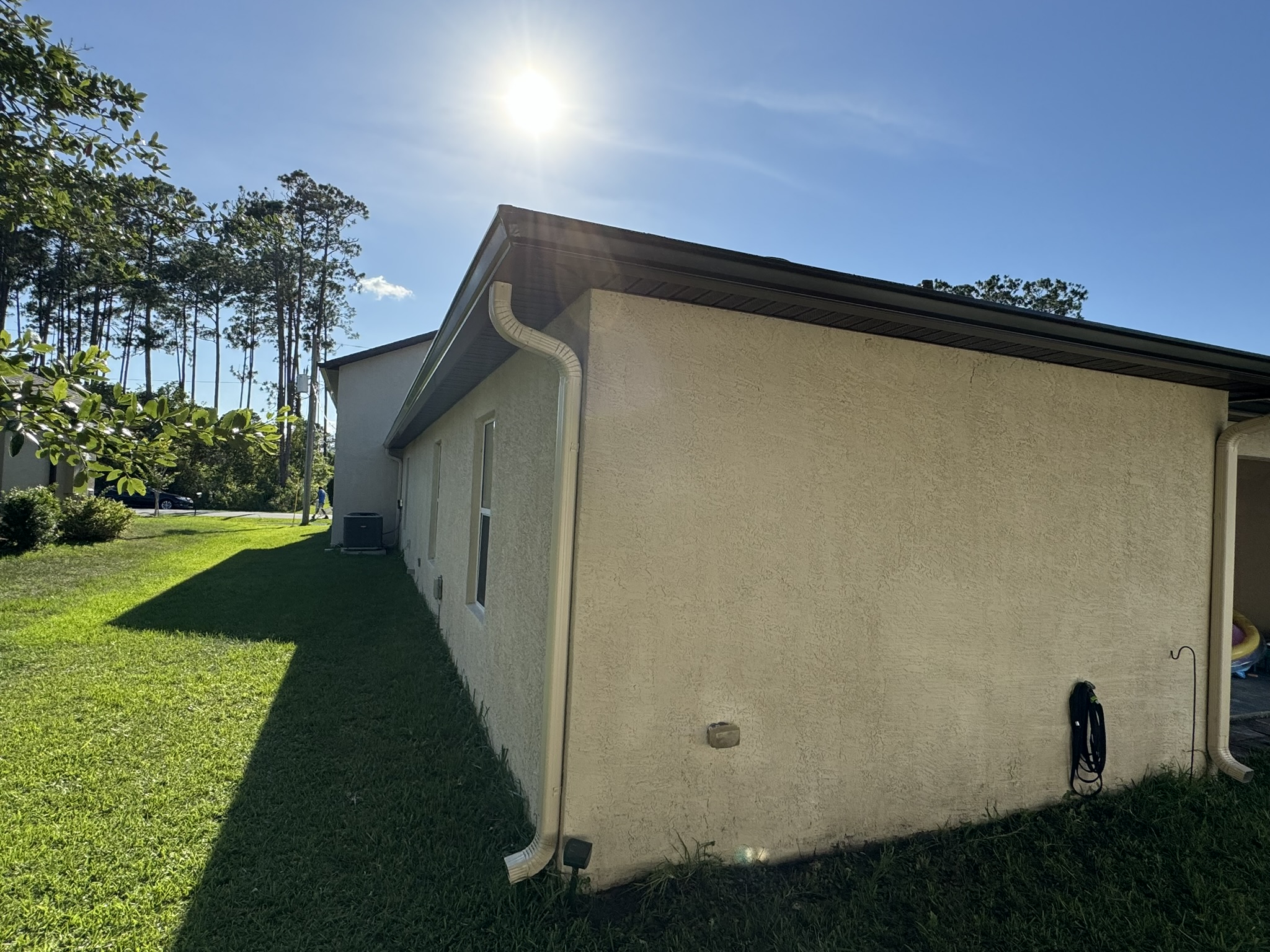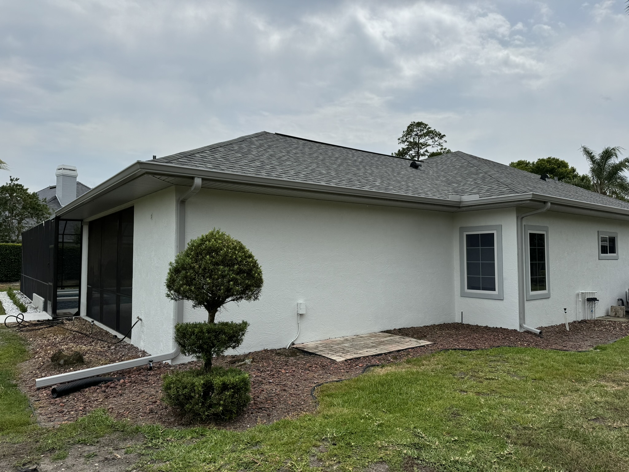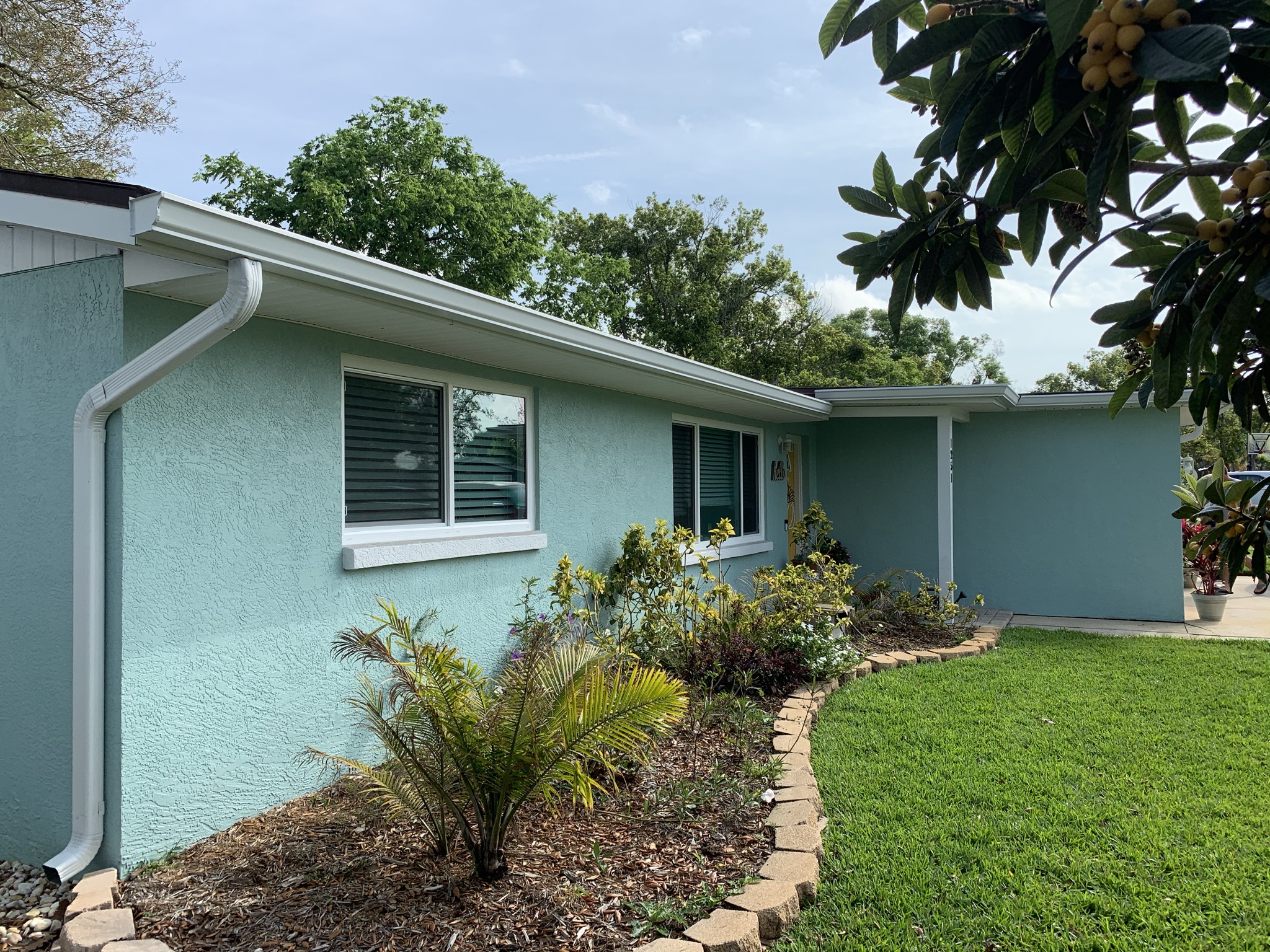 Two-Story Mastic White Gutters & Downspouts