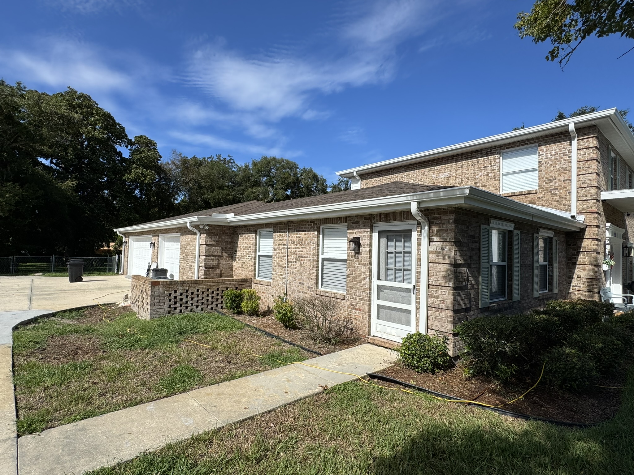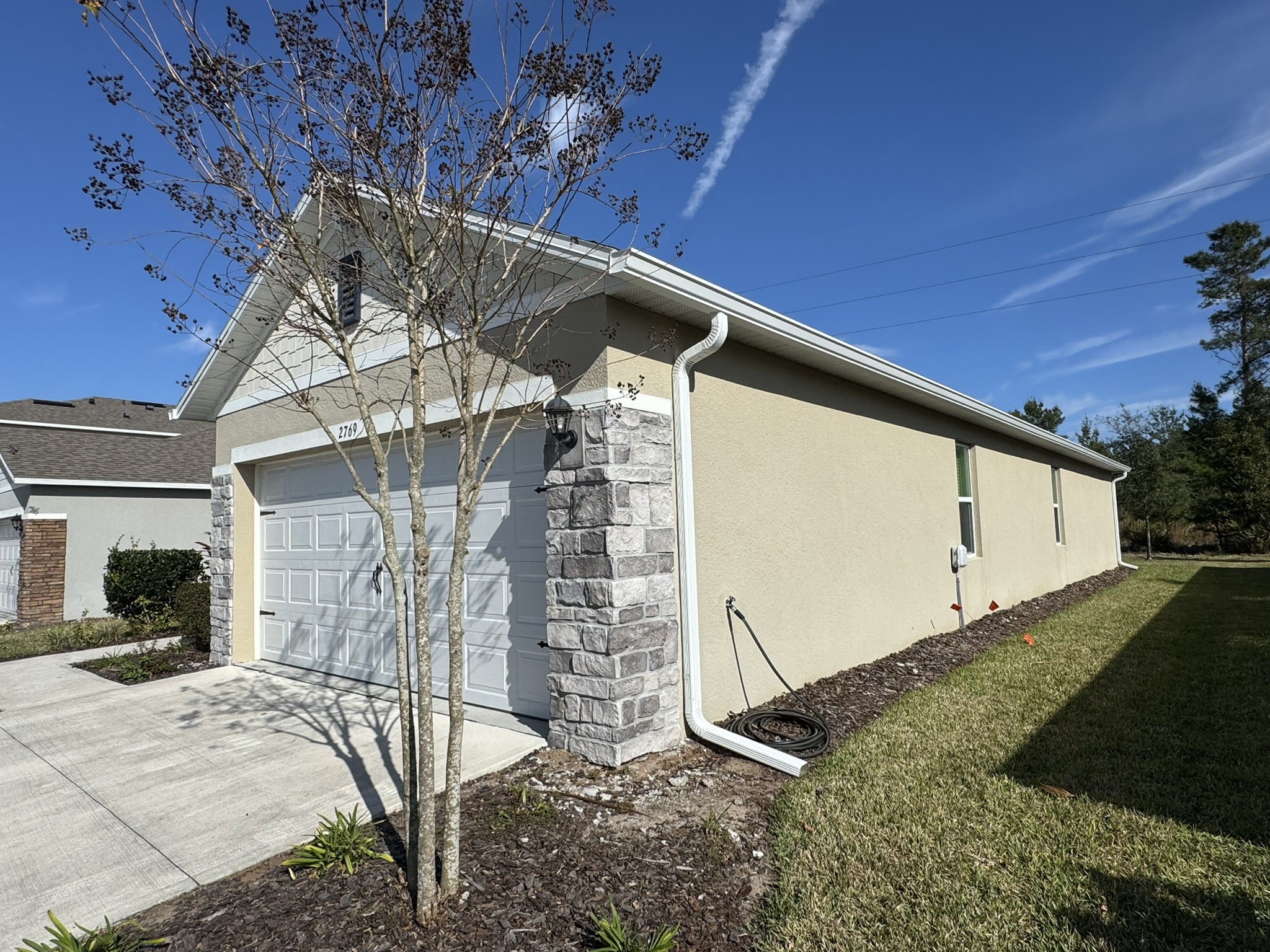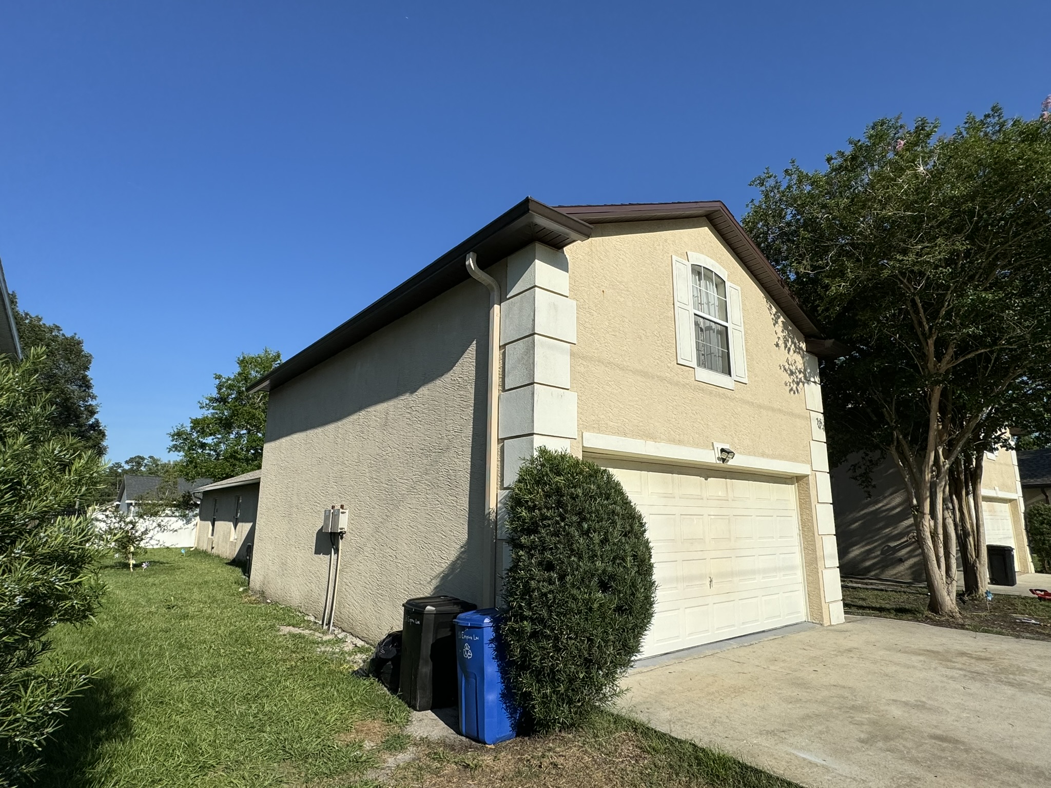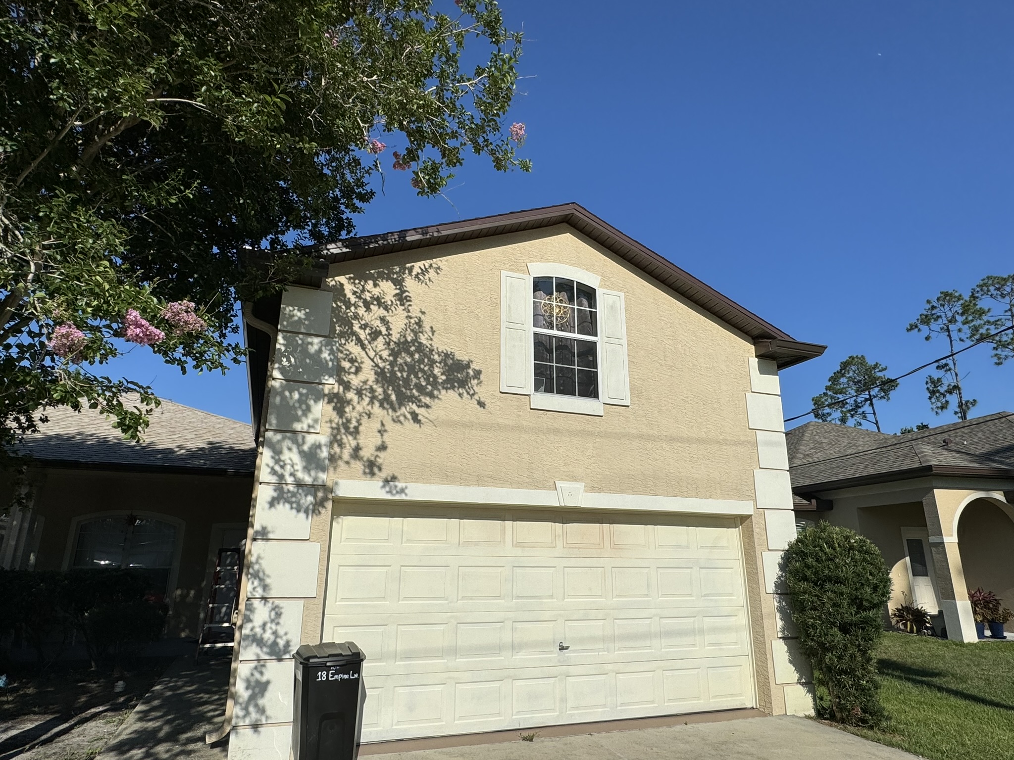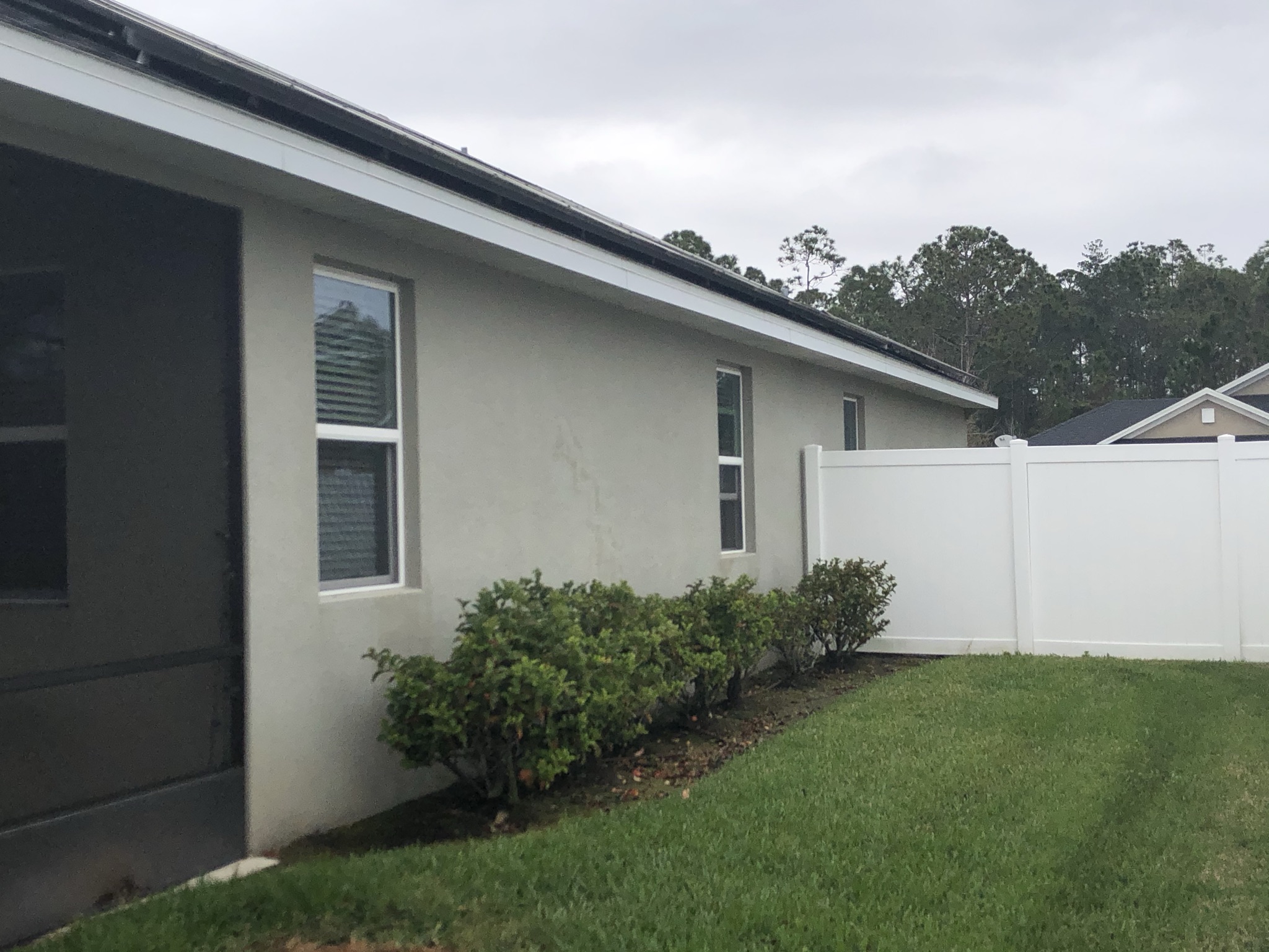 Two-Story Mastic White Gutters & Downspouts