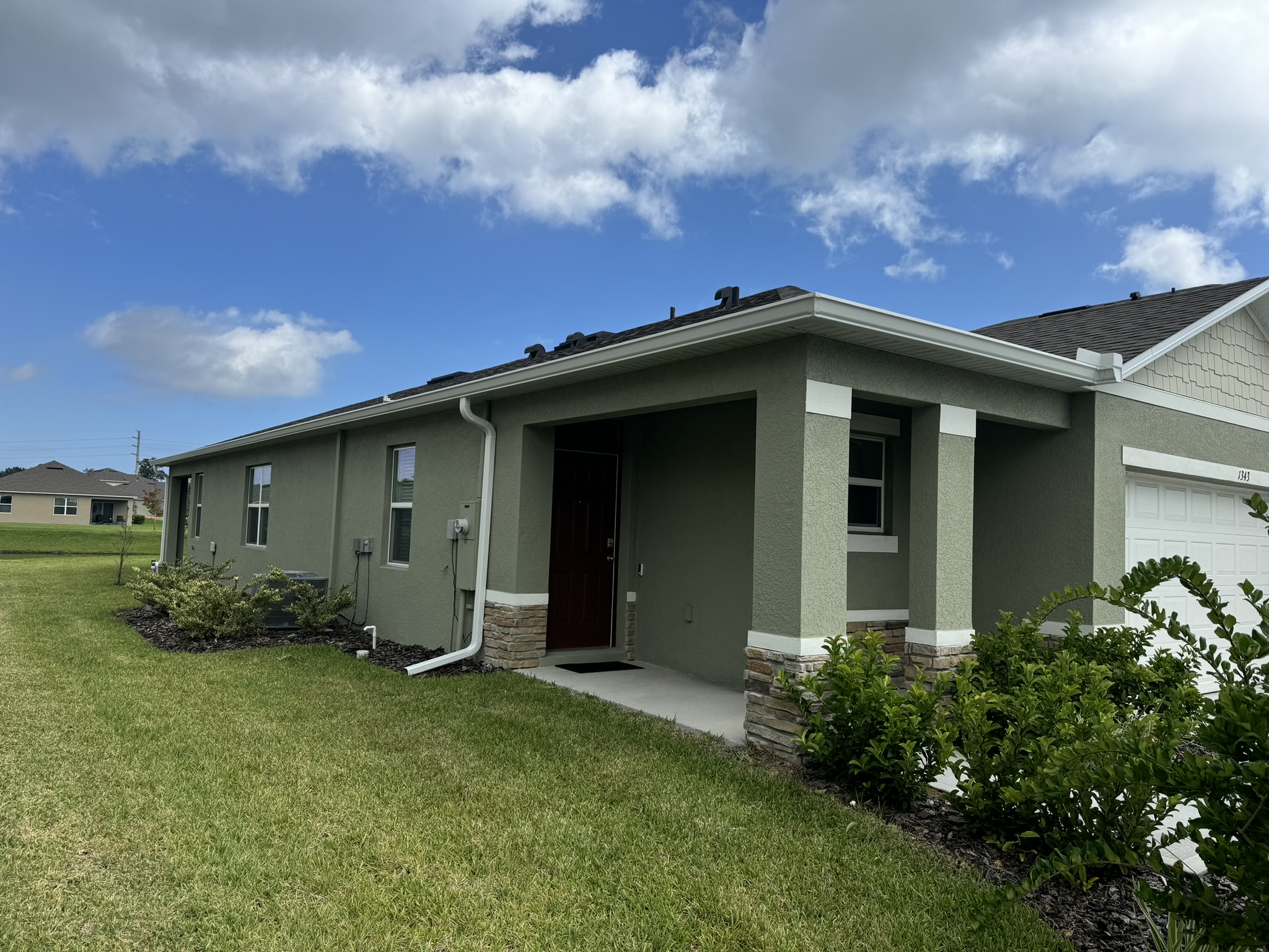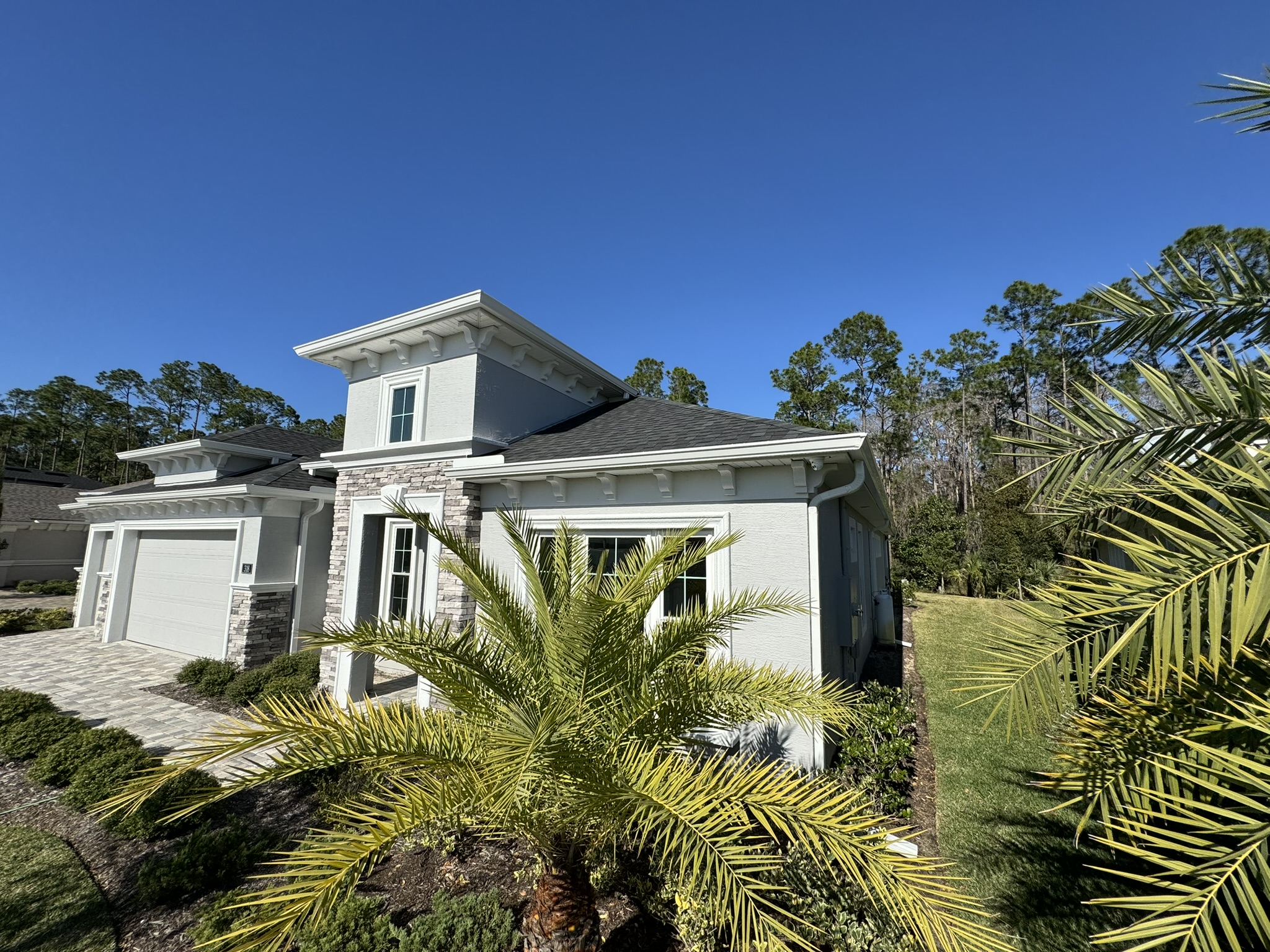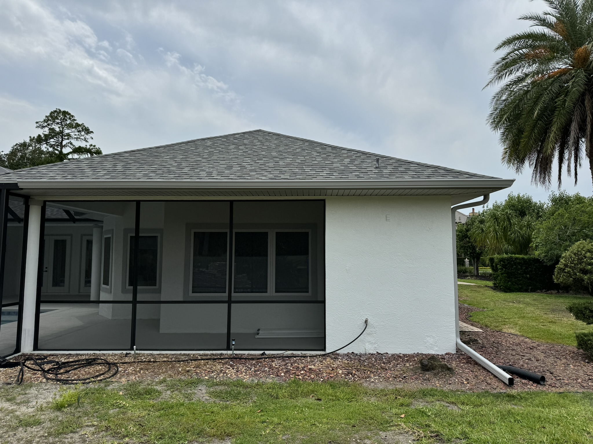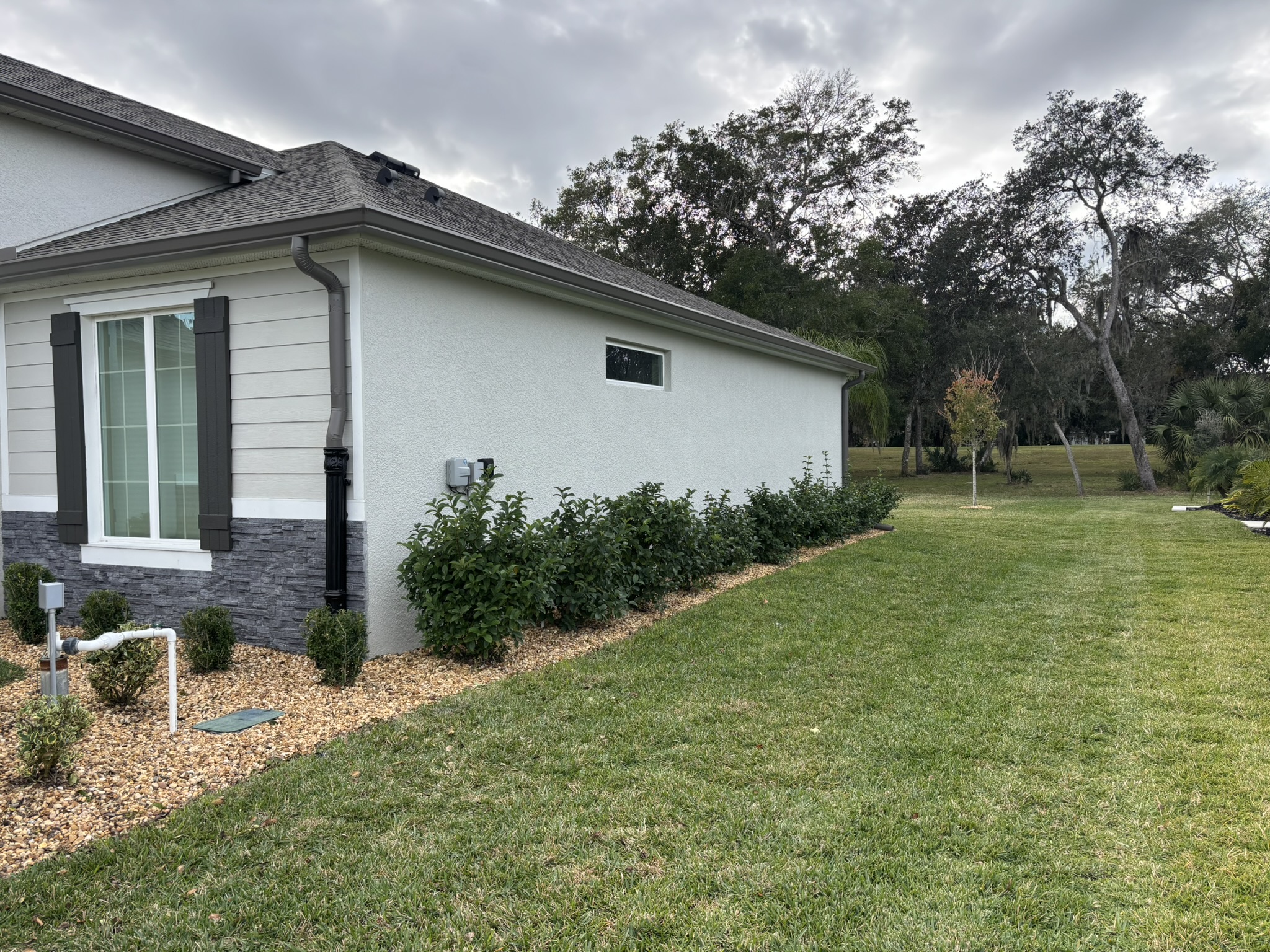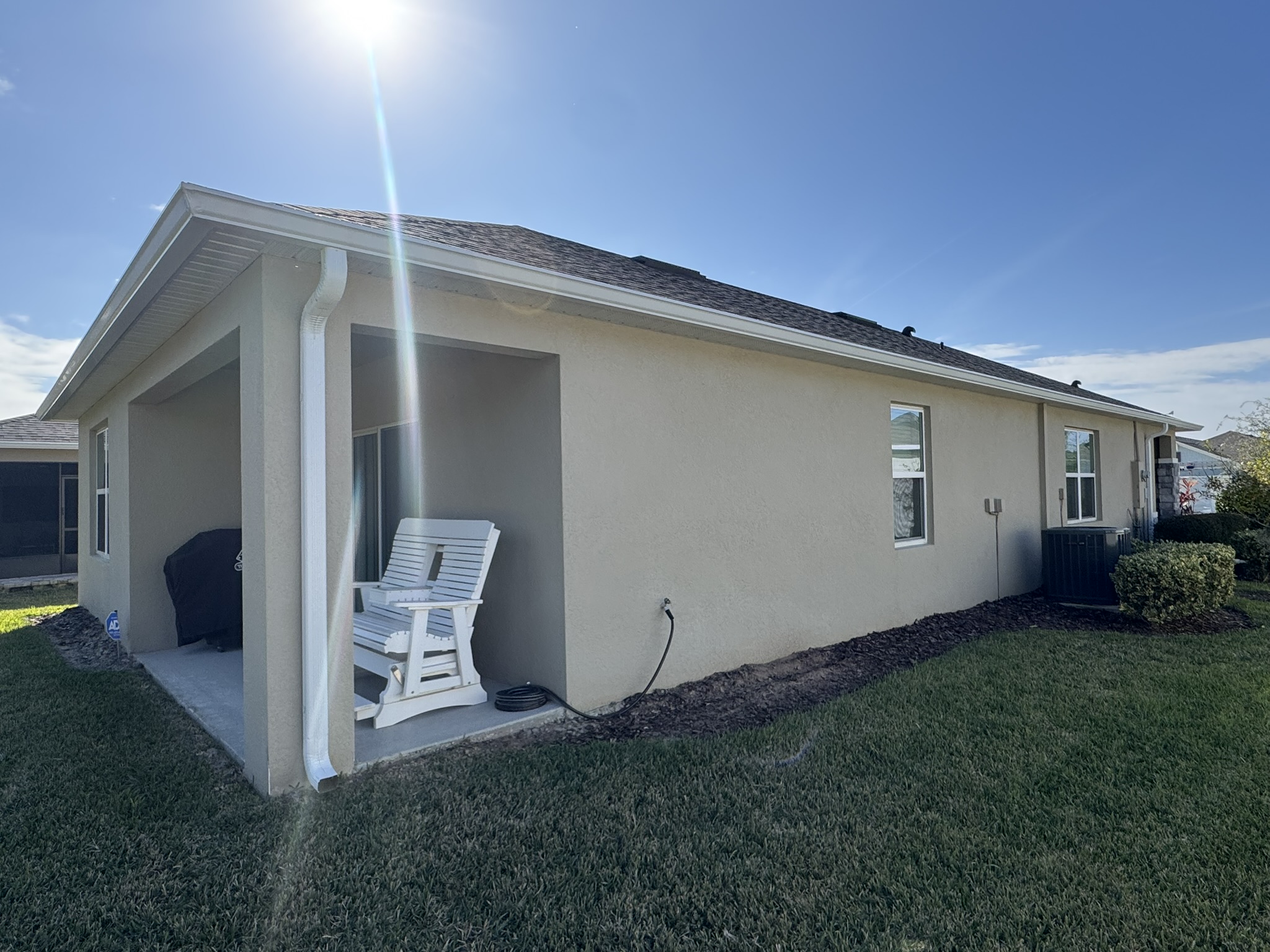 Two-Story Mastic White Gutters & Downspouts
