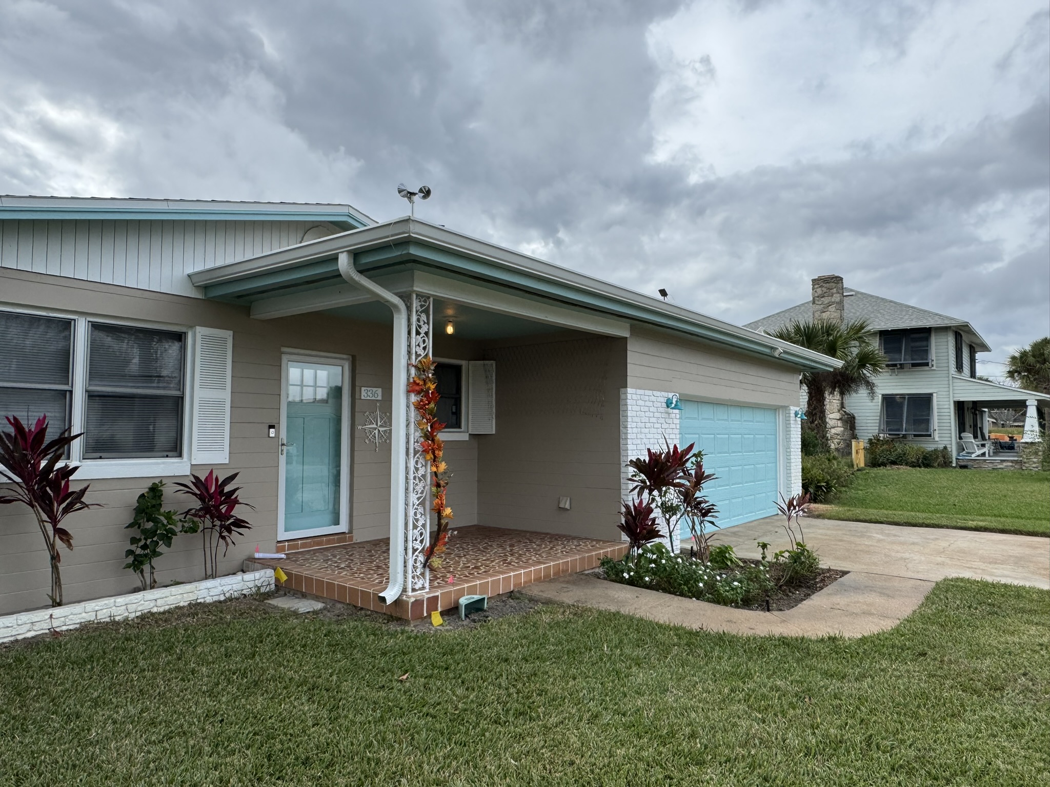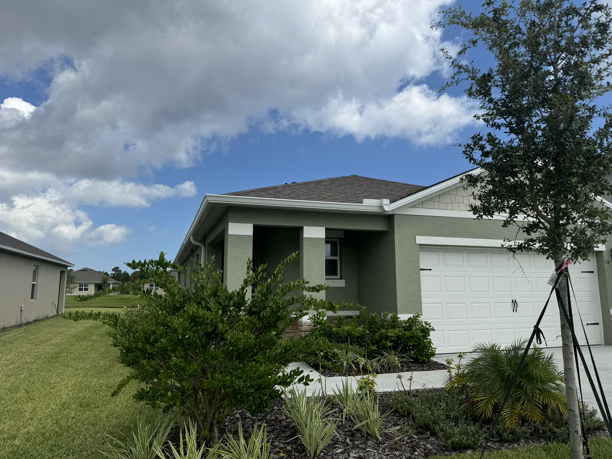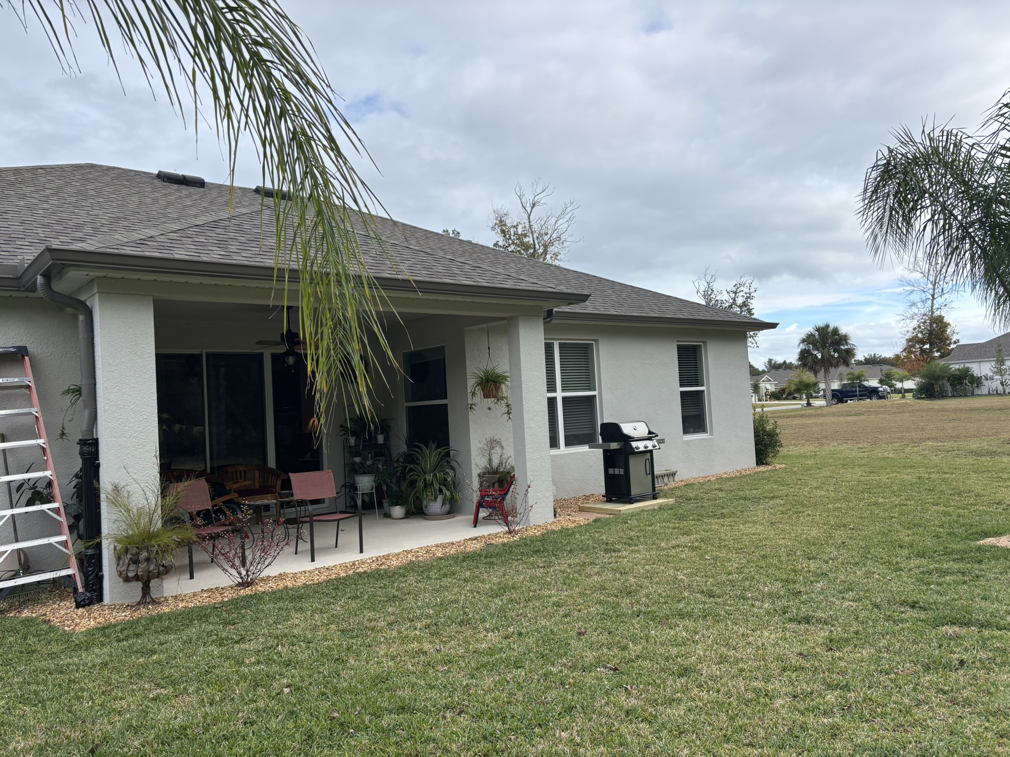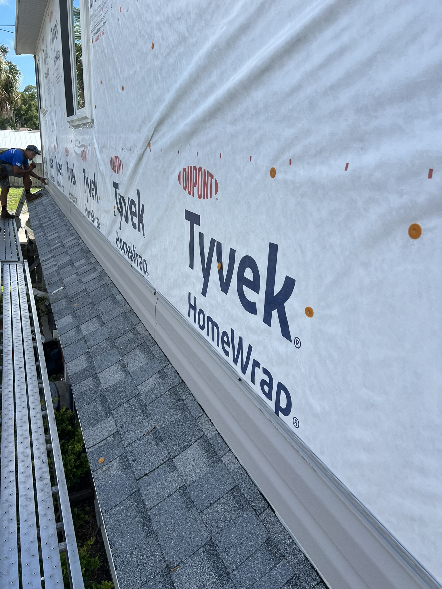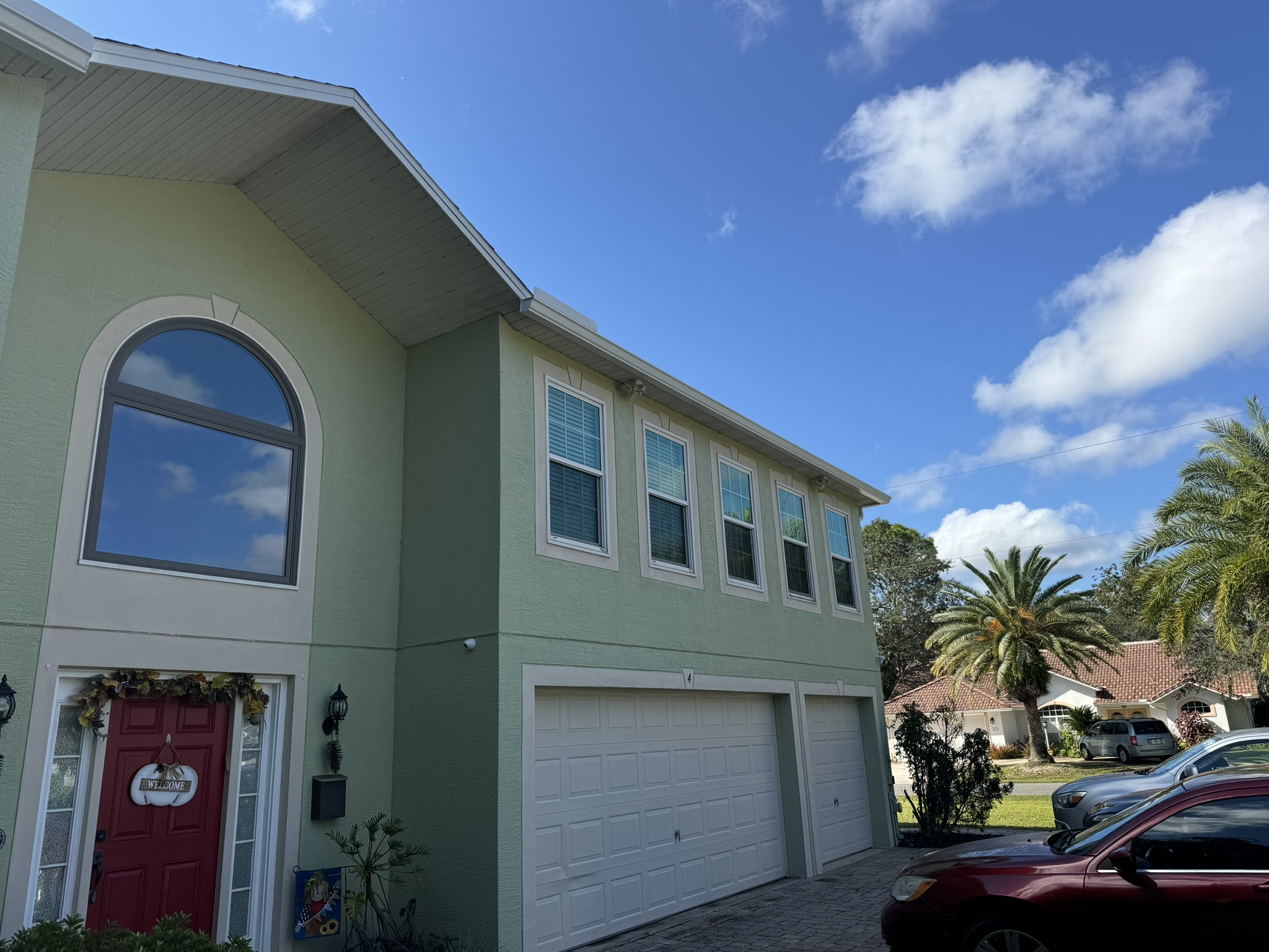 Two-Story Mastic White Gutters & Downspouts
